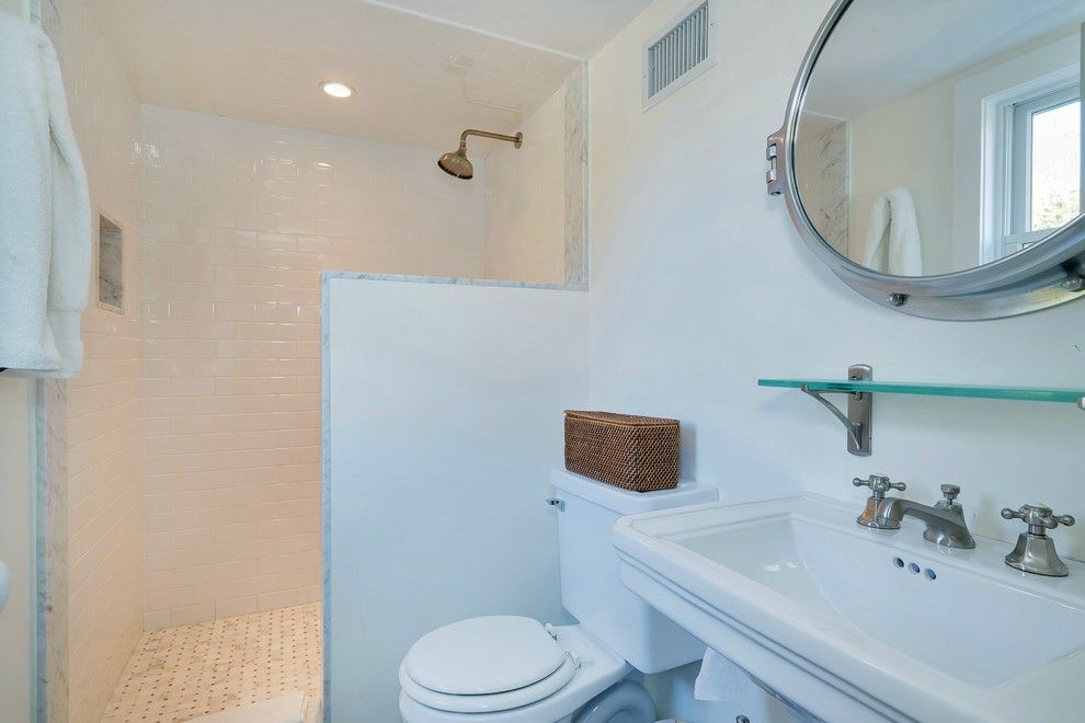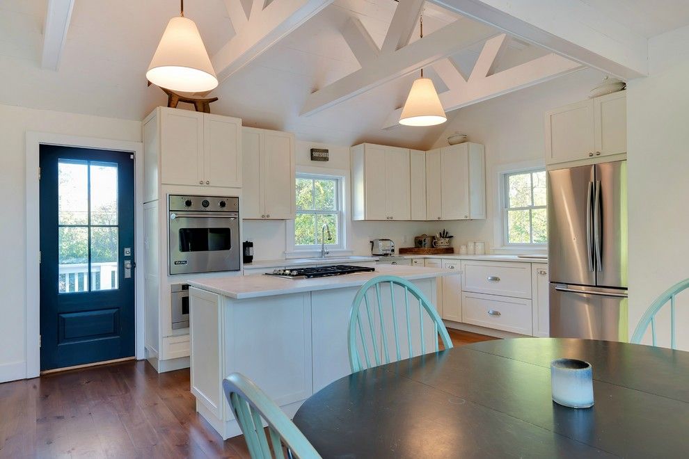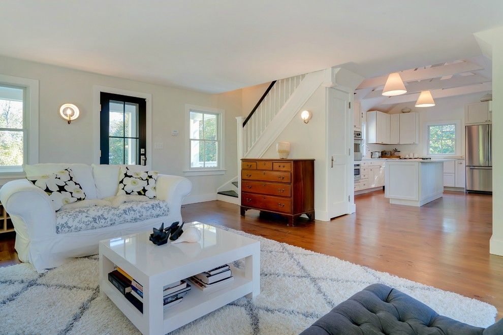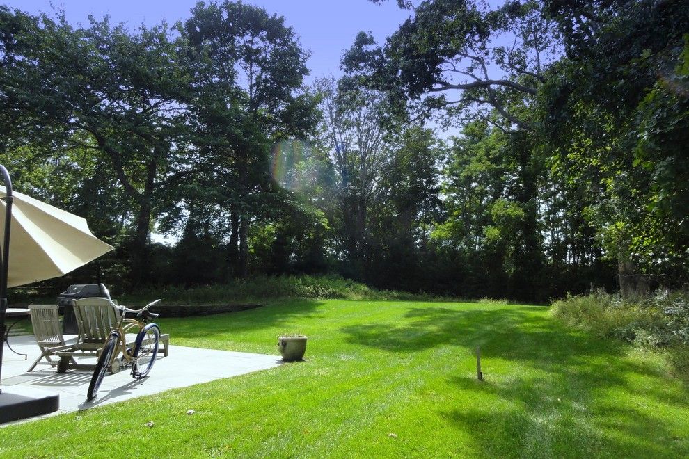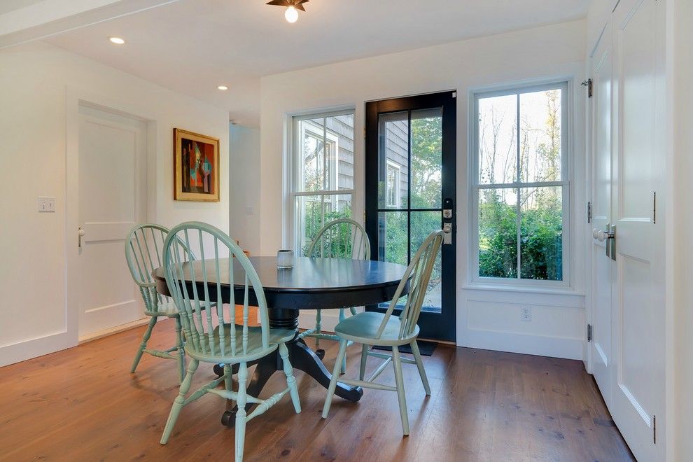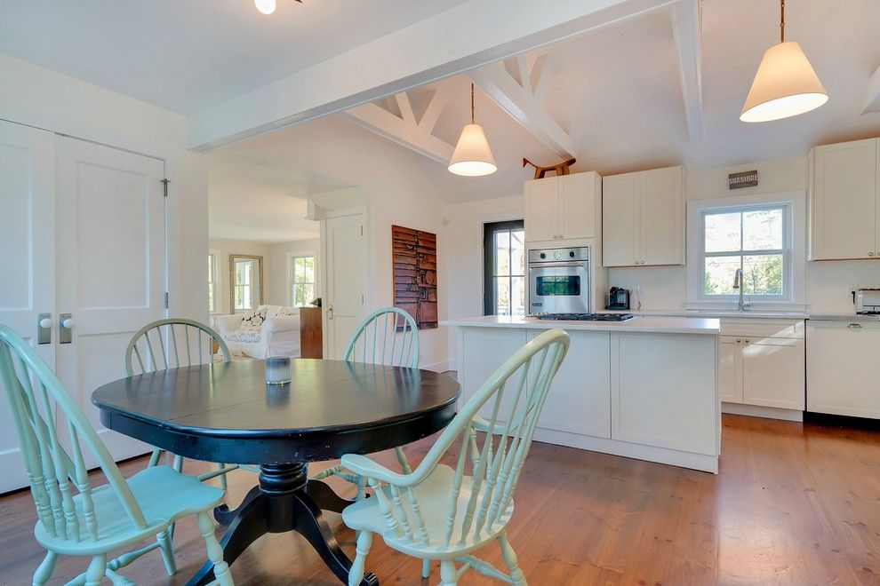 Totally renovated and expanded with taste, style and a beachy sensibility, this open and sun-filled 4 bedroom, 3 bath farmhouse with flair is sited on a bucolic .63 acre parcel ideally located on a quiet street just at the edge of East Hampton Village. In true form, the classic covered porch and mahogany deck extends the length of the front, catching the early sun. Enter the living room; wide plank pine floors, oversized windows and glass sli
