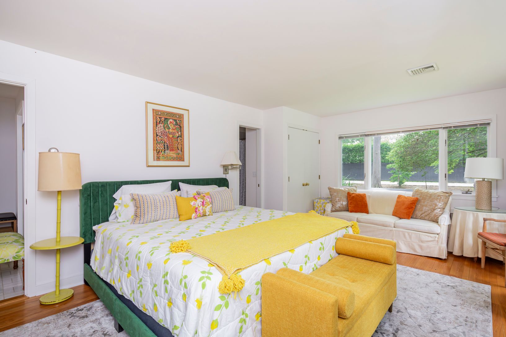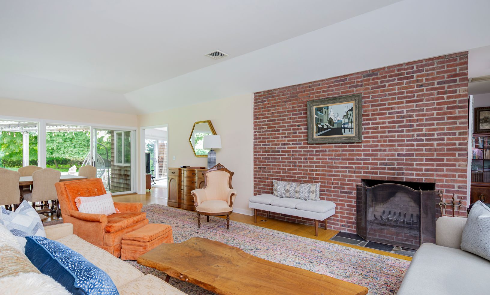 Pristine traditional located South of the Highway in East Hampton. This beautifully maintained home features four generously sized bedrooms, an open living room with fireplace and built-in library, and an open eat-in kitchen that flows seamlessly into a cozy sitting area. A formal dining area with sliding glass doors offers the perfect space for entertaining. Off the primary suite is a private study that can also serve as a fifth bedroom. Set