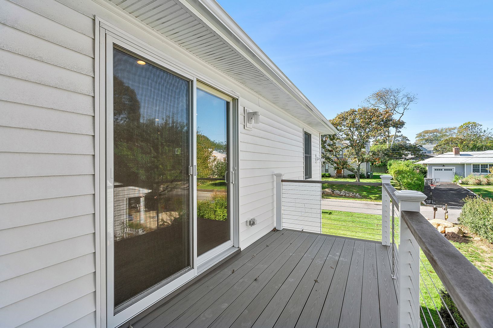 Located in Montauk's coveted Culloden Shores, this new 1,850+/- sf home offer comfortable living spaces in a beachside location. The upside down layout features a sparkling kitchen with top-grade appliances, granite countertops, beautiful center island with with custom cabinetry, all open to a living room with gas fireplace. This level also has a separate den with French doors and full bathroom. The first floor offers a primary suite with a fu
