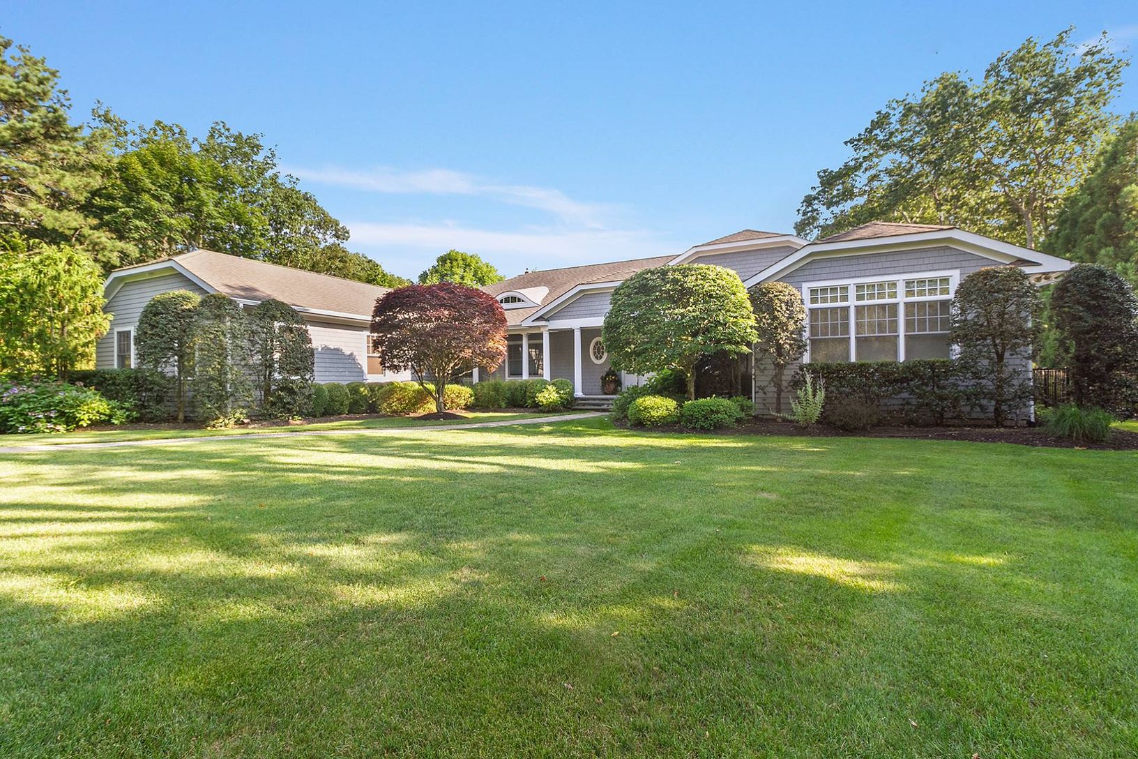 Close by is everything you’ll need: a wide selection of food options, the beach, and access to Shinnecock Bay for launching a kayak or paddleboard. The sprawling, one-level home with an open concept, vaulted