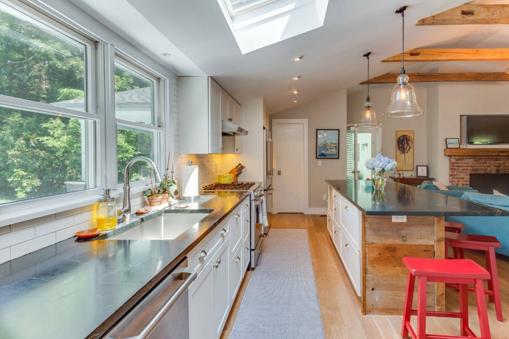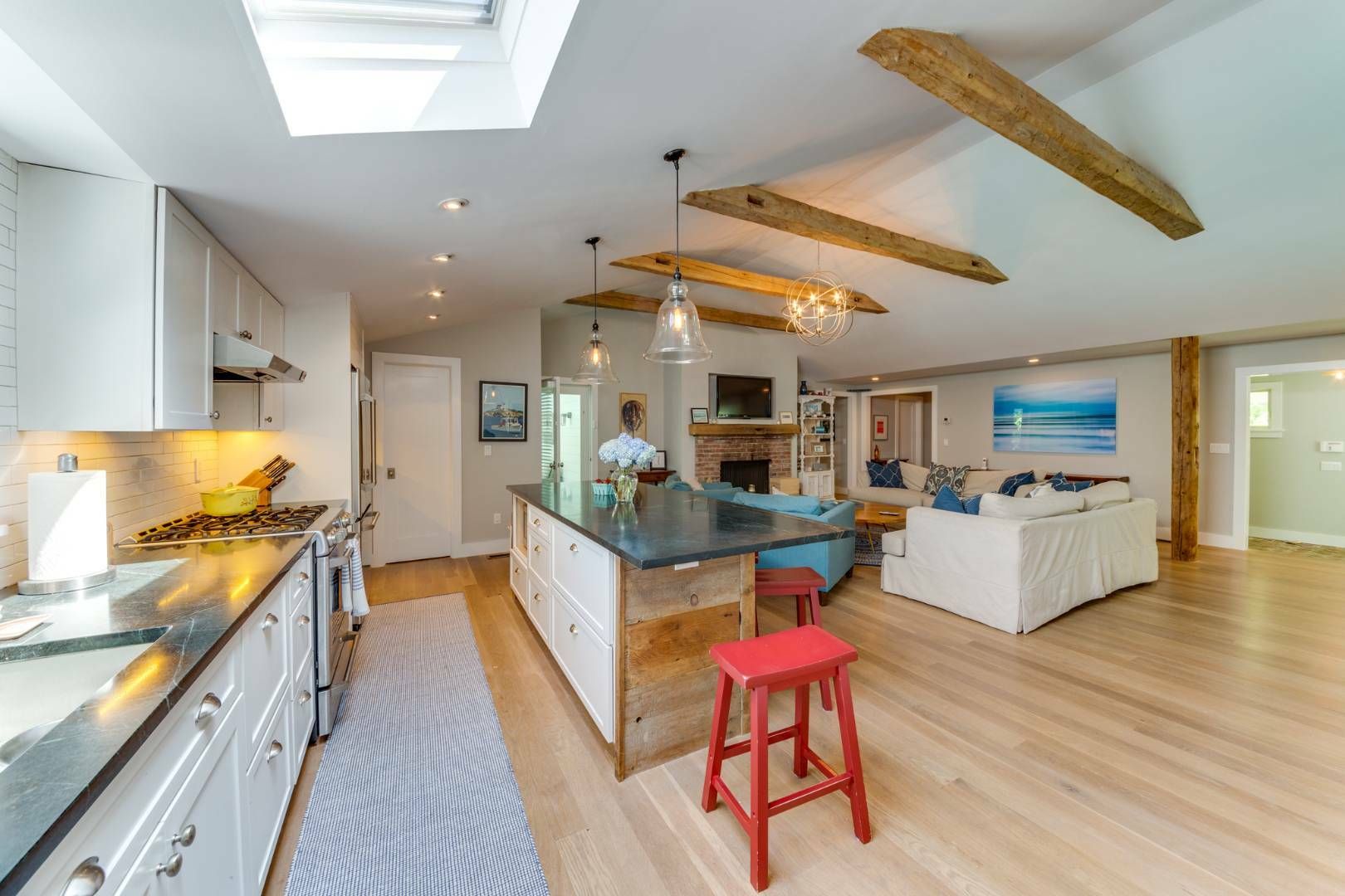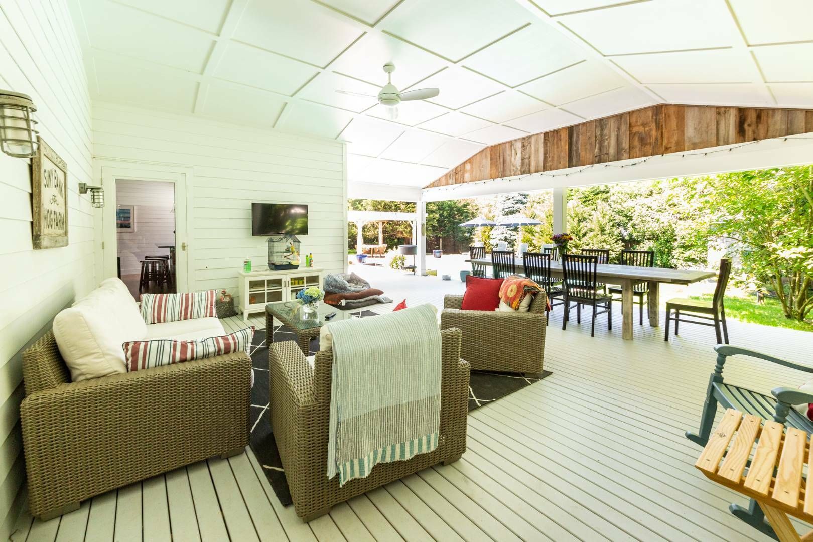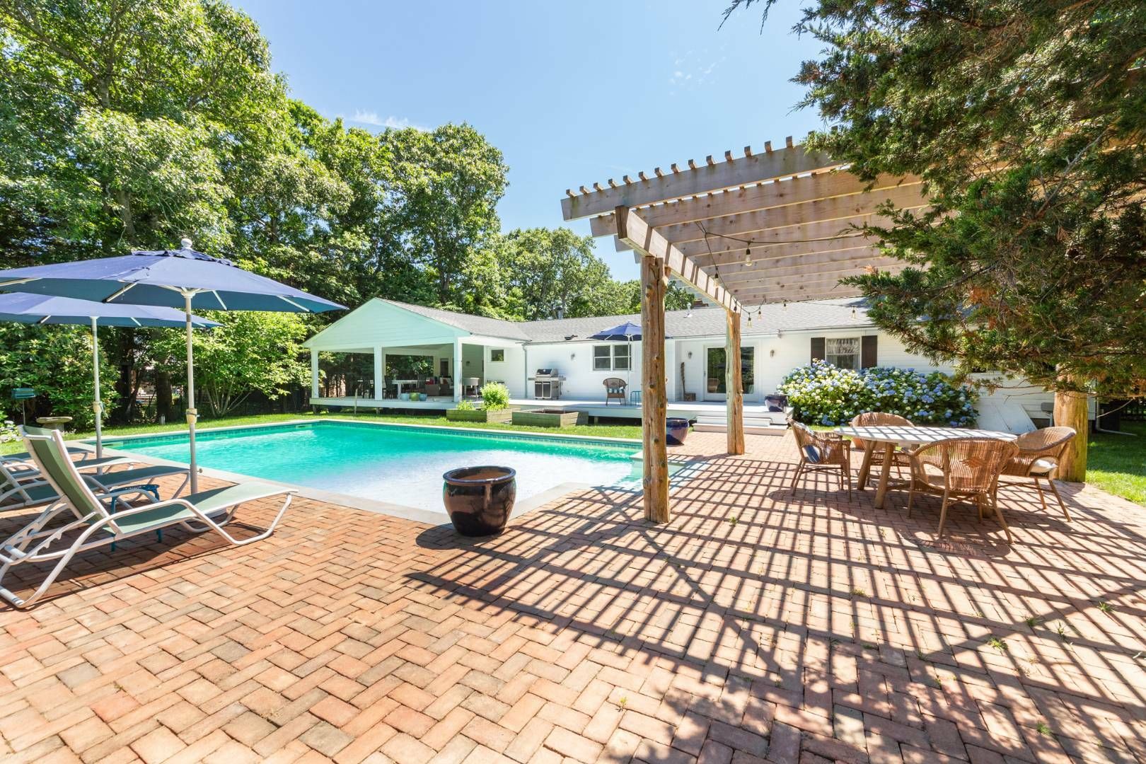 Located in Clearwater Beach this beautiful ranch home awaits you. On just under half an acre, the spacious yard boasts a patio with a pergola, lots, of decking and a covered porch with TV, all over looking the pool. The home features four bedrooms, three half baths, and one half bath. Enjoy the open floor plan with vaulted ceilings and wood beams in the kitchen and living area. The home also has two fireplaces. Move right into this turn key ge