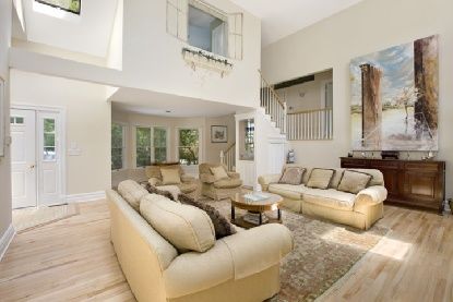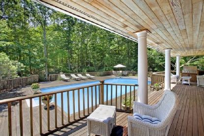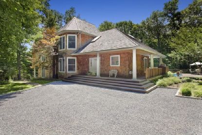 This charming and elegant multi-level, post-modern home in a prestigious community is centrally located and minutes away from the best Hampton towns. This 4 bedrooms and 3 full baths residence sits on very private landscaped acre+ bordering on a greenbelt giving ultimate privacy and serenity. The great room features a vaulted ceiling, skylights, a fireplace with granite hearth and fine handcrafted mantel. The French doors lead out to a 4,
