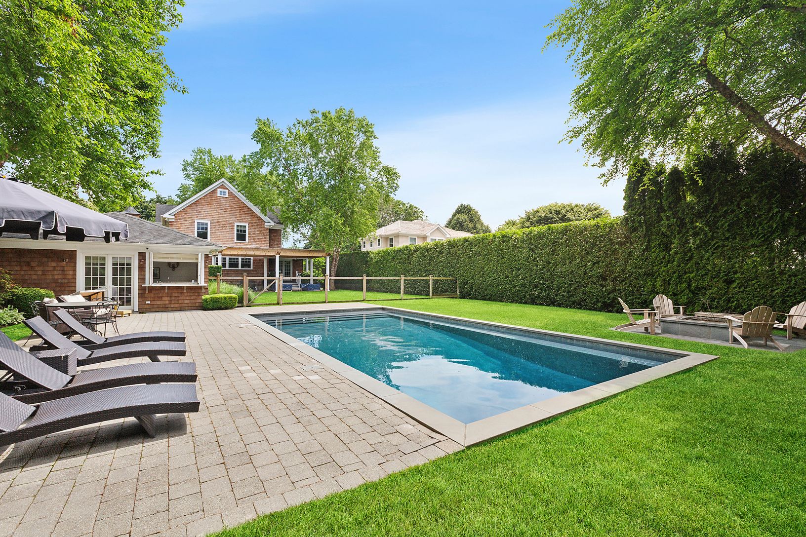 Your summer getaway awaits at this quintessential Southampton Village home conveniently located within minutes of Southampton Main Street, pristine ocean beaches, and the Long Island Railroad. Comfortable, charming and stylish, this home features 6 generous bedrooms and 5 & 1/2 baths on 3 finished levels, along with a newly renovated pool house. The private and serene backyard features multiple seating and dining areas, a heated gunite p