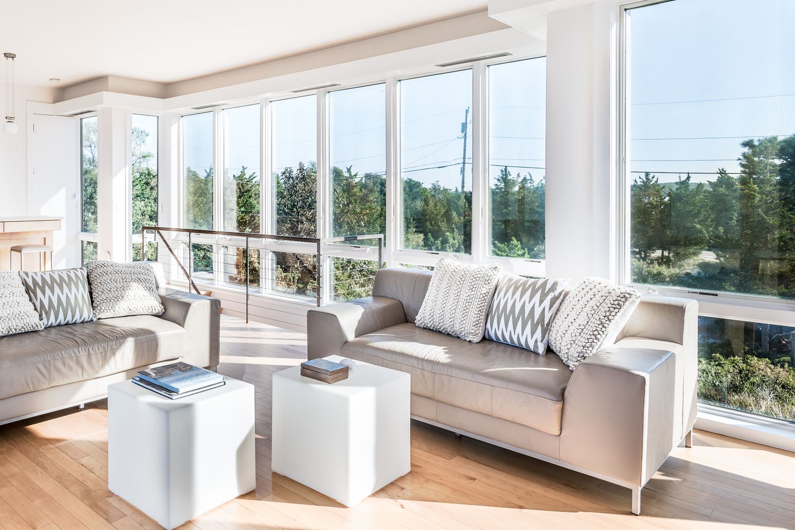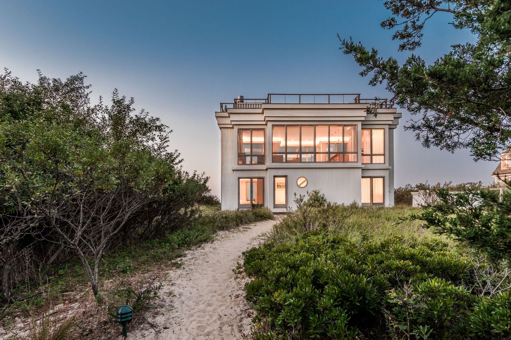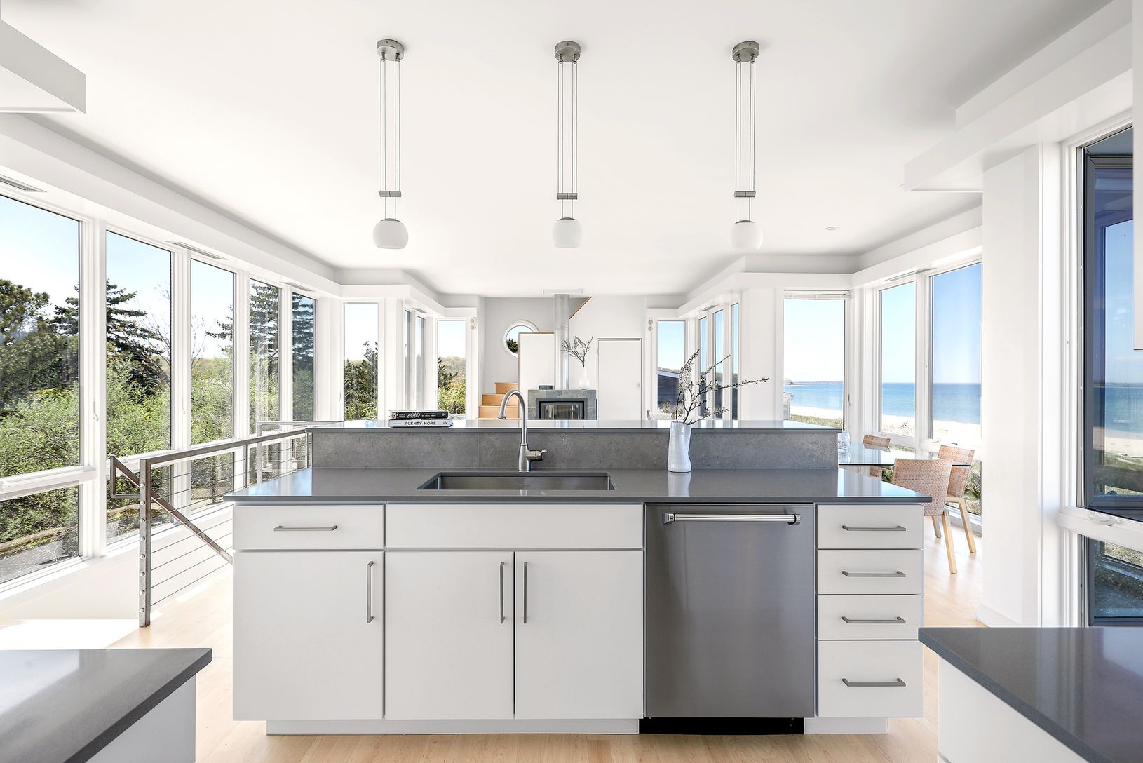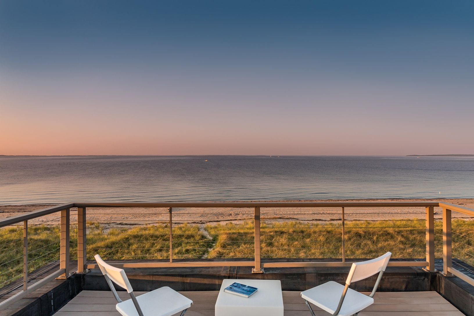Set amongst the wild grassy beach-scape, with 100 feet of sandy beach frontage and nothing but open sky and the expanse of Gardiner's Bay in front of you, is this beautifully crafted modern beach house. Walls of glass both front and back overlooking Three Mile Harbor bring epic views into the home from every direction. With impeccable attention to detail, this home was designed for living surrounded by nature. Magnificent sunsets and quiet mom