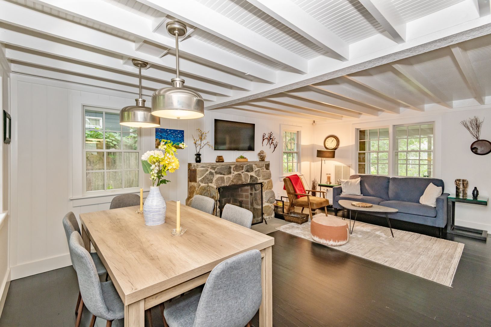 Just renovated and newly furnished quintessential Sag Harbor cottage - totally redone with new kitchen and baths, including beamed ceilings, beautiful stone fireplace, wood floors throughout. The oversized custom stone fireplace is truly the centerpiece of this quintessential charmer and the heart of this home during the colder months in the Hamptons. Enjoy this clean, stylish 3 bedrooms, 2 bath. All 21st-century amenities as well, central