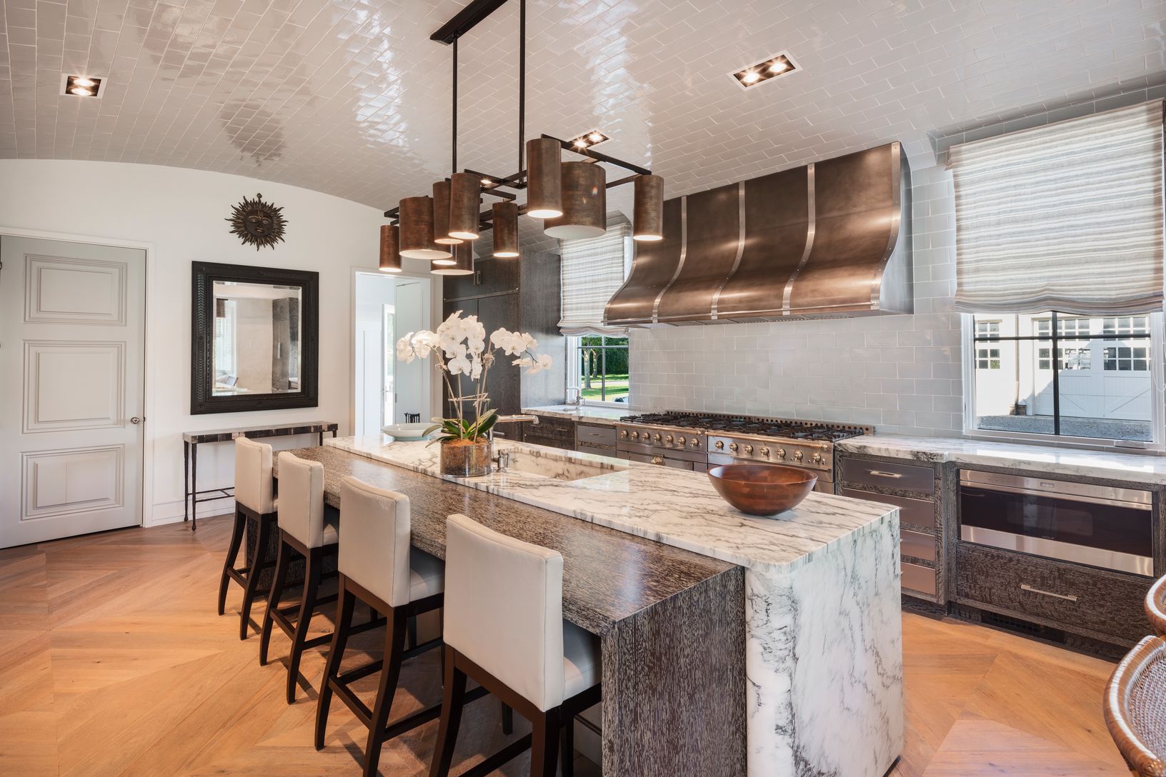 James Michael Howard has done it again with this new masterpiece located south of the highway in Sagaponack near the ocean. Winner of the ICAA, the Institute of Classical Architecture and Art, or the Stanford White Award in 2017. This 2.3+/- acre property sports a brand new 12,000+/- sf mansion. Each room has its own unique charm and is decorated with antiques, art, and custom made rugs. There are a total of 7 bedrooms, 8 full baths, and 5 hal