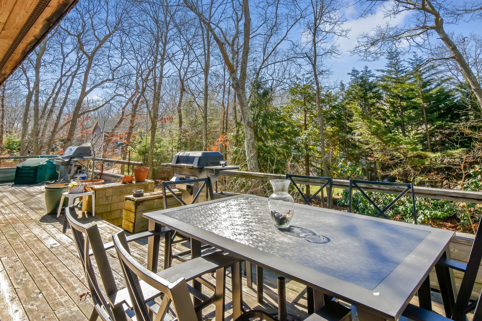 Four bedroom three bath post modern home set on an oversized half acre of land in Springs. Just two tenths of a mile to the bay, this property provides the perfect backdrop to enjoy the beauty of Three Mile Harbor and Gardiners Bay. 2 beds and 1 bath on each of the first and second floors; complimented by a finished walk out basement with full bath. With cathedral ceilings, wood burning fireplace, extensive decking and plenty of room for a poo