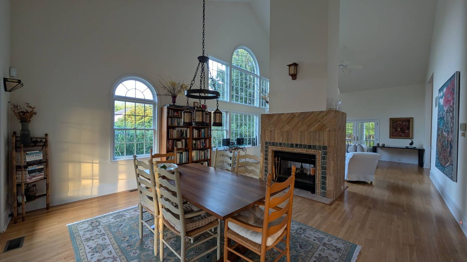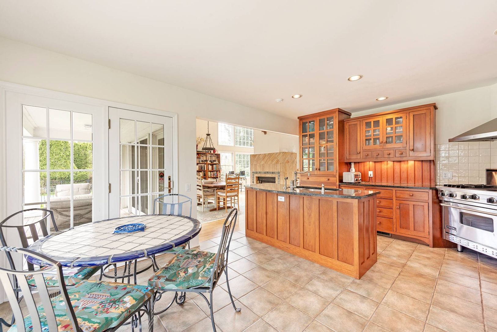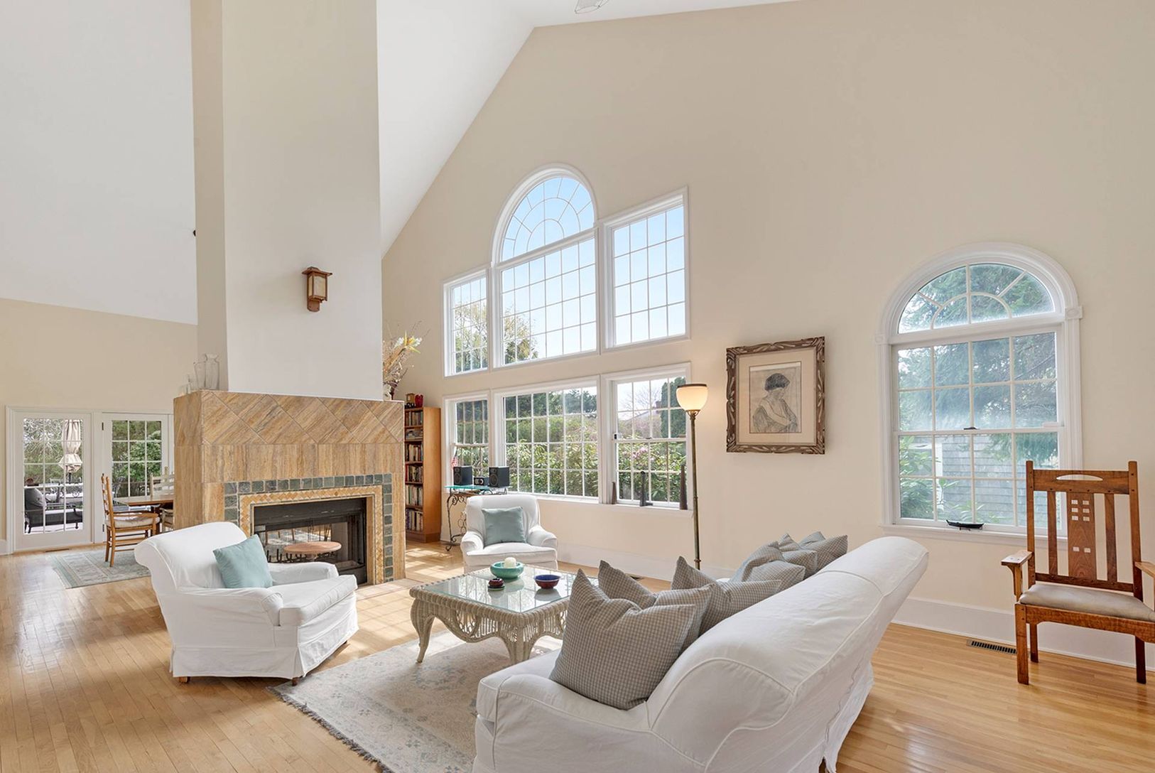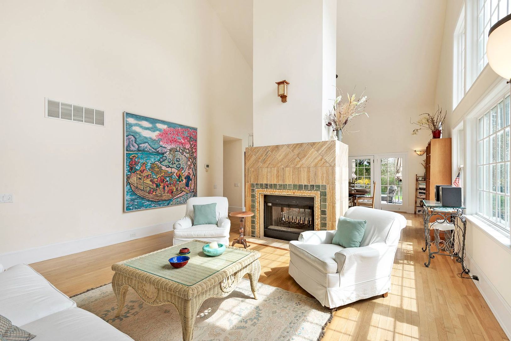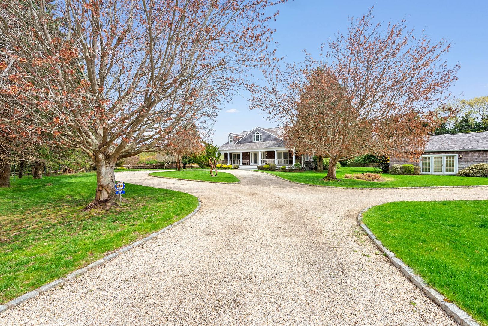RR#: RP240195 Nestled in the heart of Bridgehampton, this stunning home welcomes you with a circular driveway and timeless curb appeal. Step inside and be instantly captivated by soaring cathedral ceilings and walls of oversized windows that bathe the interiors in natural light, creating a bright and airy ambiance throughout. The living room, anchored by two fireplaces - back to back - which flows seamlessly into the dining area - perfect for