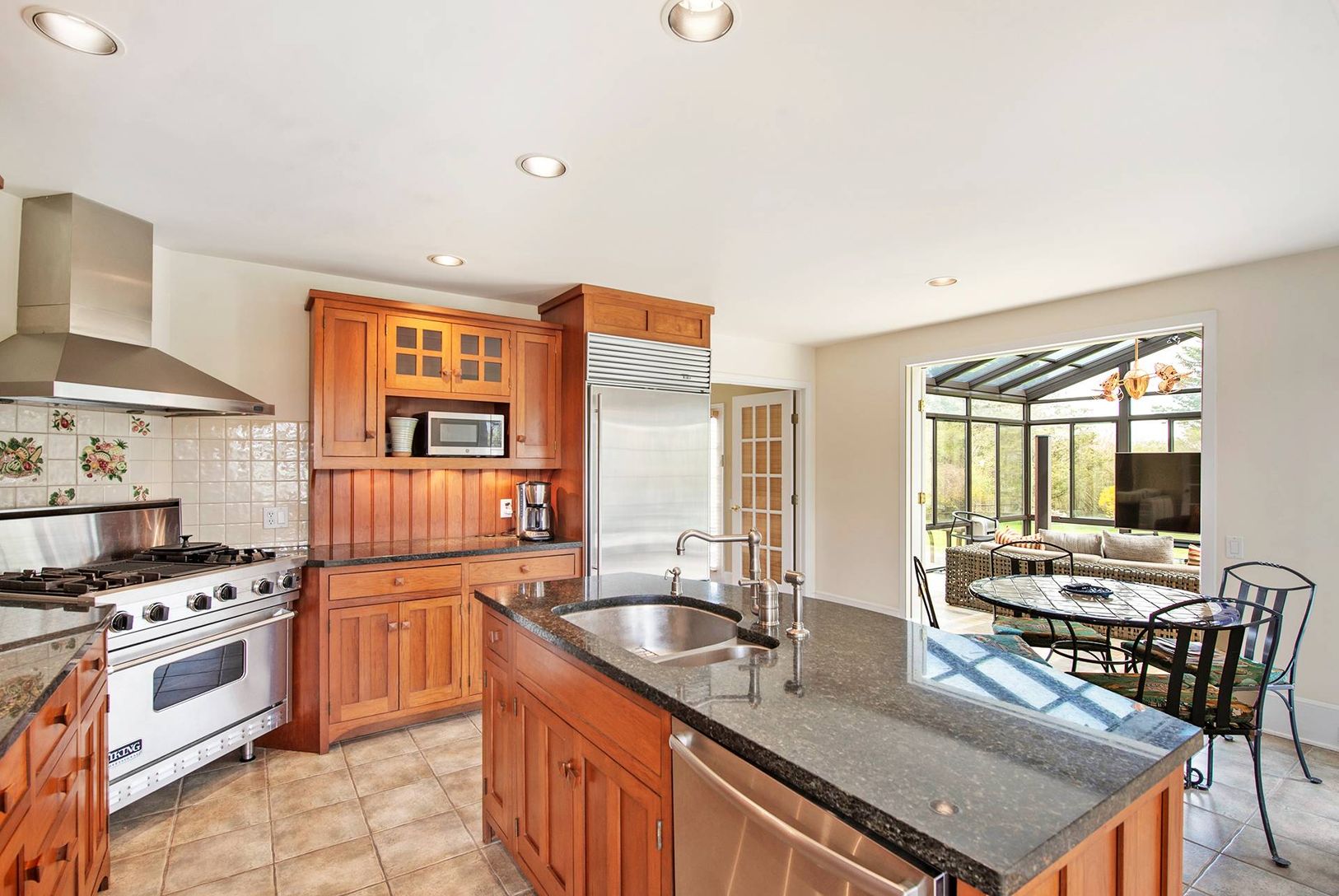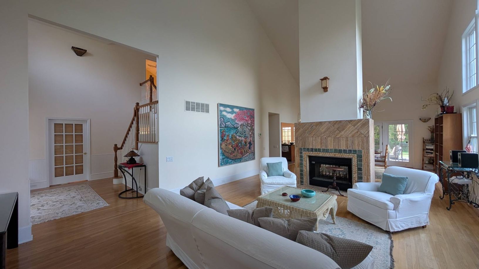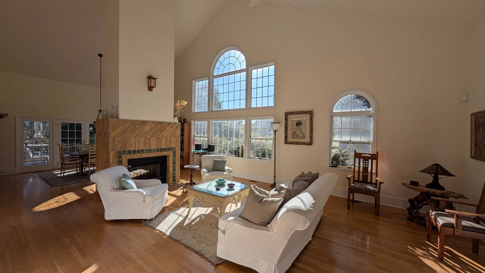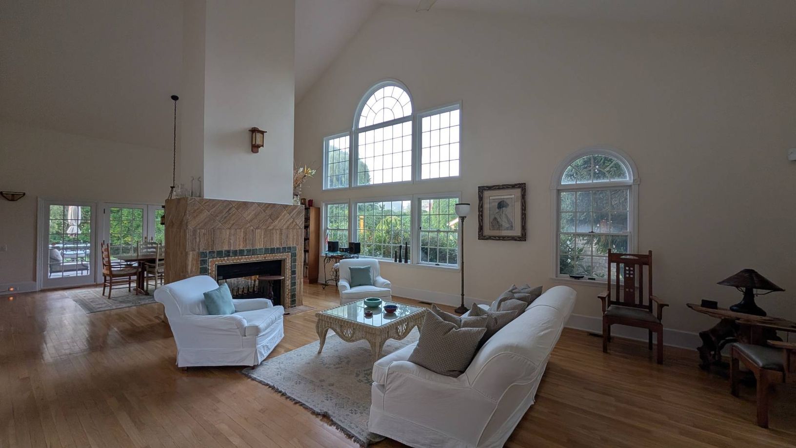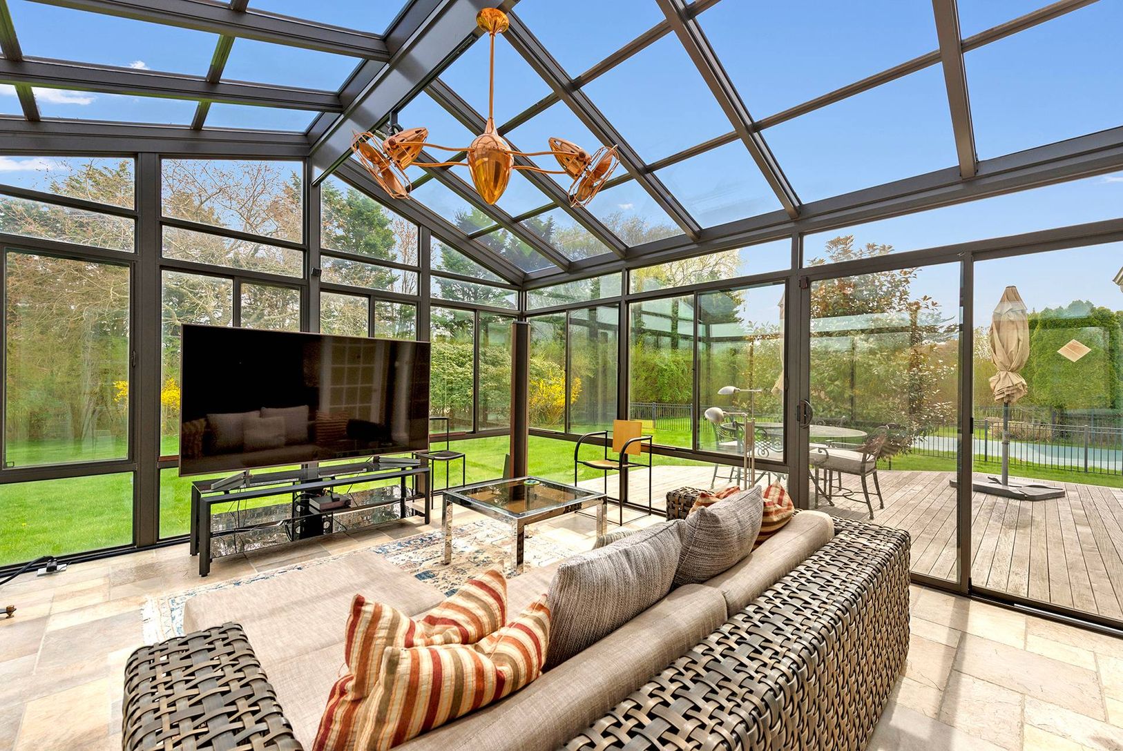 RR#: RP240195 Nestled in the heart of Bridgehampton, this stunning home welcomes you with a circular driveway and timeless curb appeal. Step inside and be instantly captivated by soaring cathedral ceilings and walls of oversized windows that bathe the interiors in natural light, creating a bright and airy ambiance throughout. The living room, anchored by two fireplaces - back to back - which flows seamlessly into the dining area - perfect for