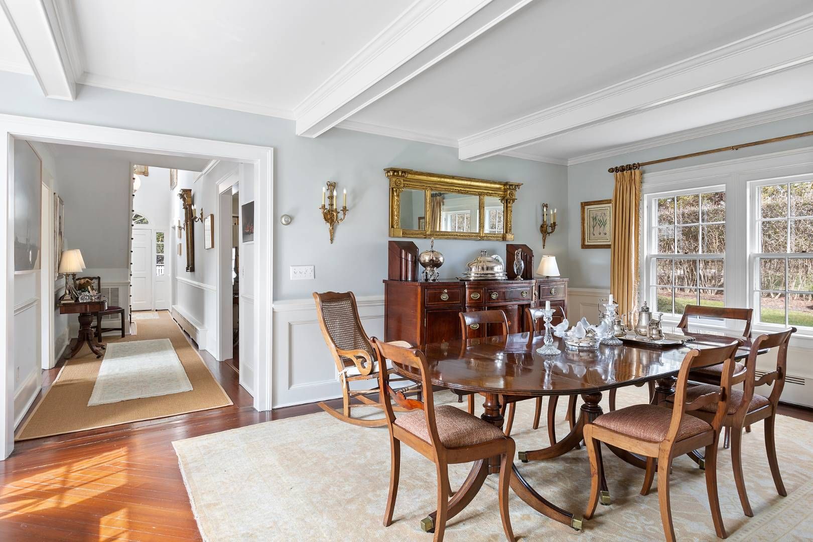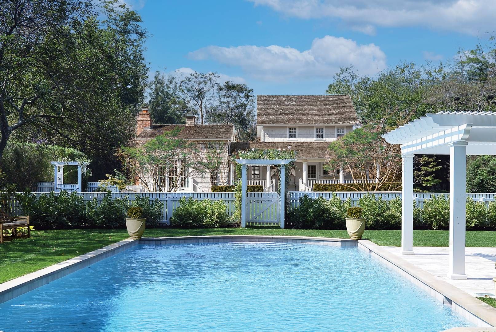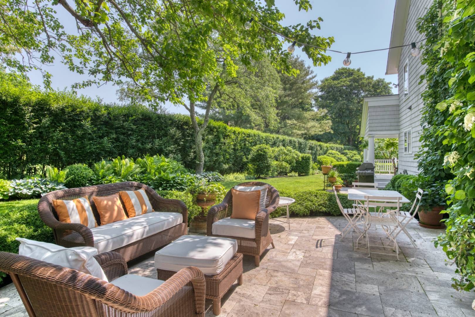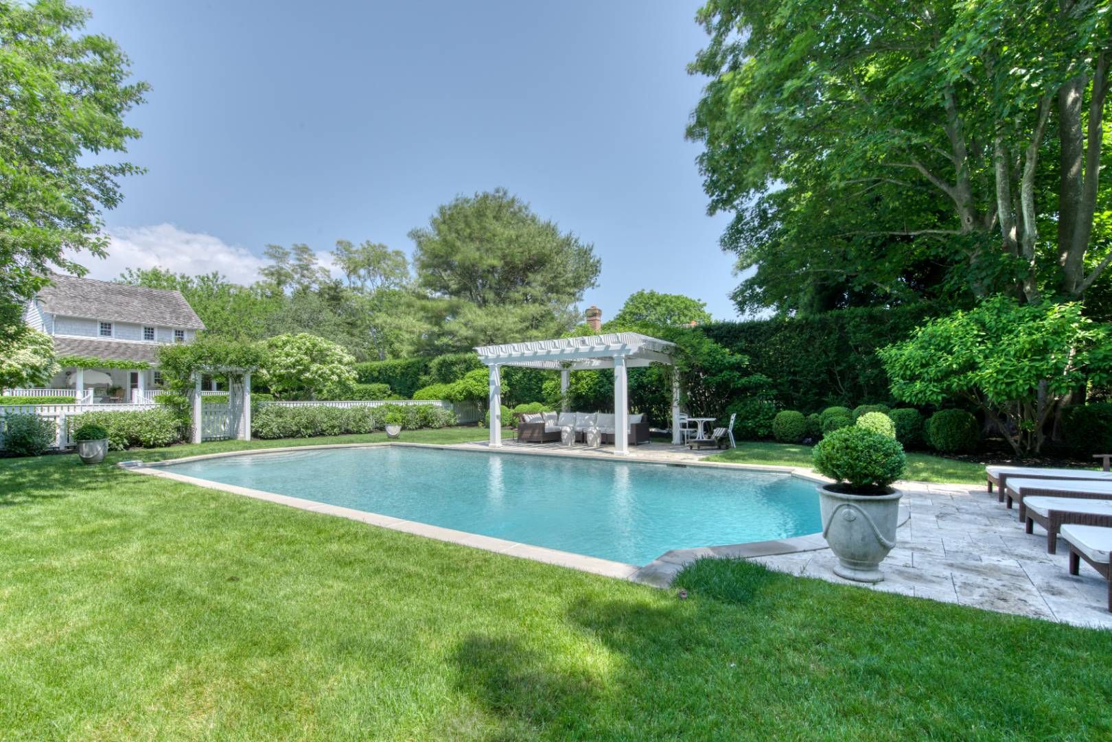 An exceptionally-appointed, gated, Hamptons country farmhouse blending 19th century character and charm with modern day luxury and comfort. Located in a beautiful and private setting just outside Southampton Village, the half acre grounds, backing a 36-acre reserve, are elegantly landscaped with colorful hydrangeas and mature plantings and complimented by a 20x40 heated gunite pool and pergola. The residence offers 3,500+/- sf of well-designed