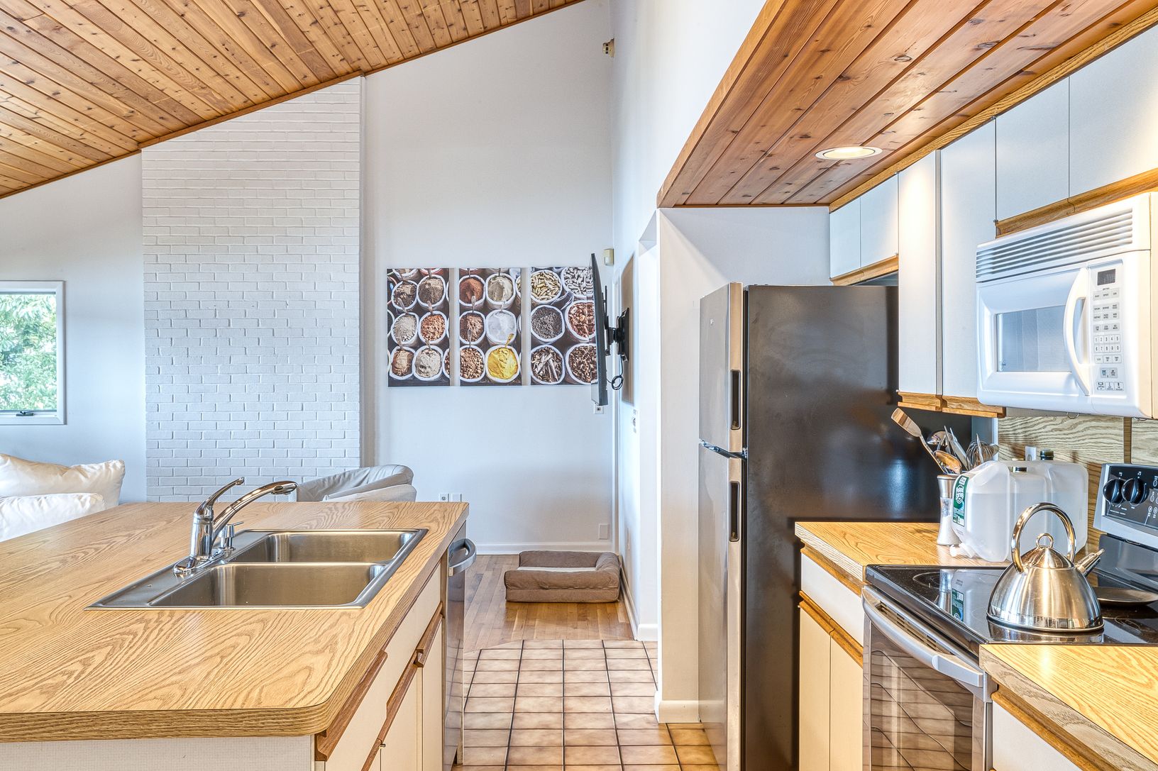 Floors: Hardwood, Tile