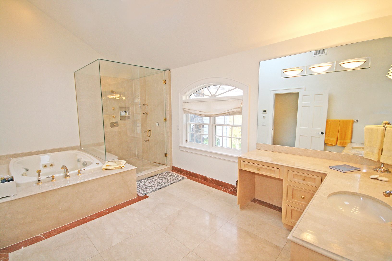 This stylish shingled estate section home is beautifully landscaped offering privacy and the beauty of parklike grounds. The gracious and well thought out interior has been totally redesigned and decorated presenting the absolute best in style and quality. Located in the main wing of the house is a Large formal Living room with a fireplace and glass doors to the stone patio, a formal Dining room, family room with a fireplace, a sun room, and