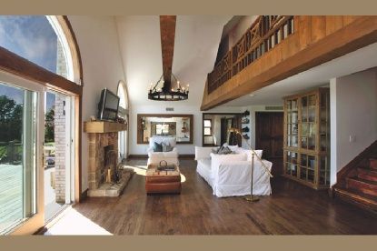 Superbly located down an elegant privet-lined driveway in the heart of horse country, this immaculate and beautifully restored five bedroom, four and one half bath, country home offers privacy, tranquility and unobstructed farm views of the adjacent reserve. Masterfully crafted by a renowned Italian artisan, this exceptional home is sun-filled throughout with large windows, cathedral ceilings, a professional kitchen, exposed wood beams, a ston