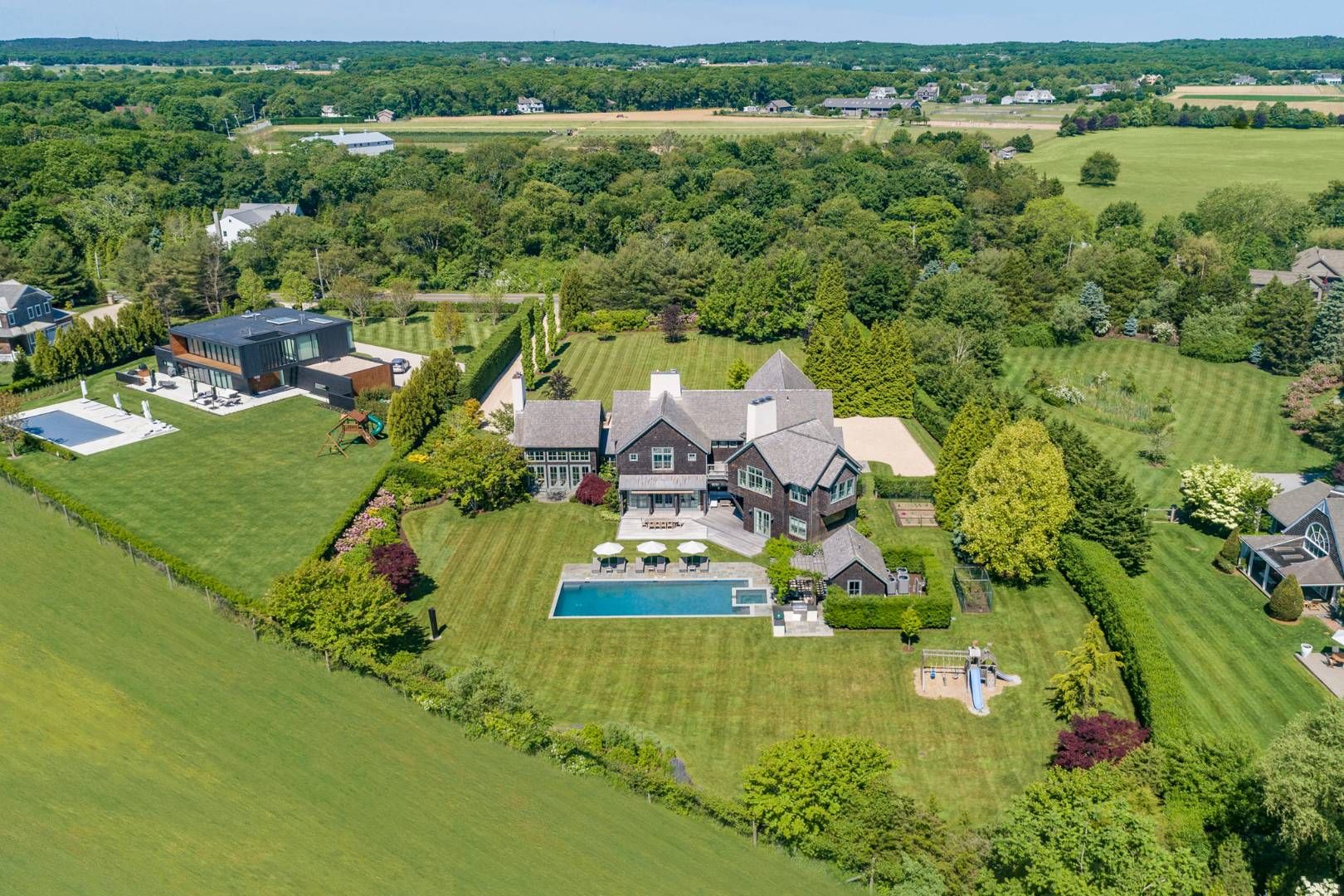 Impeccably renovated in 2019 by de la Motte | Schult, 499 Scuttle Hole Road is an artfully crafted 9,100+/- sq. ft. modern farmhouse bordering 50+/- acres of agricultural reserve. A private gated entry and majestic approach bring you inside this 2+/- acre property with exceptional landscaping, splendid lawns, a 20' x 50' saltwater gunite pool, inlaid spa, pool house and ample room for tennis. Brand new interiors and endless farm views blend to