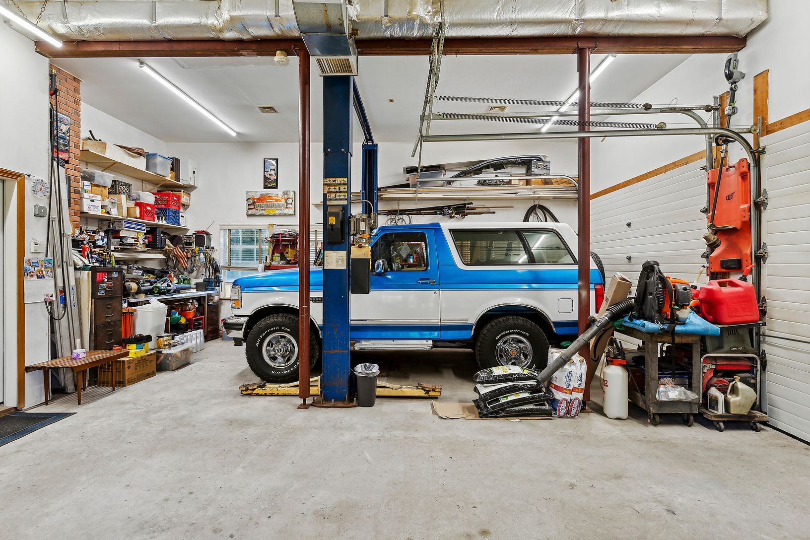 Car lovers will appreciate the double-height garage with a lift, ideal for storage, projects, or housing your prized vehic
