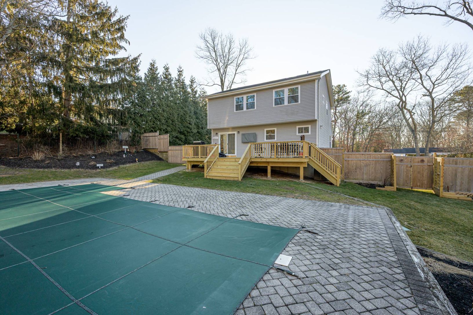 Just in time for the 2026 US Open in Southampton, this turnkey Hamptons rental offers a private and comfortable retreat in Hampton Bays. Set on .40 acres, the traditional home features 3 bedrooms, 2 full baths, approximately 1,800 square feet of living space, and a large swimming pool. The light-filled living room centers around a wood-burning fireplace, while the eat-in kitchen with adjacent dining area opens through sliding glass doors to th