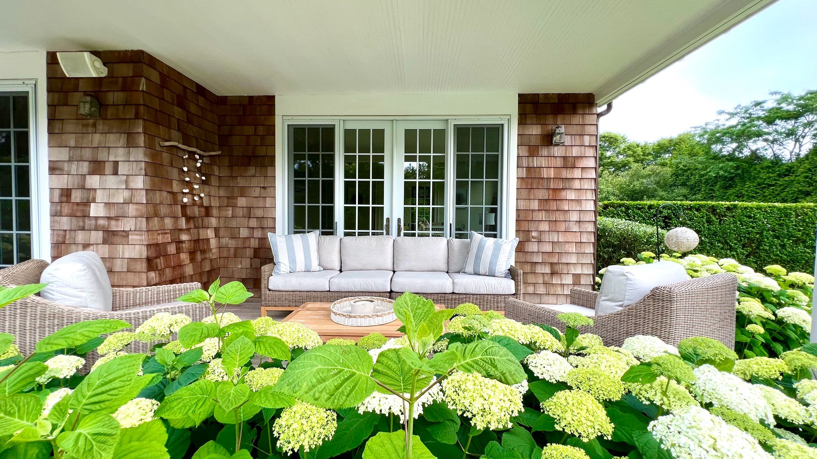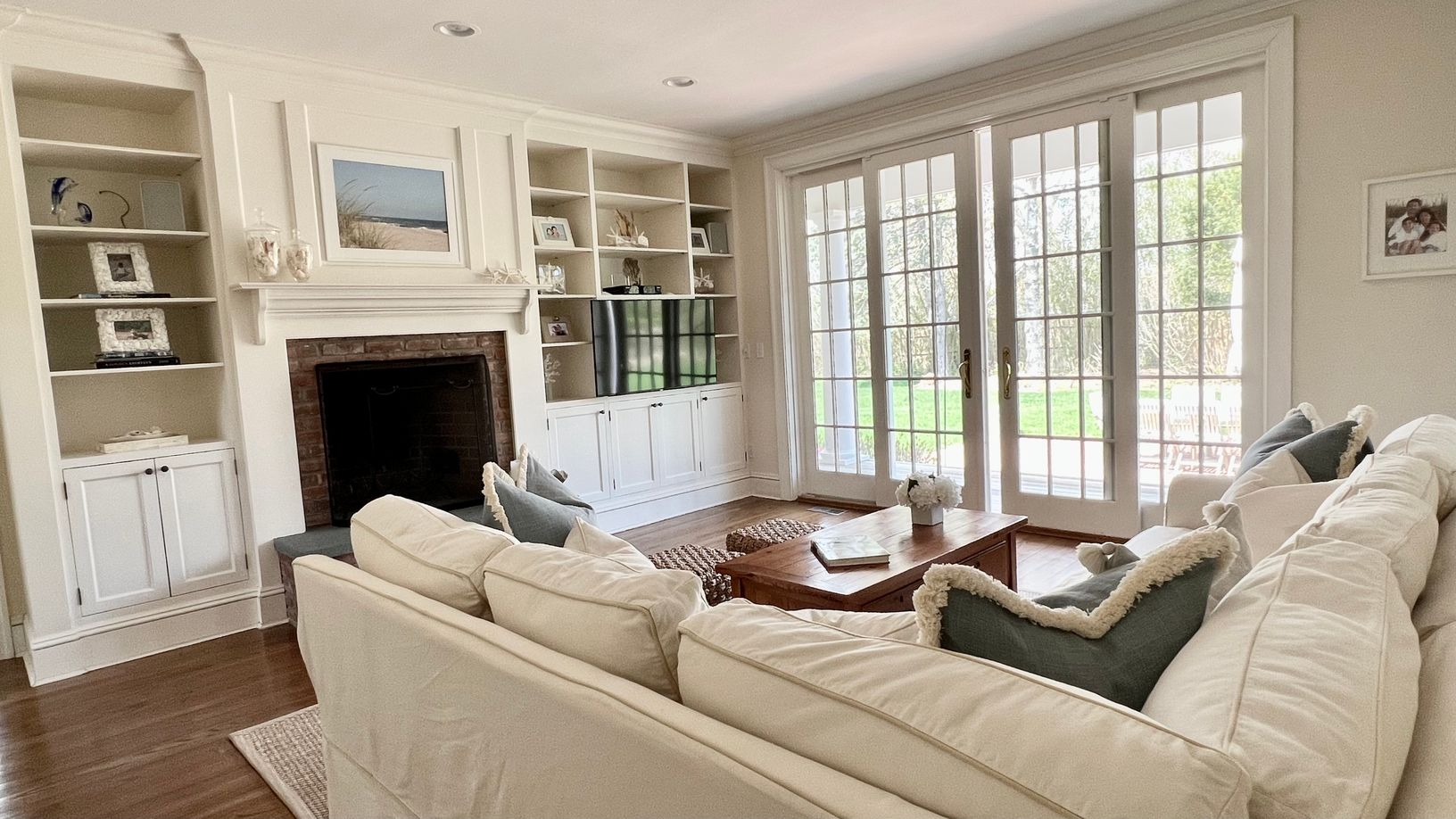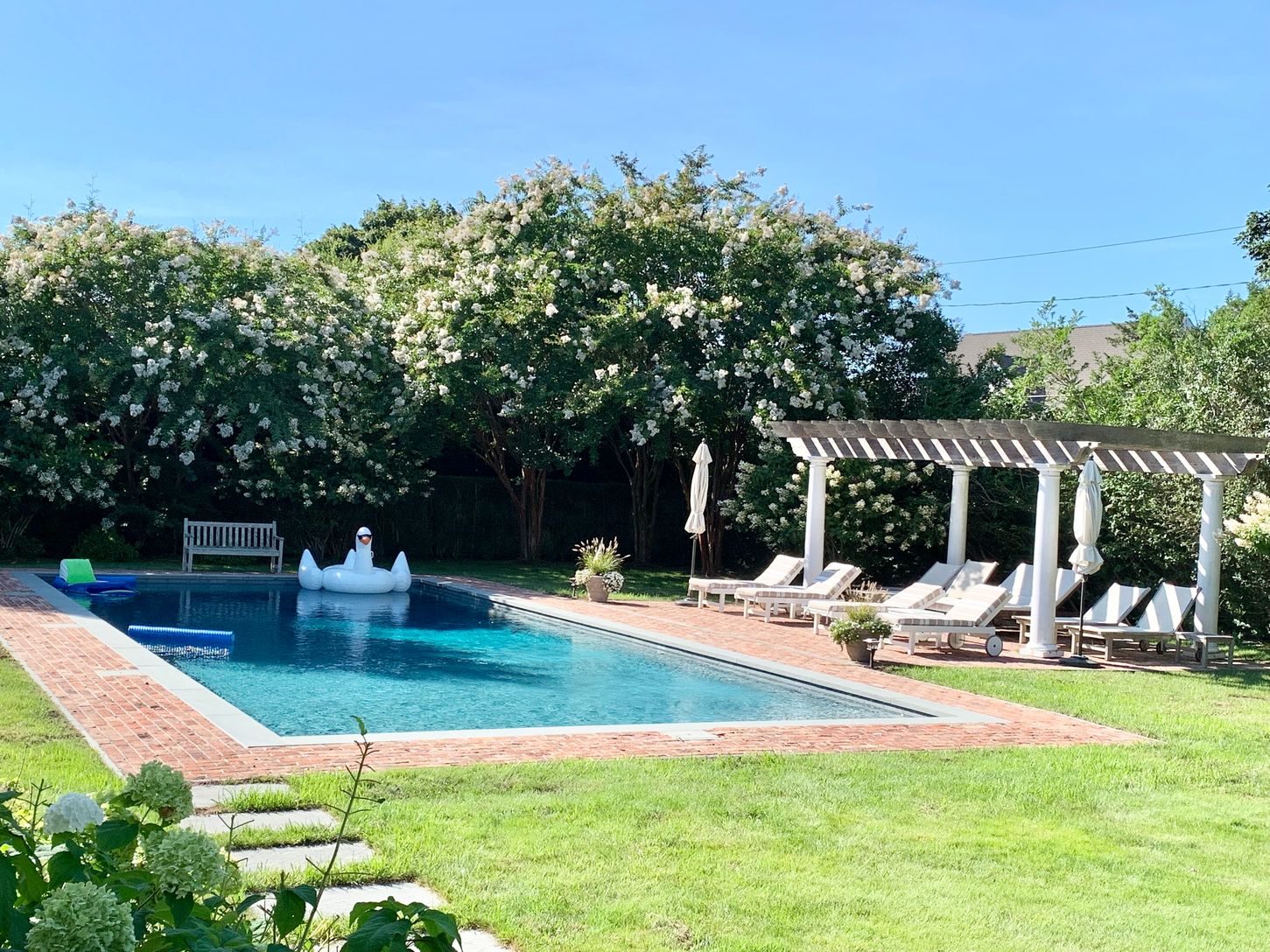 This immaculate traditional home boasts 5 bedrooms on 1.2 acres in Southampton Village. Great living room, dining room, family room, sunroom, 5 baths, gourmet kitchen with 2 dishwashers, 2 refrigerators, large butlers pantry, and a breakfast area, large rec. room with table tennis and big screen TV with cable, oversized heated gunite pool (25x48) with pergola and is surrounded by beautiful gardens, outdoor shower, wireless internet and central