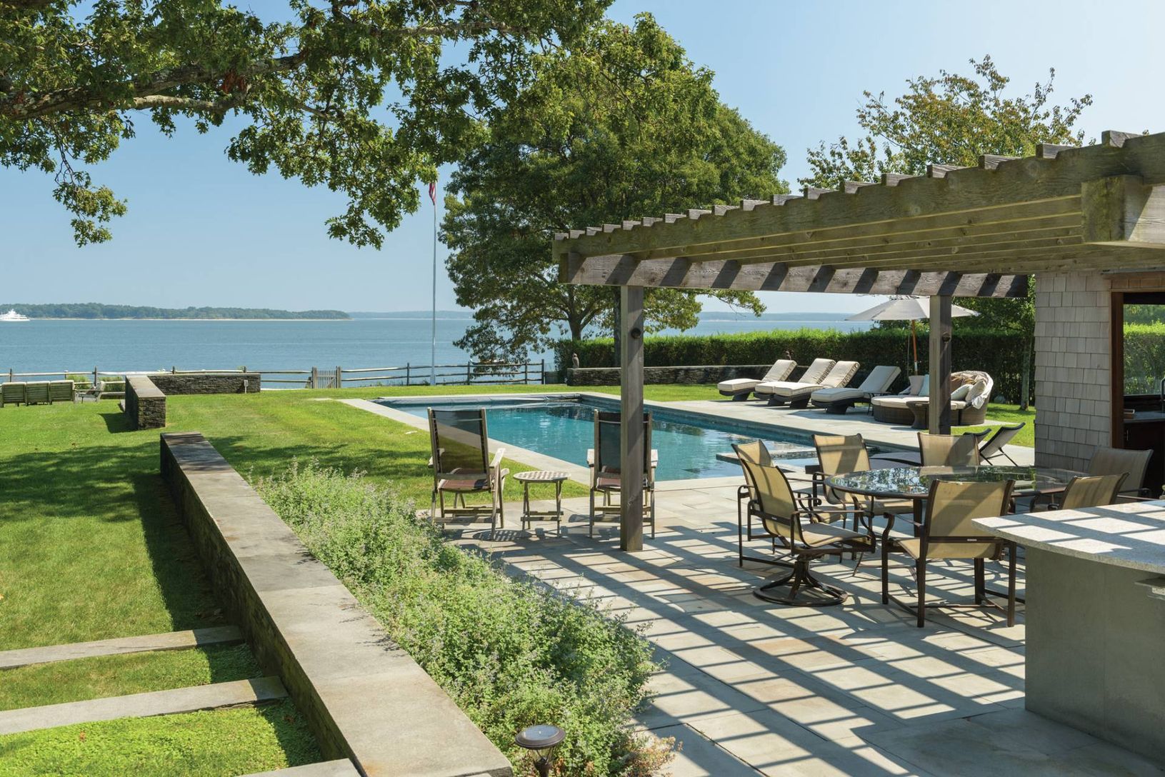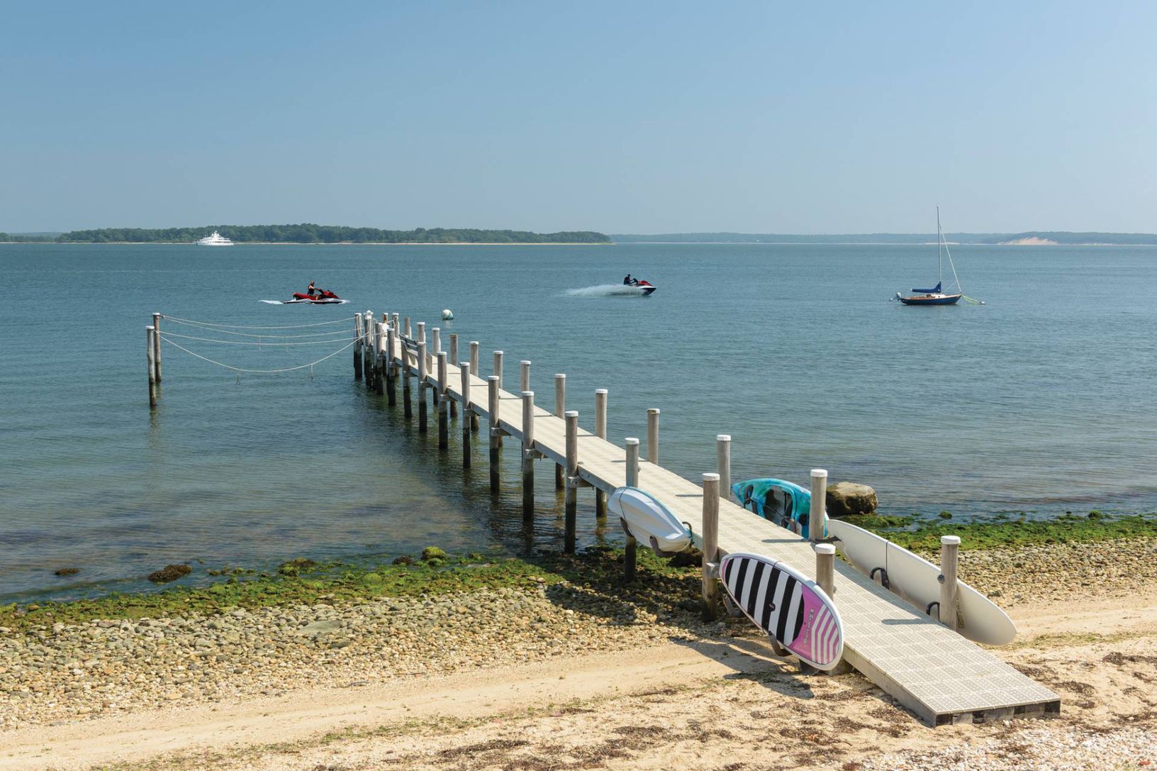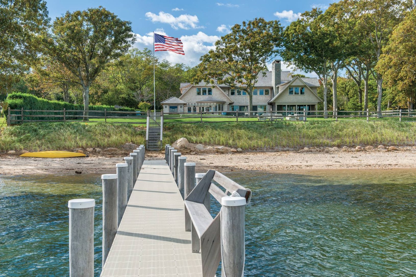 This spectacular bay front property is set on 1.15+/- mostly clear acres, offering 152+/- feet of direct frontage on Sag Harbor Bay and a 140+/- foot-long deep water dock. Spread out on the property, including the large lawn and waterside pool and terraces, and enjoy walks on the beach directly from the private steps. Bring or rent a boat and water toys to enjoy a summer of recreational fun. The unobstructed east-facing views of the bay includ