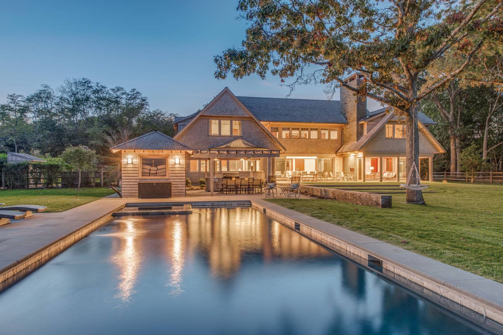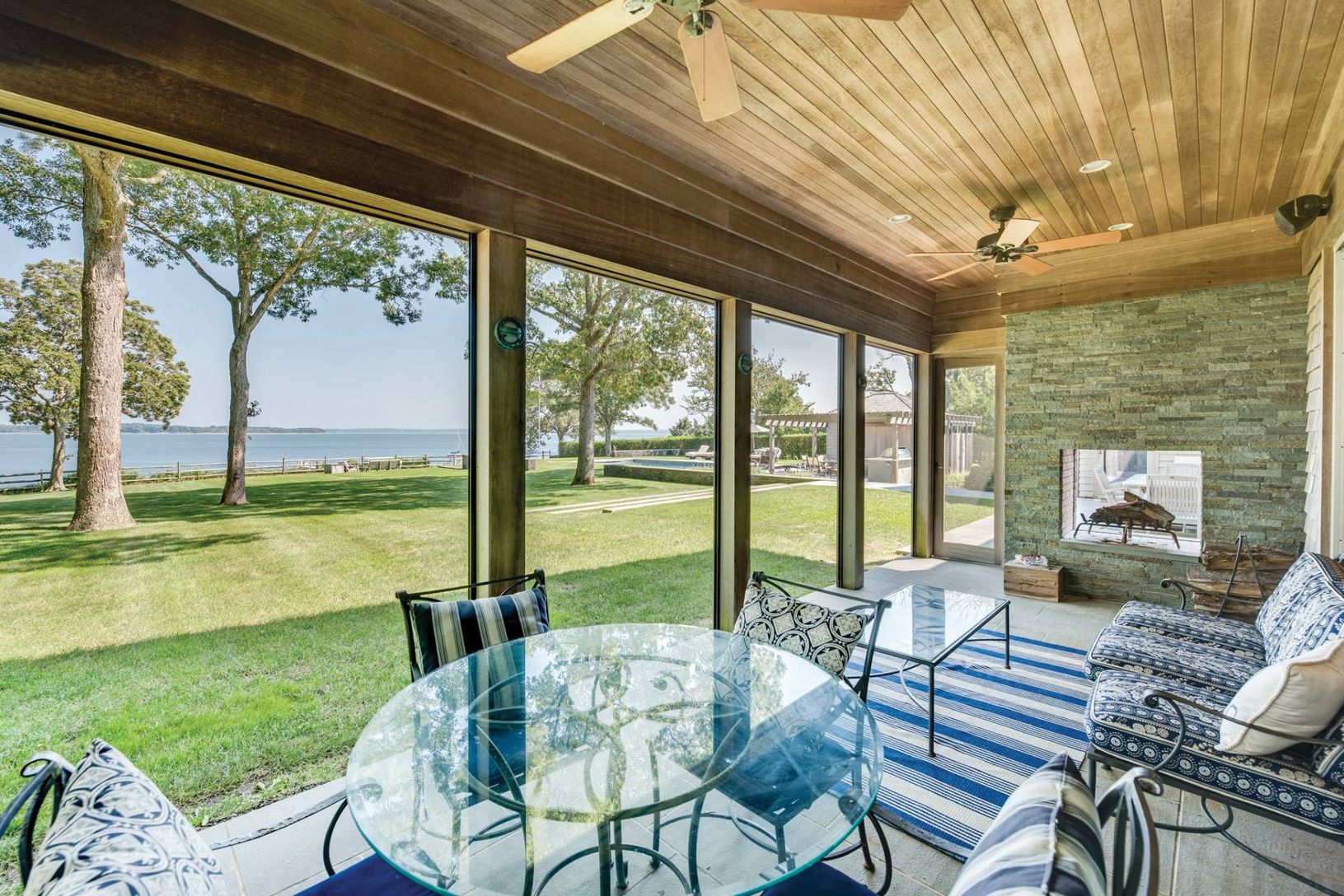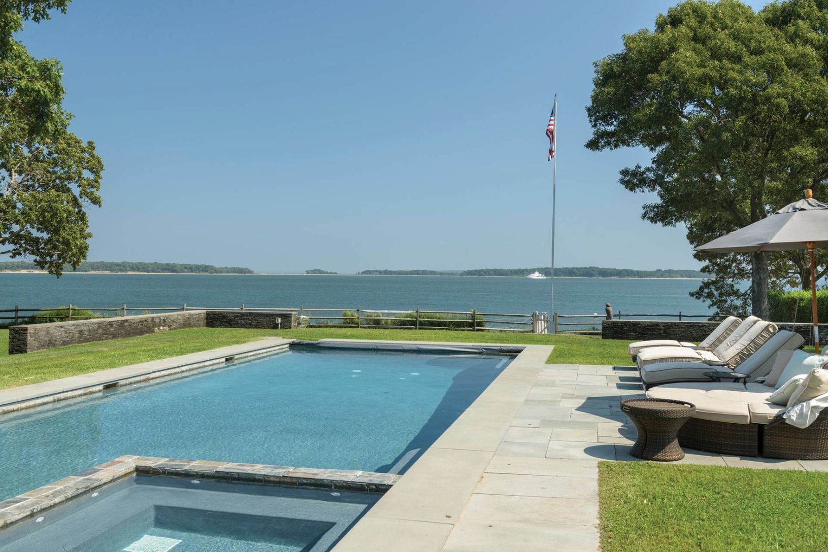 This spectacular bay front property is set on 1.15+/- mostly clear acres, offering 152+/- feet of direct frontage on Sag Harbor Bay and a 140+/- foot-long deep water dock. Spread out on the property, including the large lawn and waterside pool and terraces, and enjoy walks on the beach directly from the private steps. Bring or rent a boat and water toys to enjoy a summer of recreational fun. The unobstructed east-facing views of the bay includ