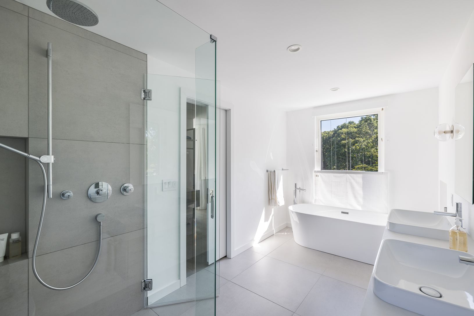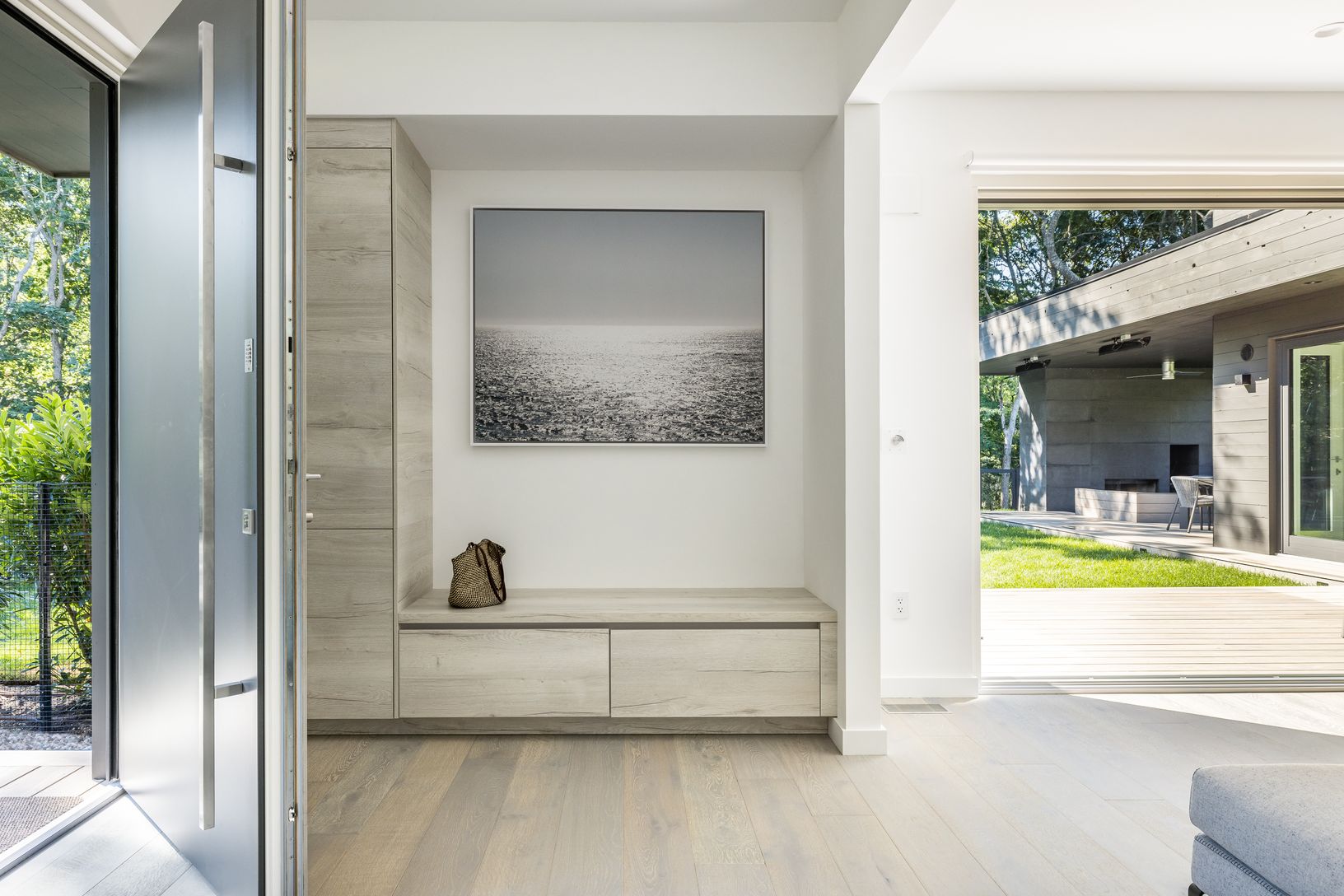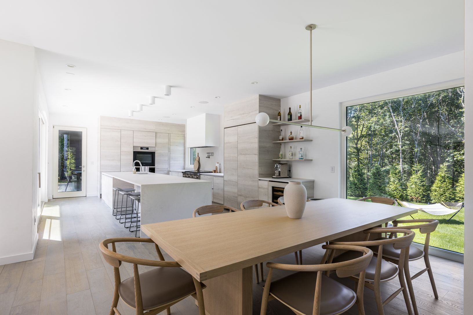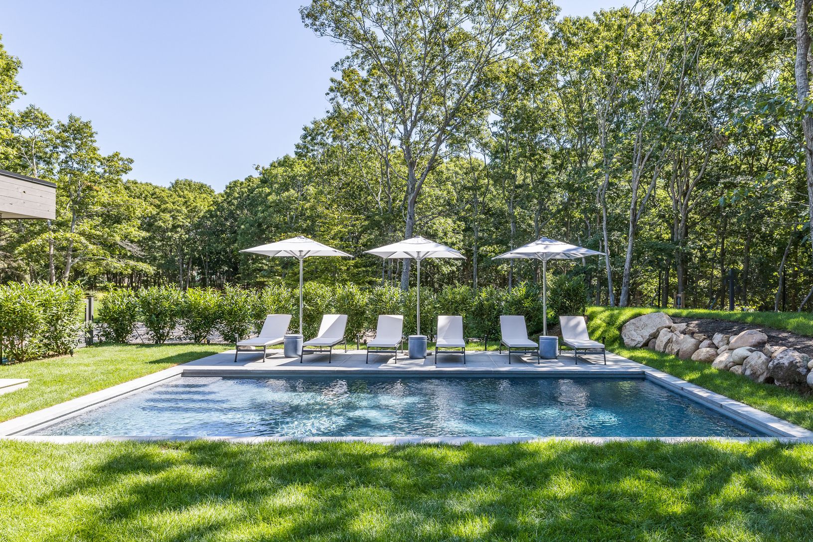 AVAILABLE SUMMER 2026! This stunning modern new build offers everything you'll need for a perfect Hamptons getaway. Only a five minute drive to the villages of East Hampton and Amagansett, this conveniently located home features four bedrooms and four and a half bathrooms across all three levels. Flooded with light from the oversized sliding glass doors, the open concept layout showcases a living space anchored by a sleek gas fireplace, and a