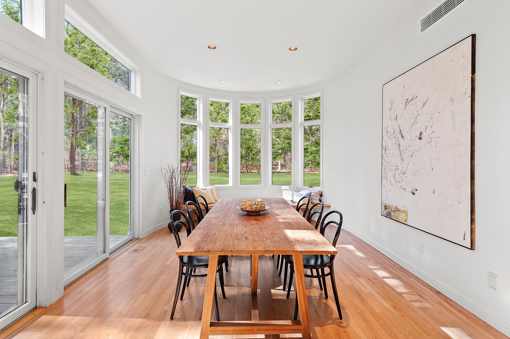 This uniquely built 4 bedrooms 2.5 bathrooms home contains an array of exquisite features. The interior layout is open with hardwood floors and high ceilings, making for a wonderful entertaining space. The living room features include a brick fireplace for those cozy Hamptons evenings and is adjacent to the stunning dining area saturated in natural light. Find ample opportunities to dine indoor with or outdoors with loved ones by the double de