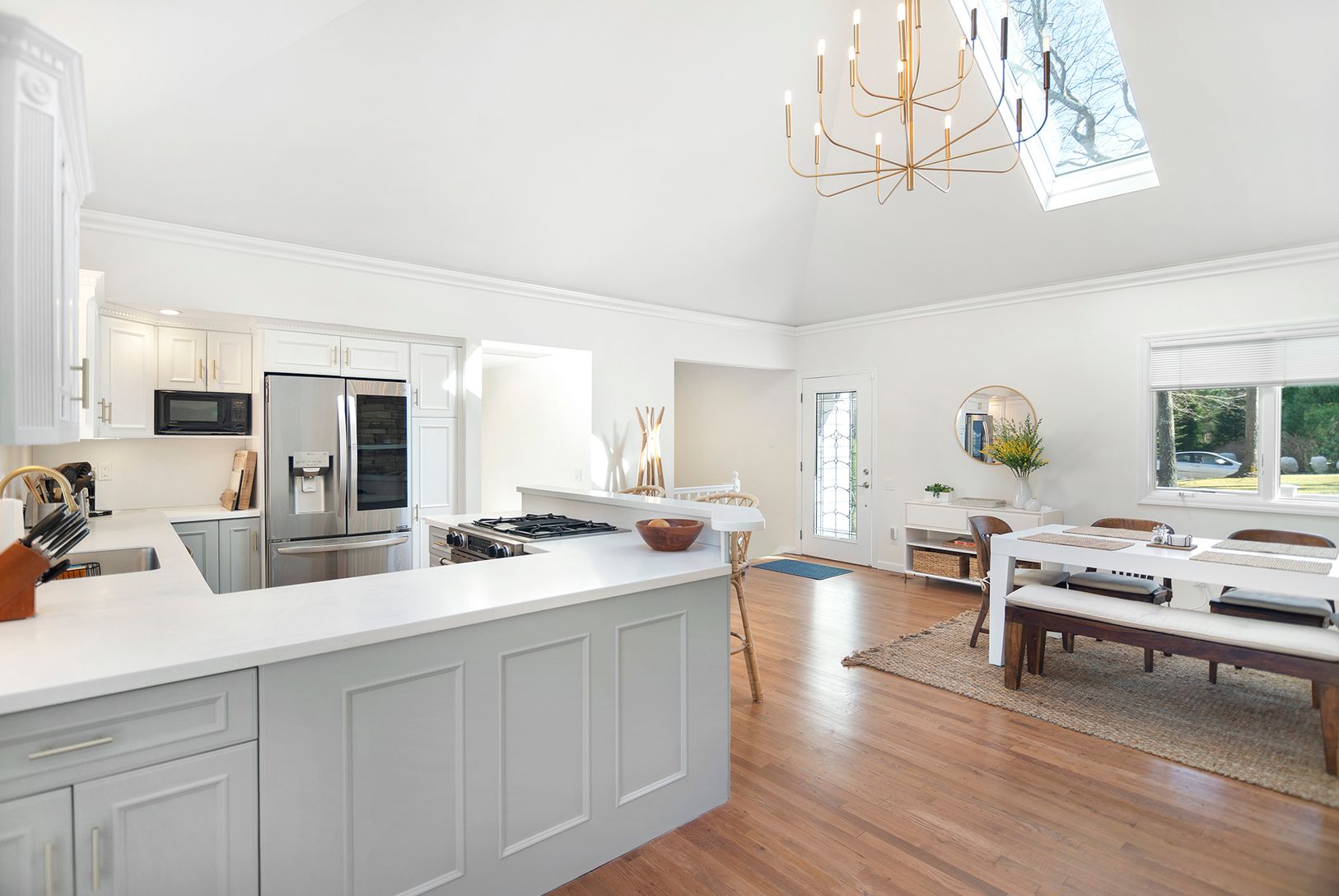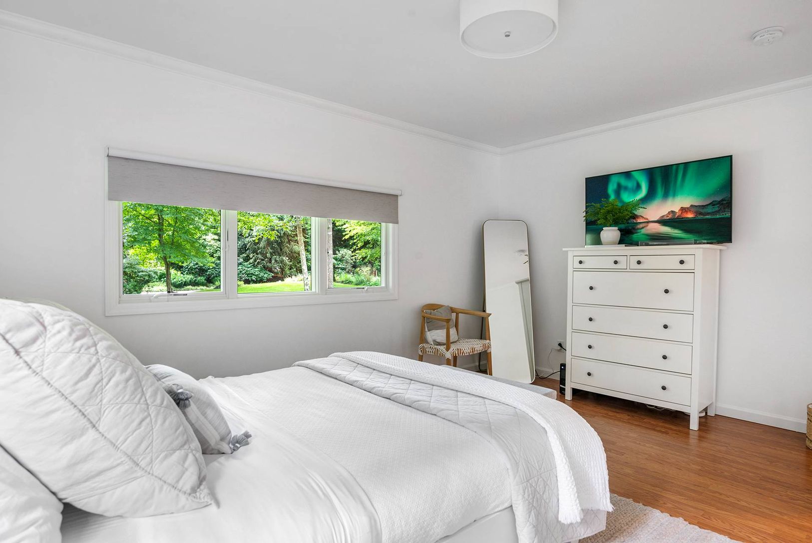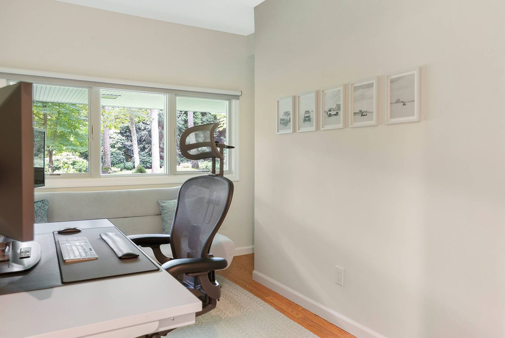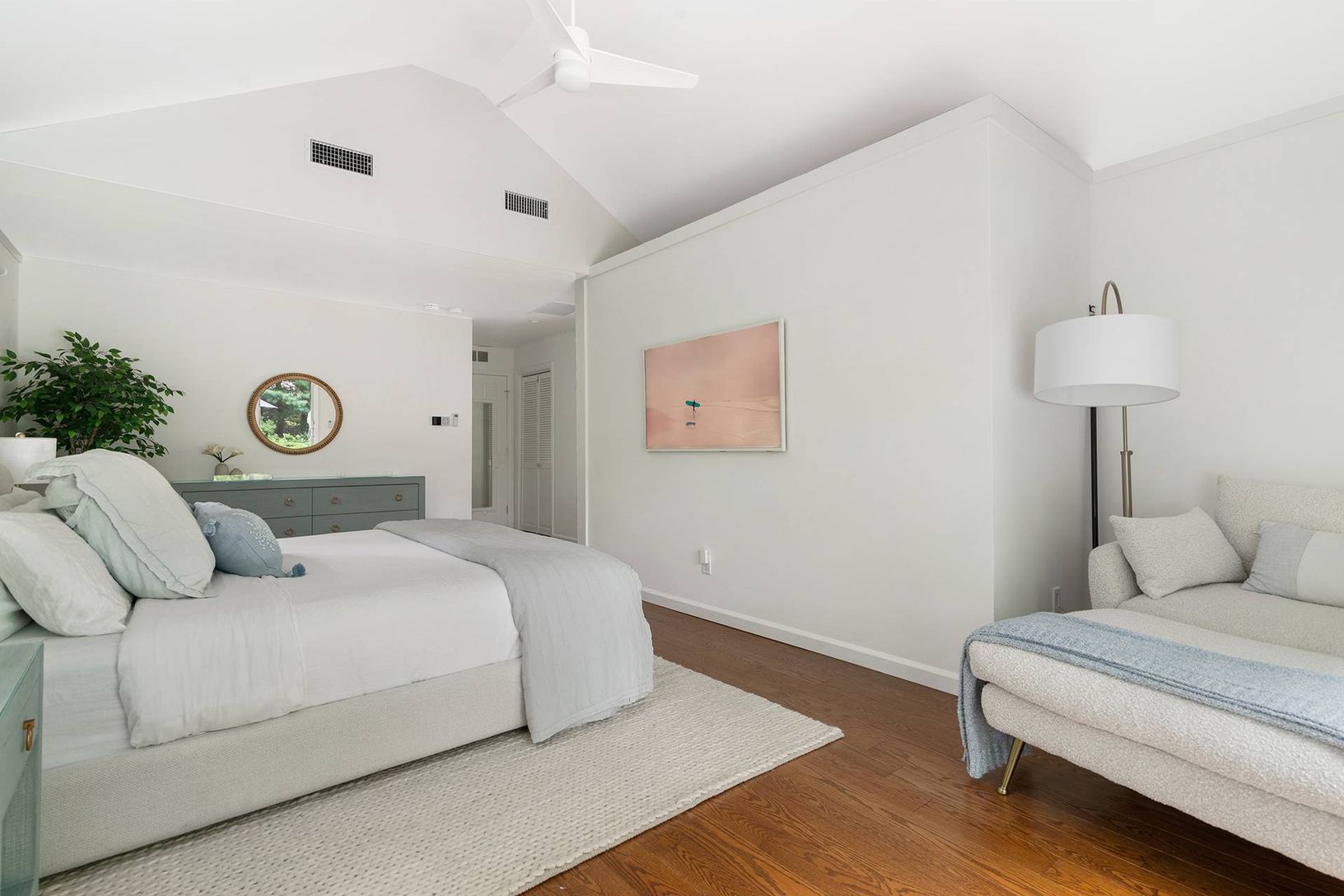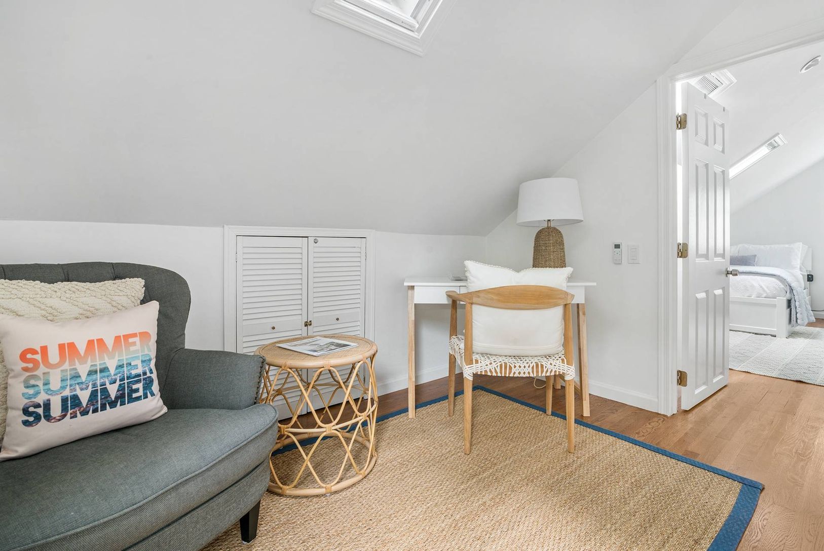 Beautifully maintained beach house near everything in the hamlet of Wainscott. Cheerfully decorated, this home is crisp and tasteful. There is an open living room with stone fireplace, dining area, den and kitchen with stainless appliances. The first floor primary bedroom suite has a king bed and opens up to a private deck. It boasts a large TV and generous walk-in closet. Additionally, there is a guest bedroom with queen bed, an office and a