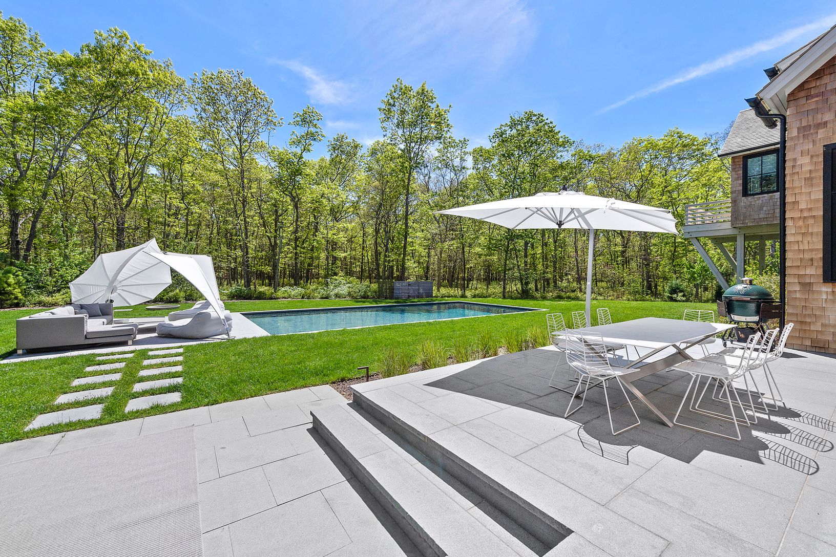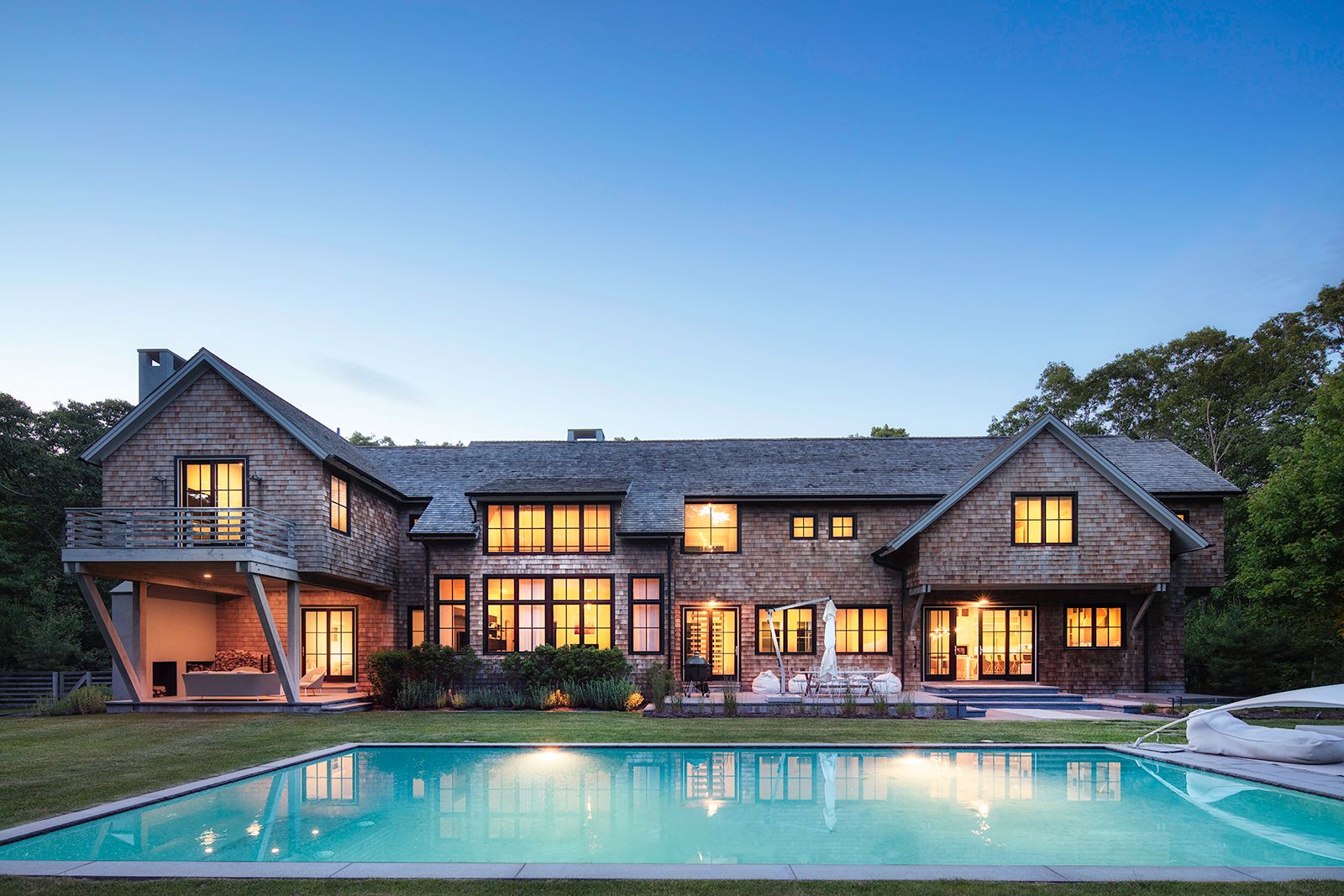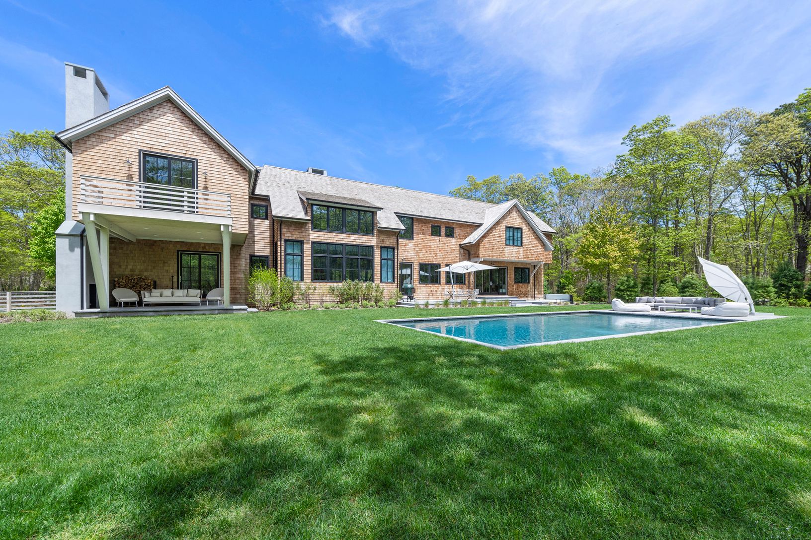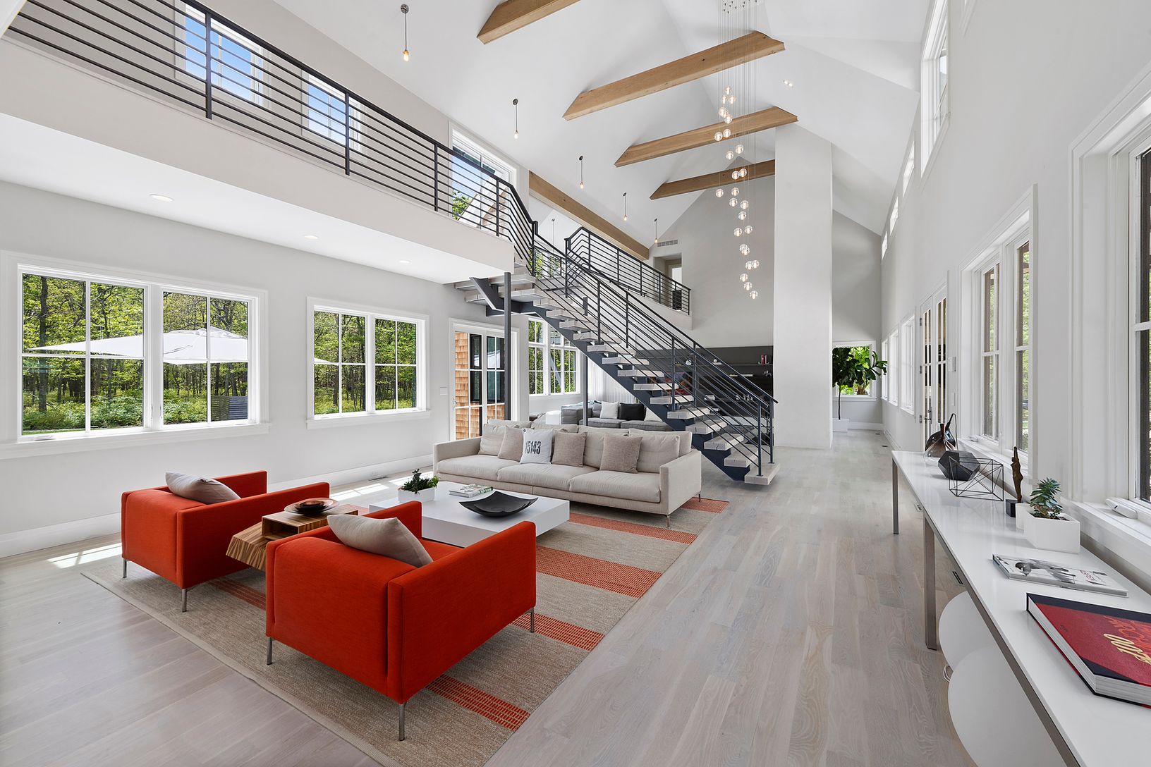Conveniently located on 2.2+/- acres in Sagaponack, this modern and exquisite barn-style home is perfect to relax or entertain, featuring an open concept with a triple-height ceiling, walls of windows, multiple fireplaces, second-floor master and first-floor guest master suites, three additional guest rooms, and an open chef's kitchen with Sub-Zero and Wolf appliances, dual sinks, and dual whisper-quiet Bosch dishwashers. The sleek and stylish