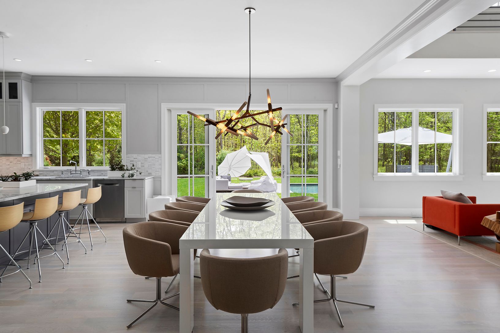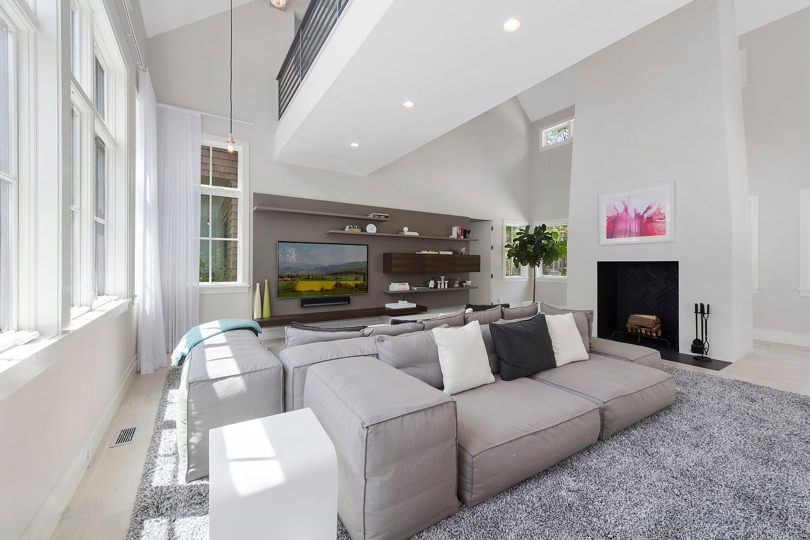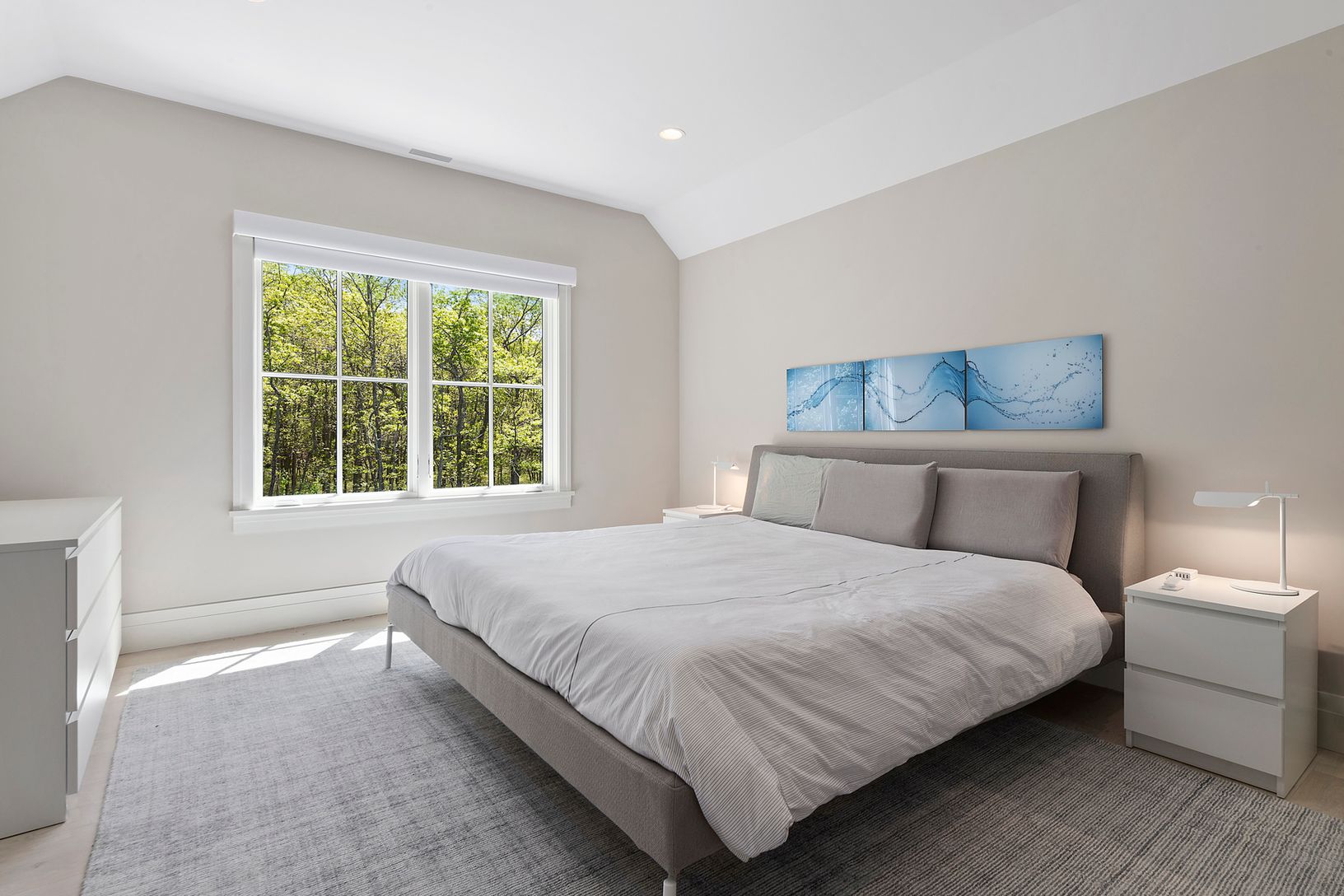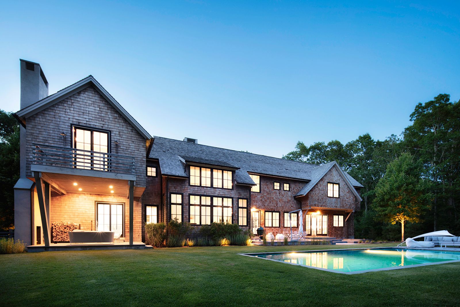 Conveniently located on 2.2+/- acres in Sagaponack, this modern and exquisite barn-style home is perfect to relax or entertain, featuring an open concept with a triple-height ceiling, walls of windows, multiple fireplaces, second-floor master and first-floor guest master suites, three additional guest rooms, and an open chef's kitchen with Sub-Zero and Wolf appliances, dual sinks, and dual whisper-quiet Bosch dishwashers. The sleek and stylish