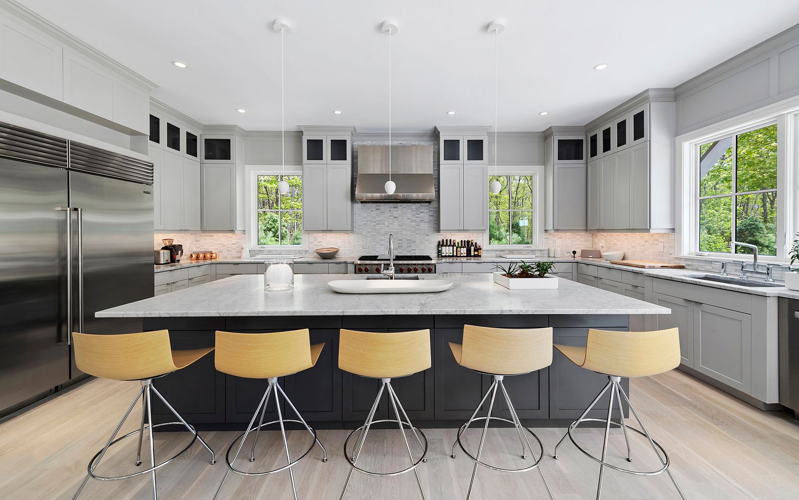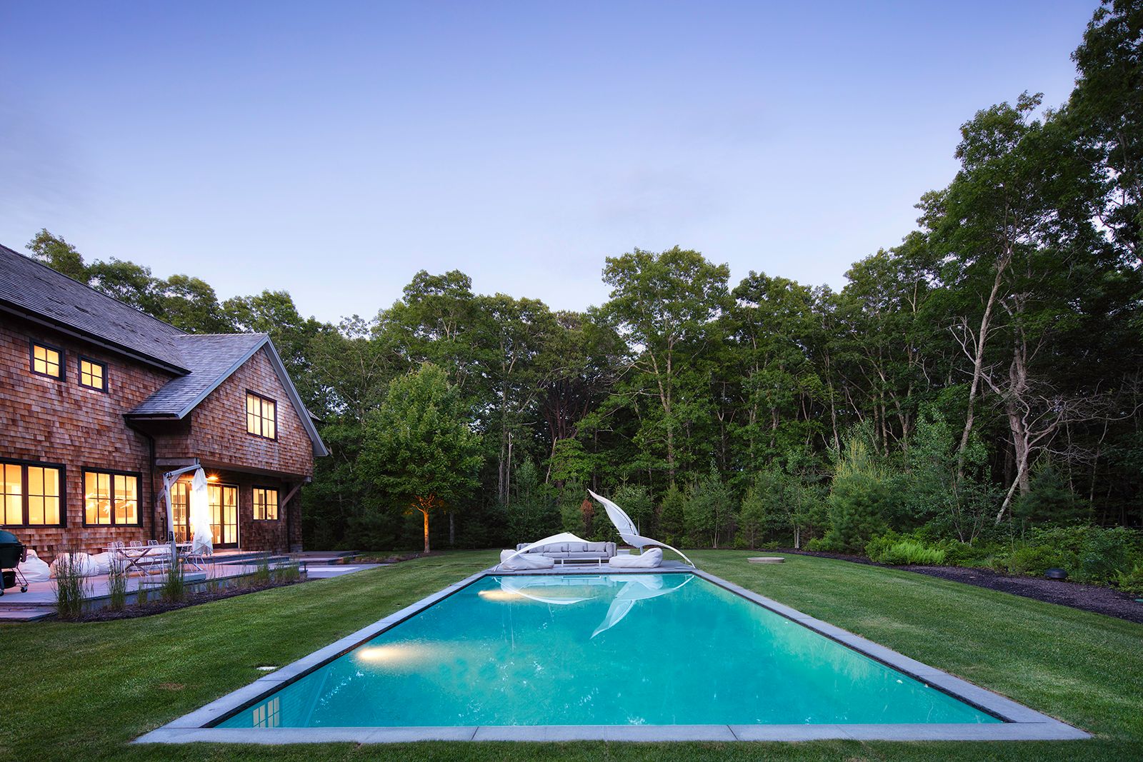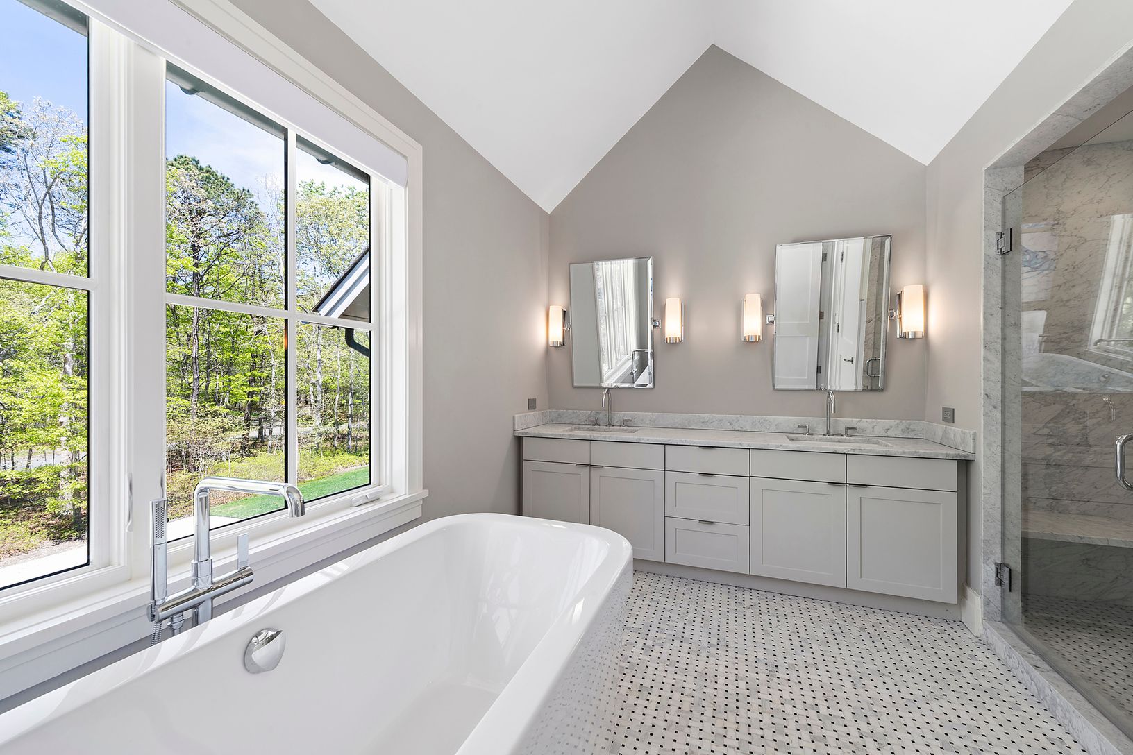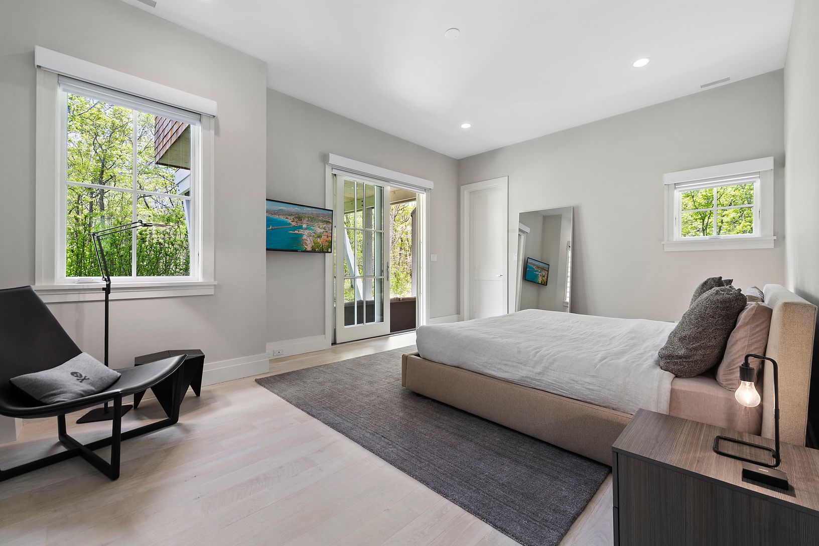 Conveniently located on 2.2+/- acres in Sagaponack, this modern and exquisite barn-style home is perfect to relax or entertain, featuring an open concept with a triple-height ceiling, walls of windows, multiple fireplaces, second-floor master and first-floor guest master suites, three additional guest rooms, and an open chef's kitchen with Sub-Zero and Wolf appliances, dual sinks, and dual whisper-quiet Bosch dishwashers. The sleek and stylish