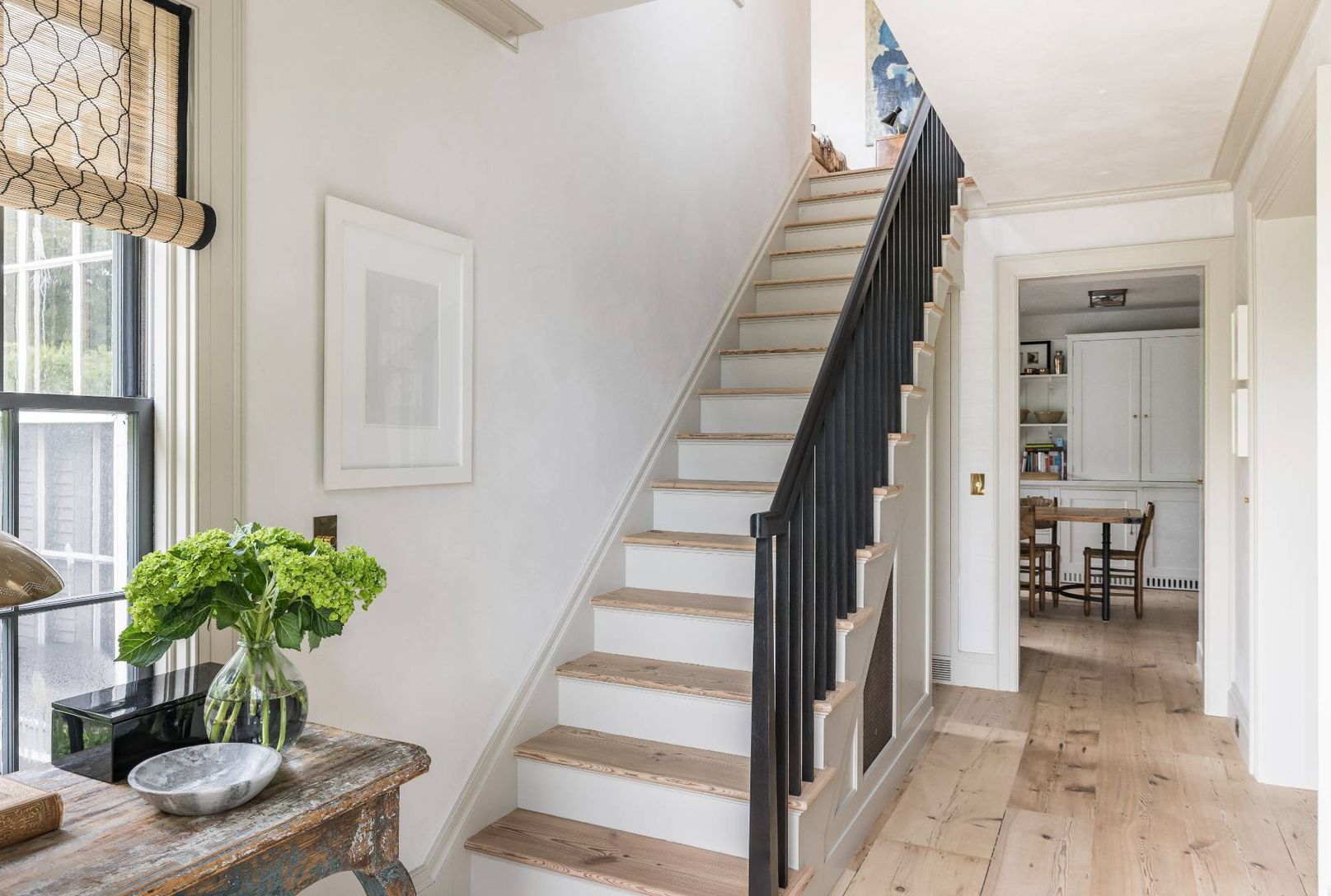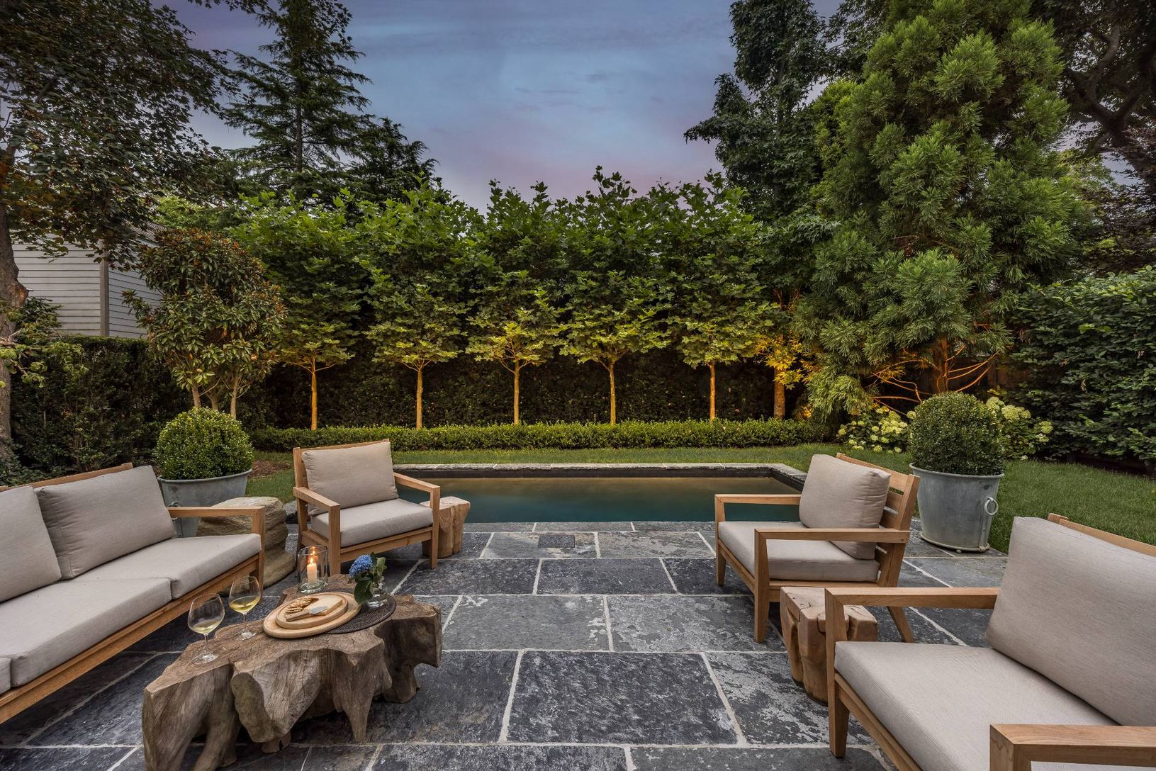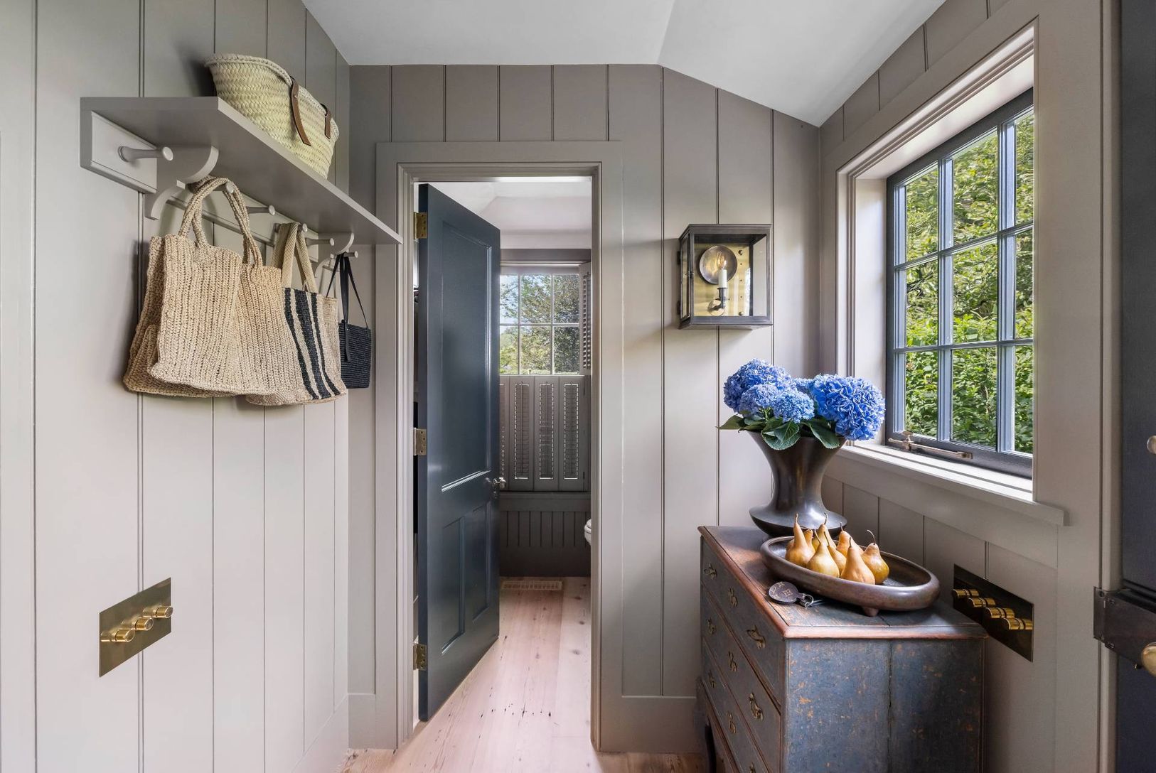 Situated on a serene, waterfront street with enchanting views of Upper Sag Harbor Cove, this meticulously renovated and expanded residence is one of only four homes on Green Street, offering a rare sense of peace and unparalleled privacy in the heart of Sag Harbor Village. Upon arrival, the home's curated landscape and perfectly proportioned architecture captivate the eye. Gas lanterns cast a warm glow on the welcoming Dutch door, hinting at t