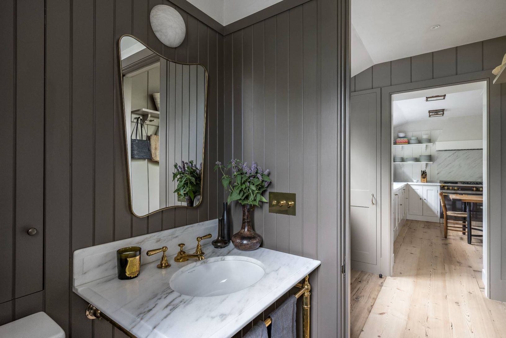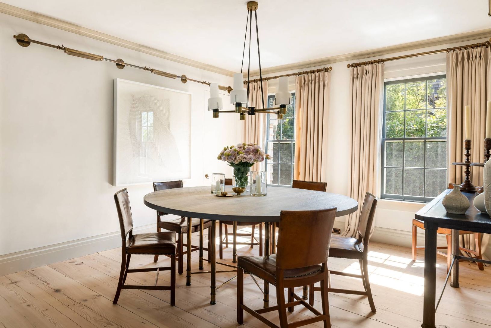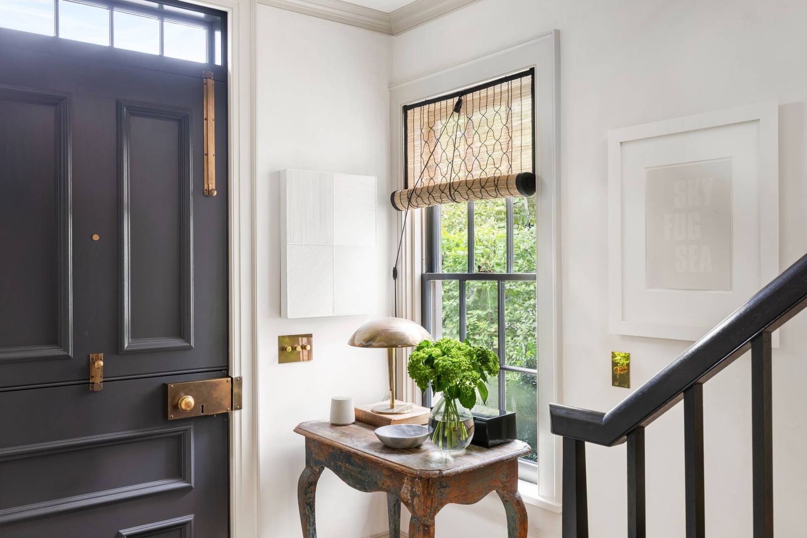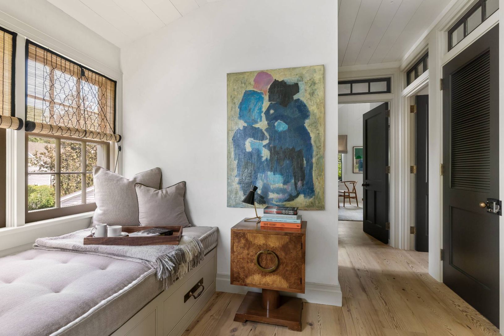 Situated on a serene, waterfront street with enchanting views of Upper Sag Harbor Cove, this meticulously renovated and expanded residence is one of only four homes on Green Street, offering a rare sense of peace and unparalleled privacy in the heart of Sag Harbor Village. Upon arrival, the home's curated landscape and perfectly proportioned architecture captivate the eye. Gas lanterns cast a warm glow on the welcoming Dutch door, hinting at t