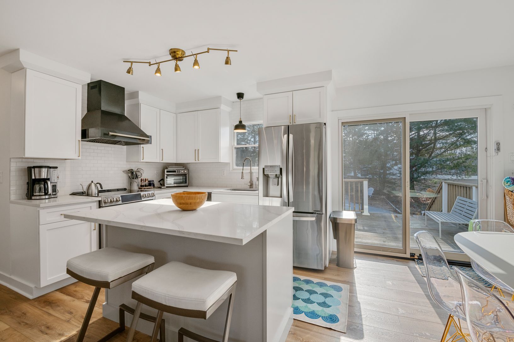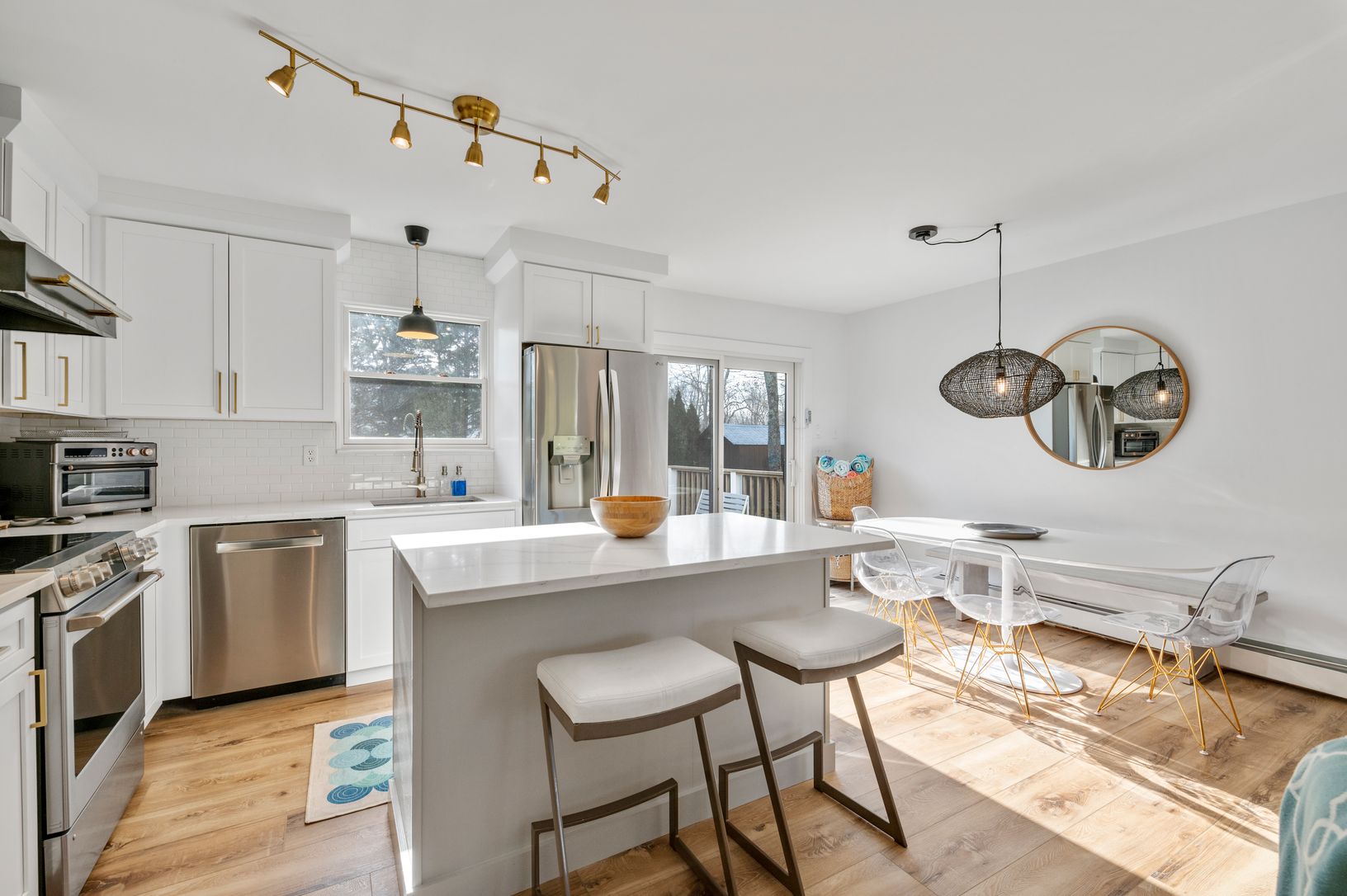 Inside, enjoy an expansive eat-in kitchen that has been fully renovated with modern finishes, ide