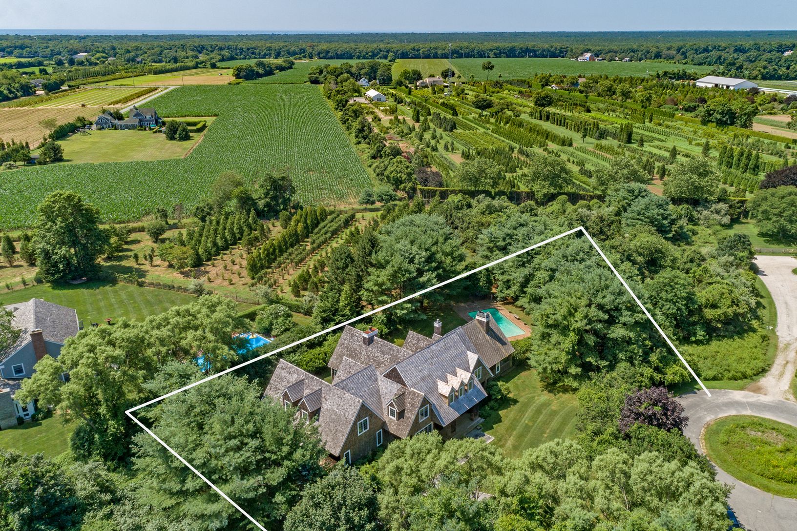This Farrell Building Co.-constructed 5.800+/- sq. ft. traditional in a prime location bordering an agricultural reserve offers privacy and an architecturally dramatic floor plan that provides the perfect setting for any décor. The cedar shingled residence, with six bedrooms, five and one-half baths, and three fireplaces, has soaring ceilings, spacious rooms and affords luxury living with extraordinary amenities. Additional features include an