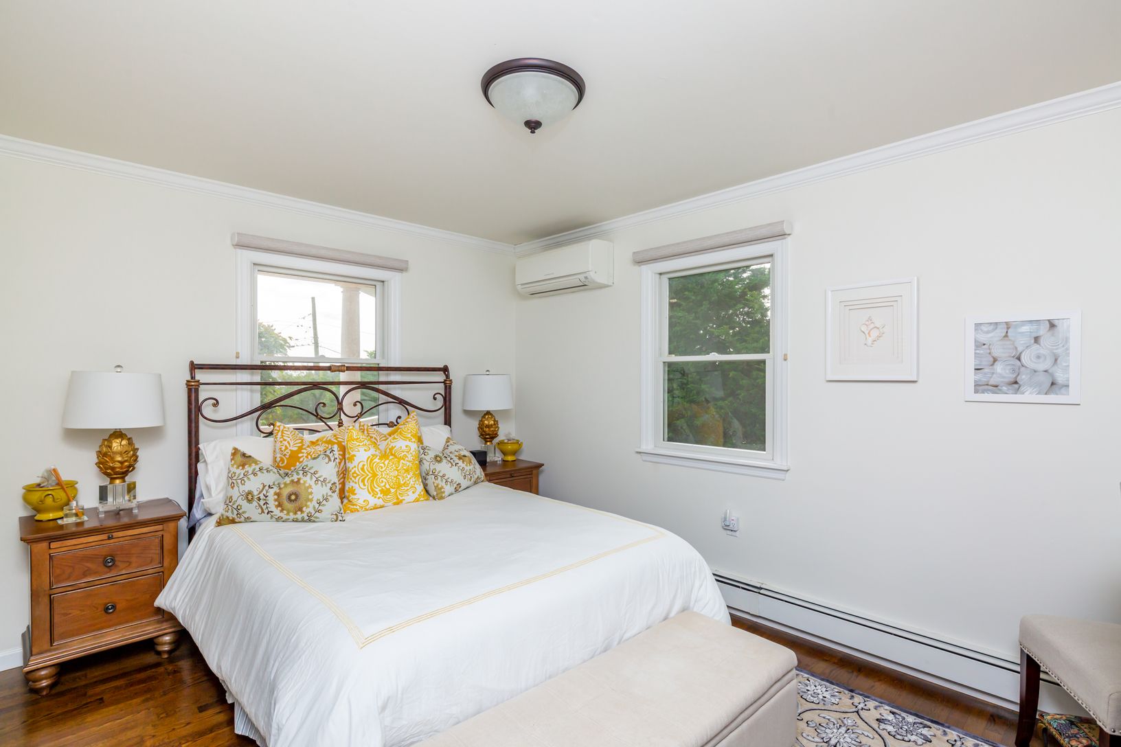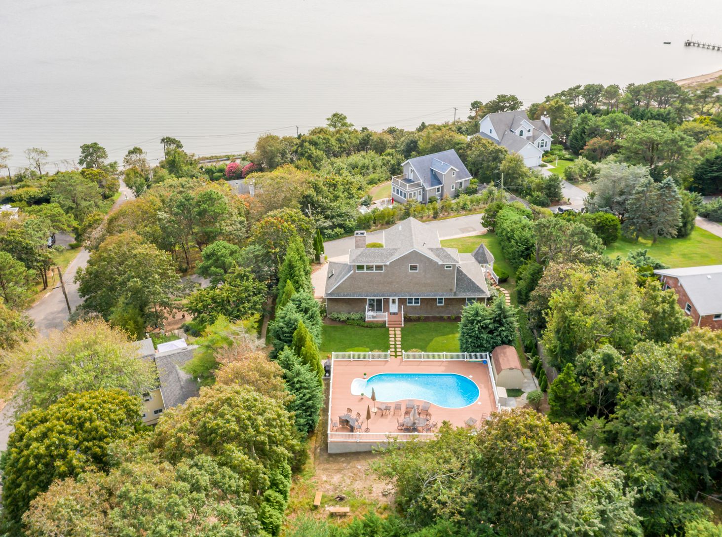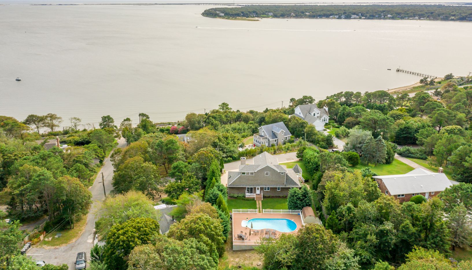 Elevated on High Road, this property has some of the best bay and ocean views in Southampton. Conveniently located just West of the Village, this 4 bedroom, 4 bathroom two story home is in excellent condition and has a very private backyard with newly heated pool and brick patio surround. A proven investment for the owners with steady seasonal rental income. A must see property.