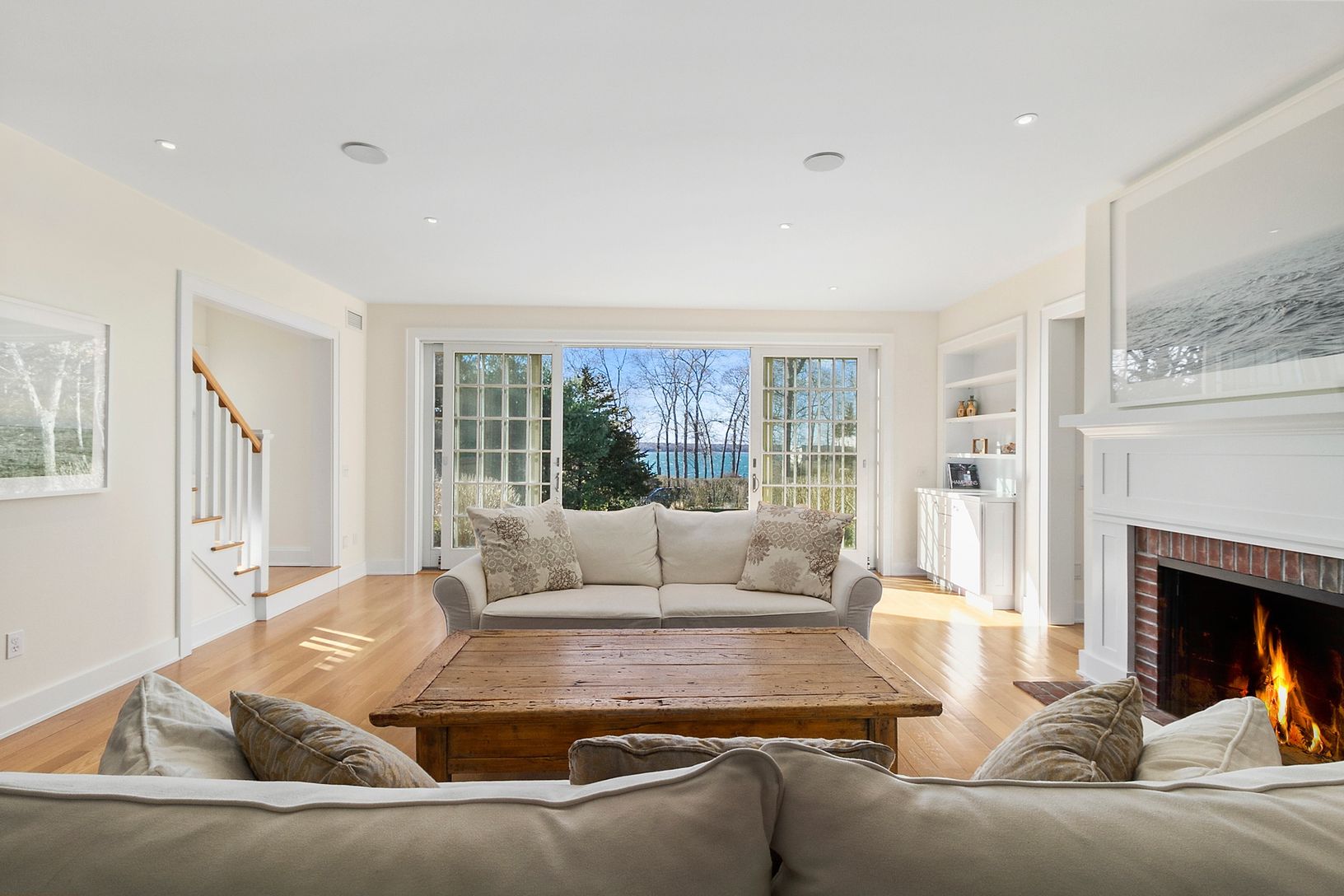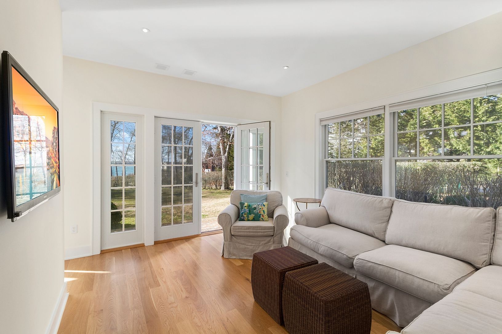 Sunlight is what clearly defines this well designed home. It features 4 Bedrooms and 5 1/2 baths. There is a Jr. Master ensuite on the main floor. 'The Great Room' consists of a Gourmet Chef's Kitchen with all Viking appliances, custom maple cabinetry and caesarstone counter tops, a family/living room area with Fire Place that opens out onto a brick patio w an 18 x 40 foot Gunite pool, all with water views of the harbor. .A bonus TV room w F
