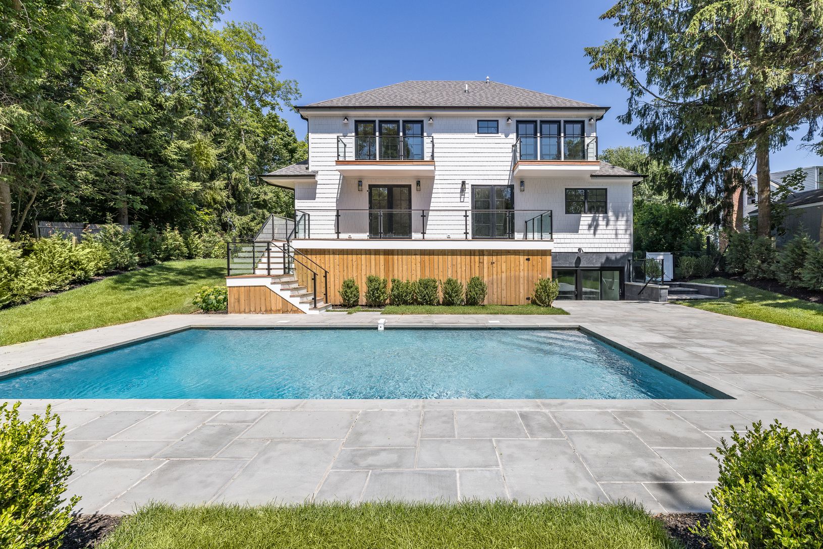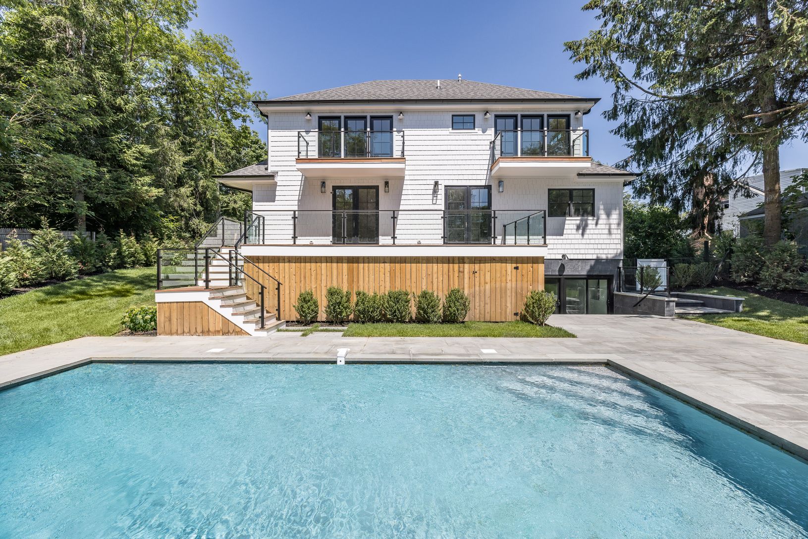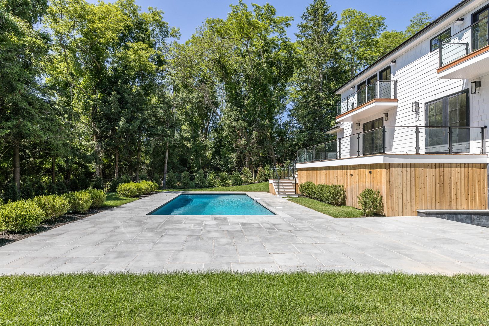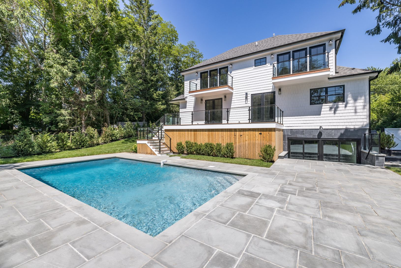 Beautifully crafted, custom built new home, completed just in time to enjoy this summer. This stylish new home offers 4,794sf on 3 finished levels. Featuring an elegant approach, with circular drive and belgian block aprons, accented by professional landscaping. The first level offers a home office/den, formal dining room, open gourmet kitchen with carrera marble countertops, center island, open shelving and high end appliances, opening to