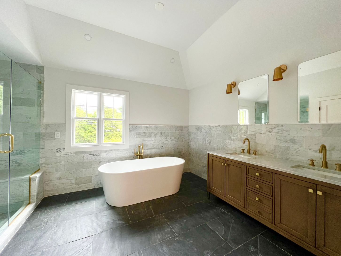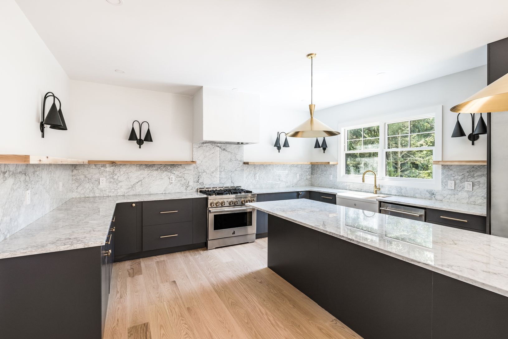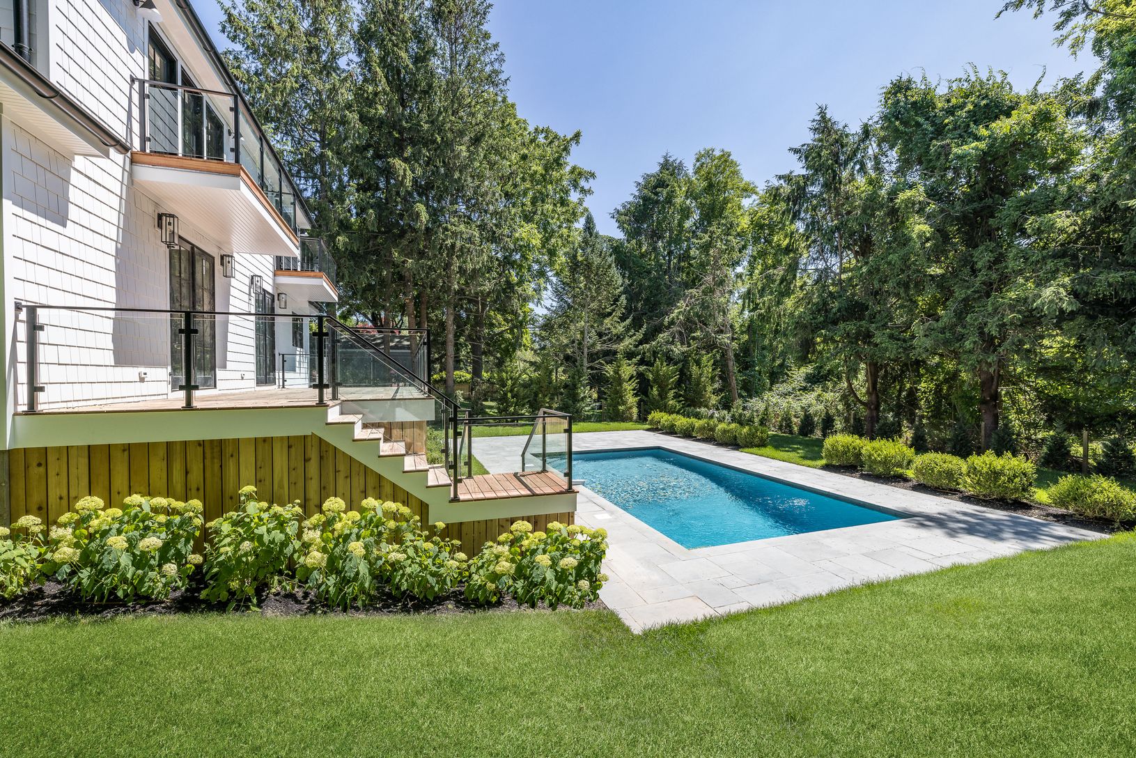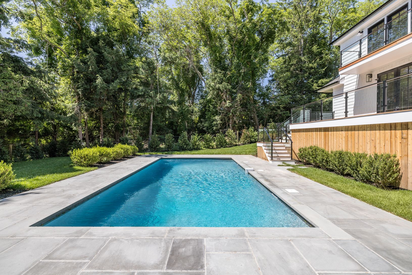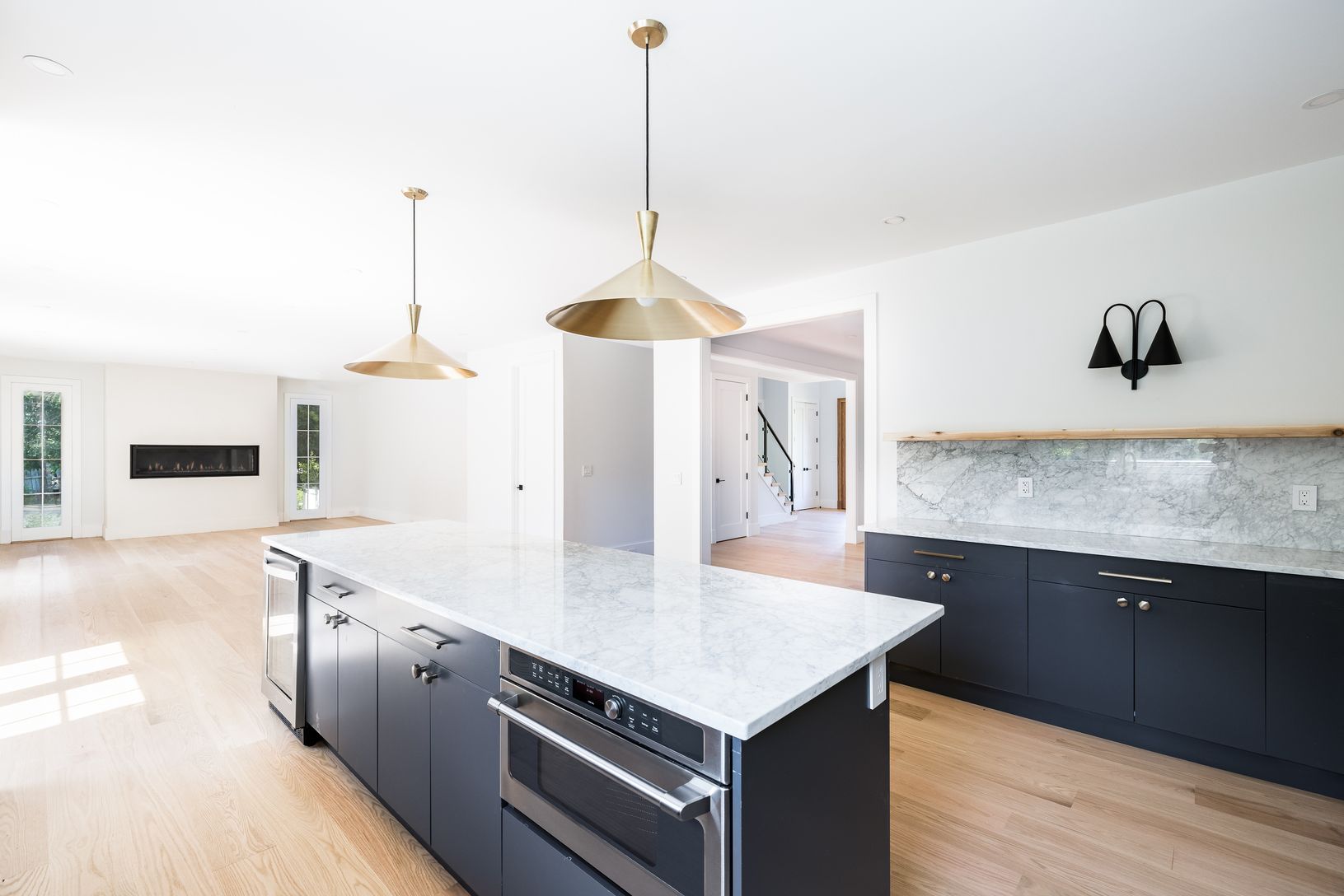 Beautifully crafted, custom built new home, completed just in time to enjoy this summer. This stylish new home offers 4,794sf on 3 finished levels. Featuring an elegant approach, with circular drive and belgian block aprons, accented by professional landscaping. The first level offers a home office/den, formal dining room, open gourmet kitchen with carrera marble countertops, center island, open shelving and high end appliances, opening to