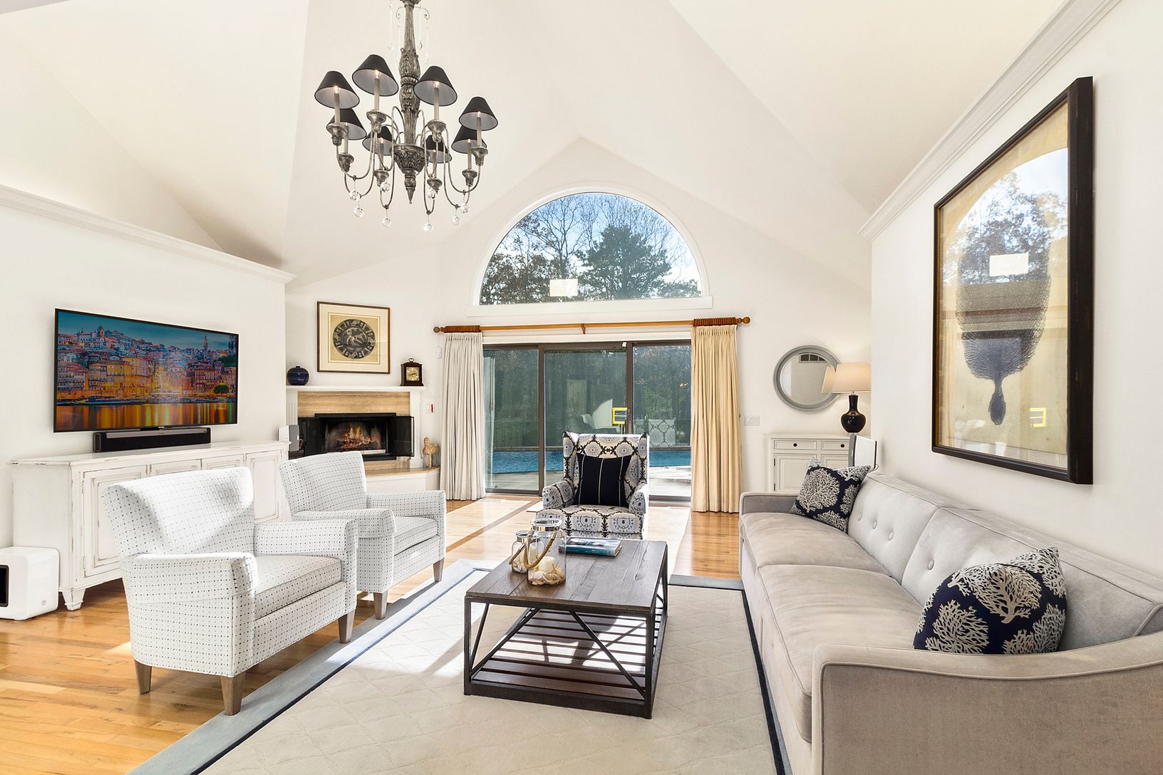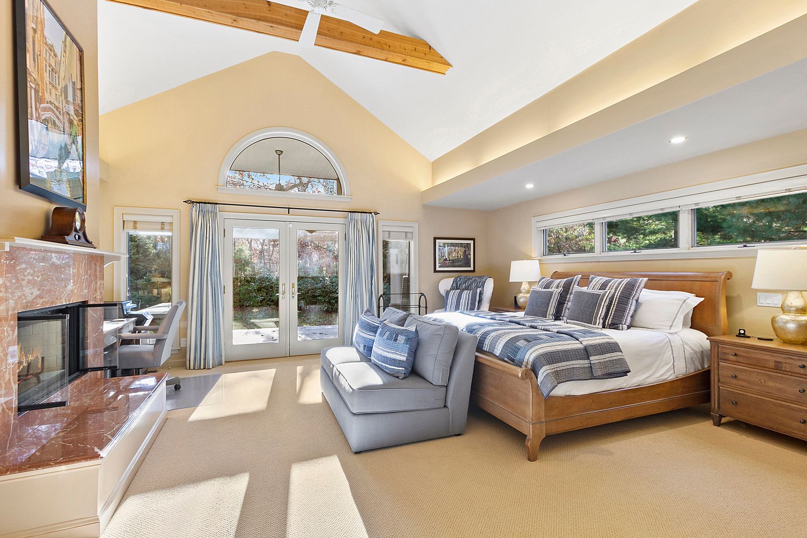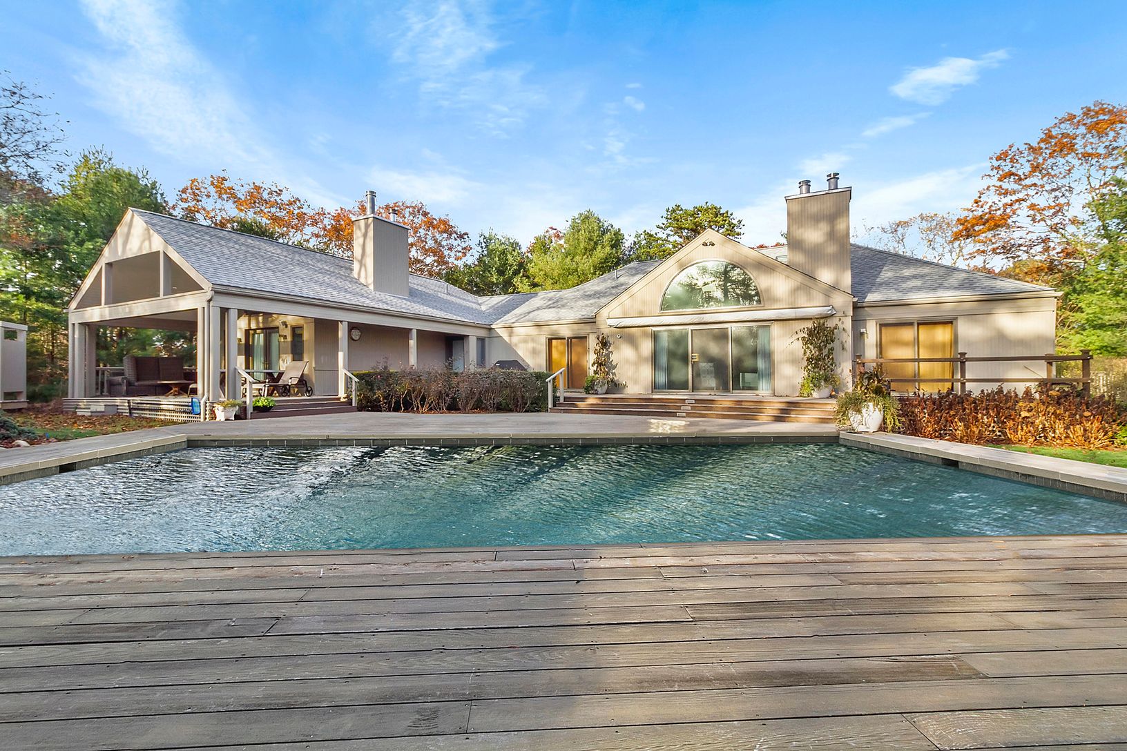 With easy access to East Hampton and Sag Harbor, this gracious home, with a 4 car garage, offers an abundance of convenience, light and privacy. Abutting a 17 acre reserve, the perfectly maintained master wing and guests' wing make up each end of the home adjoined by a spacious, sunny great room, dining area, cozy en suite 4th bedroom or den, 2 half baths, laundry facilities on both main and lower levels. The custom kitchen. with beautiful sli