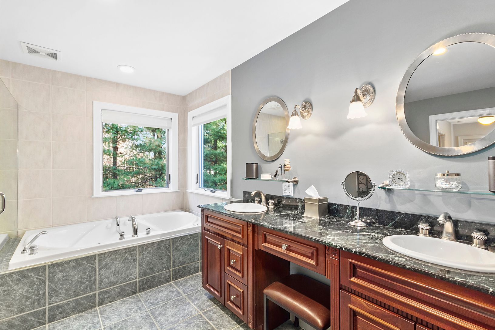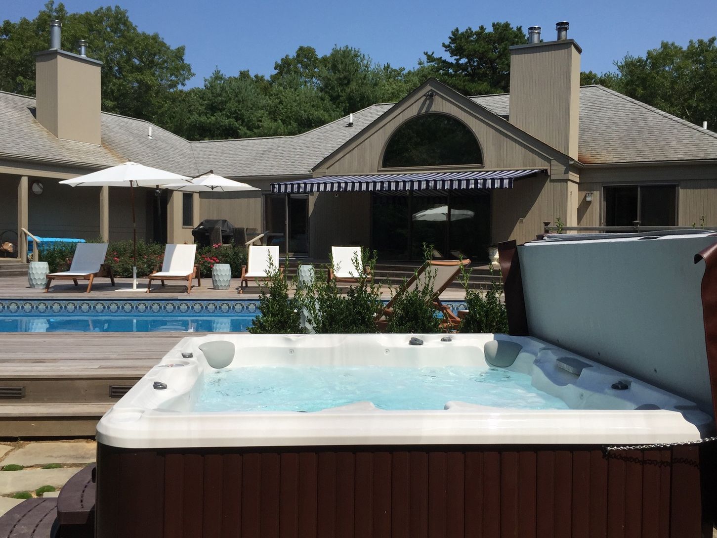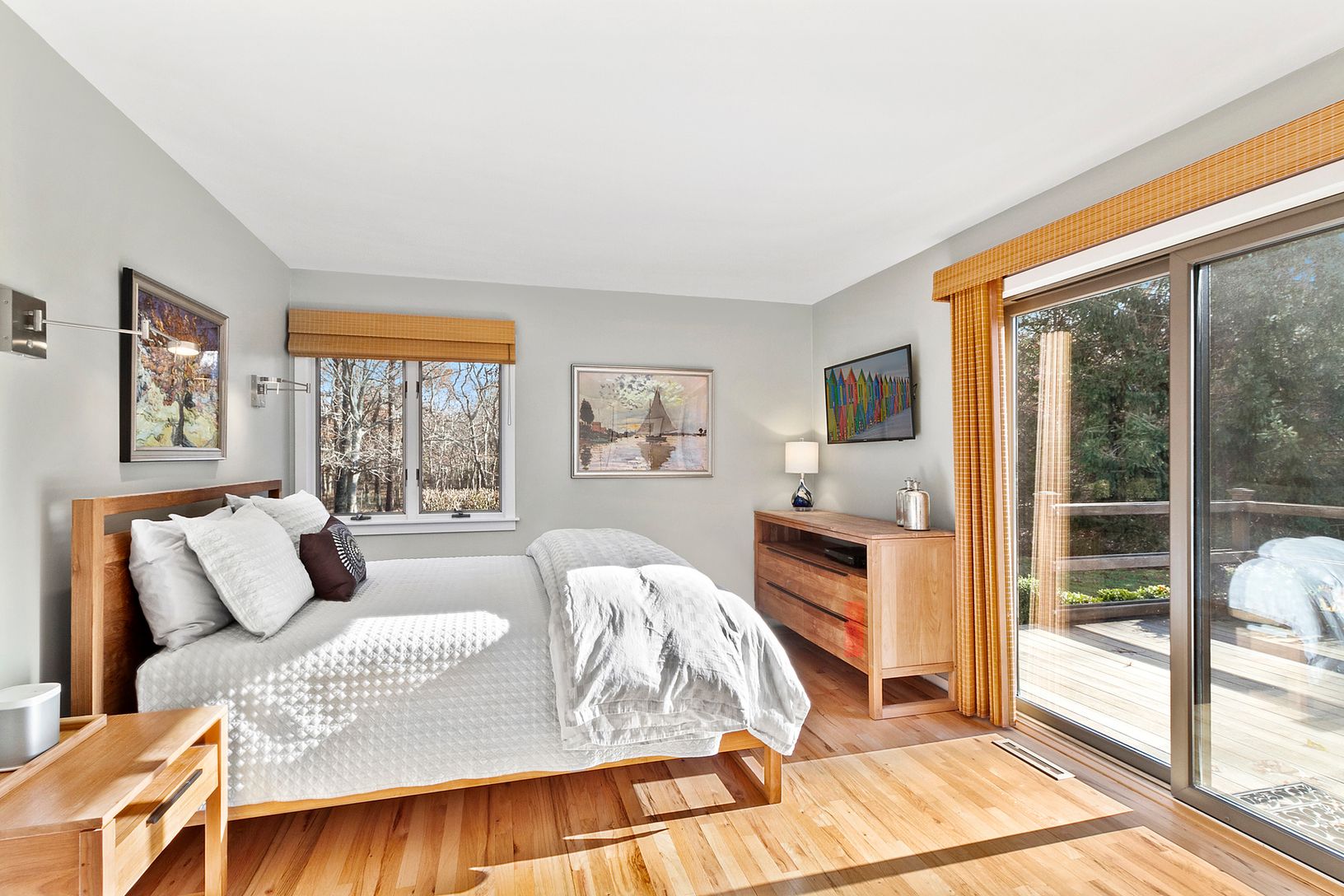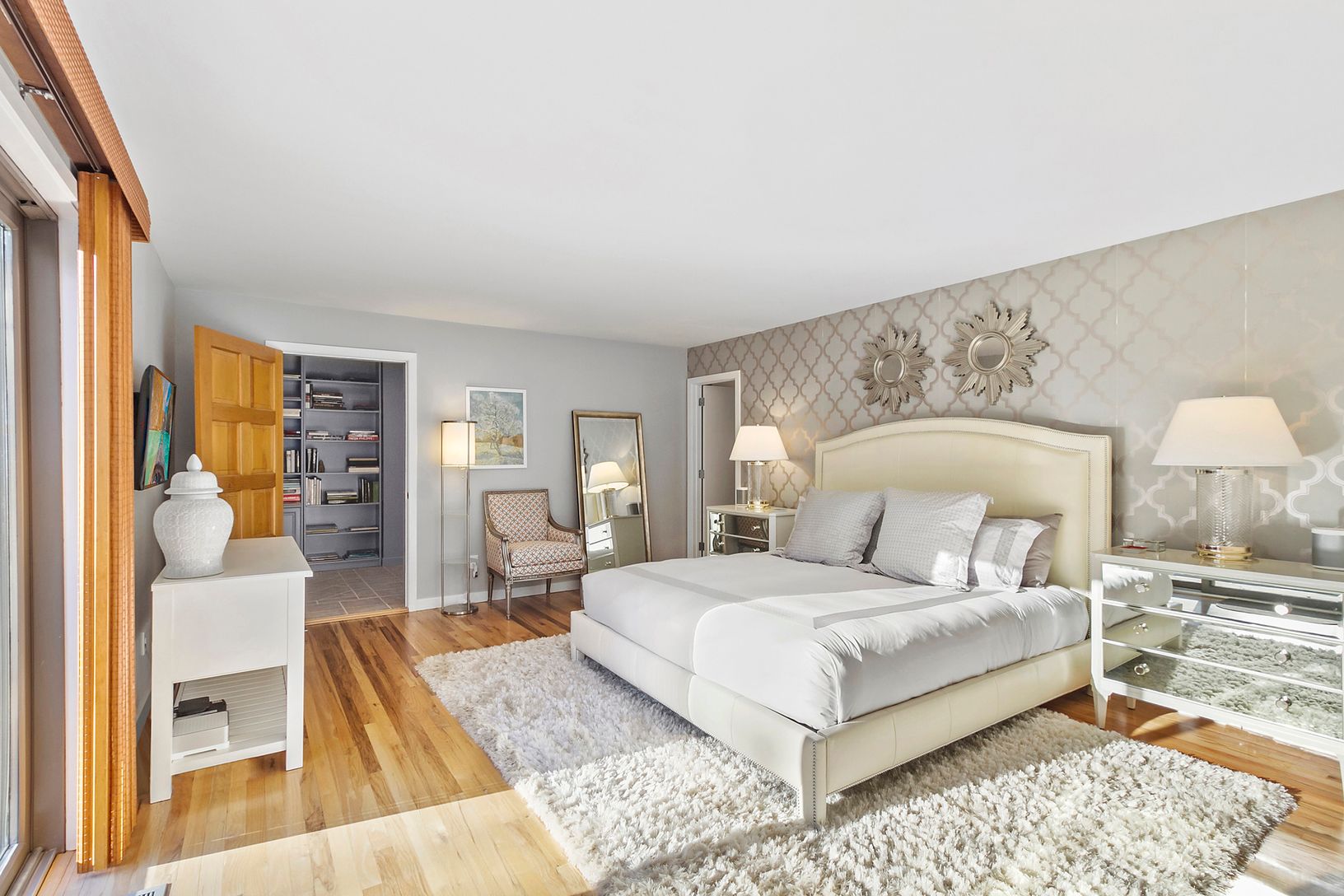 With easy access to East Hampton and Sag Harbor, this gracious home, with a 4 car garage, offers an abundance of convenience, light and privacy. Abutting a 17 acre reserve, the perfectly maintained master wing and guests' wing make up each end of the home adjoined by a spacious, sunny great room, dining area, cozy en suite 4th bedroom or den, 2 half baths, laundry facilities on both main and lower levels. The custom kitchen. with beautiful sli