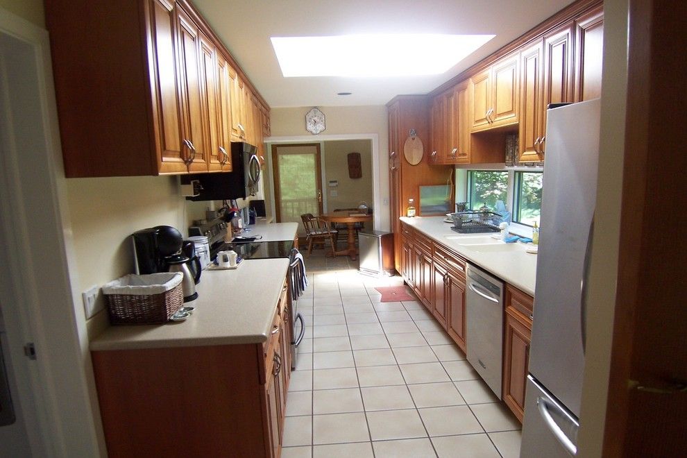 adjoined by a spacious, sunny great room, dining area, cozy en suite den(formerly the master), half bath, laundry and custom kitchen. The living spaces are oriented to th
