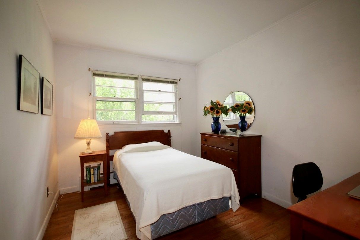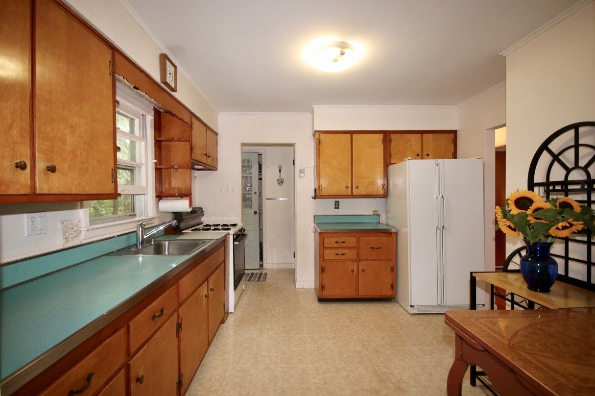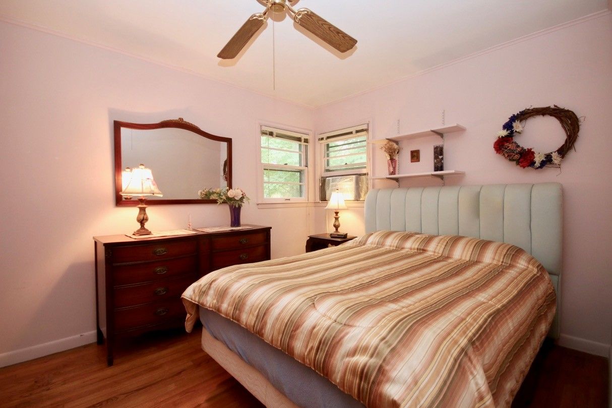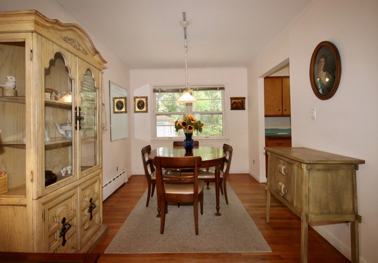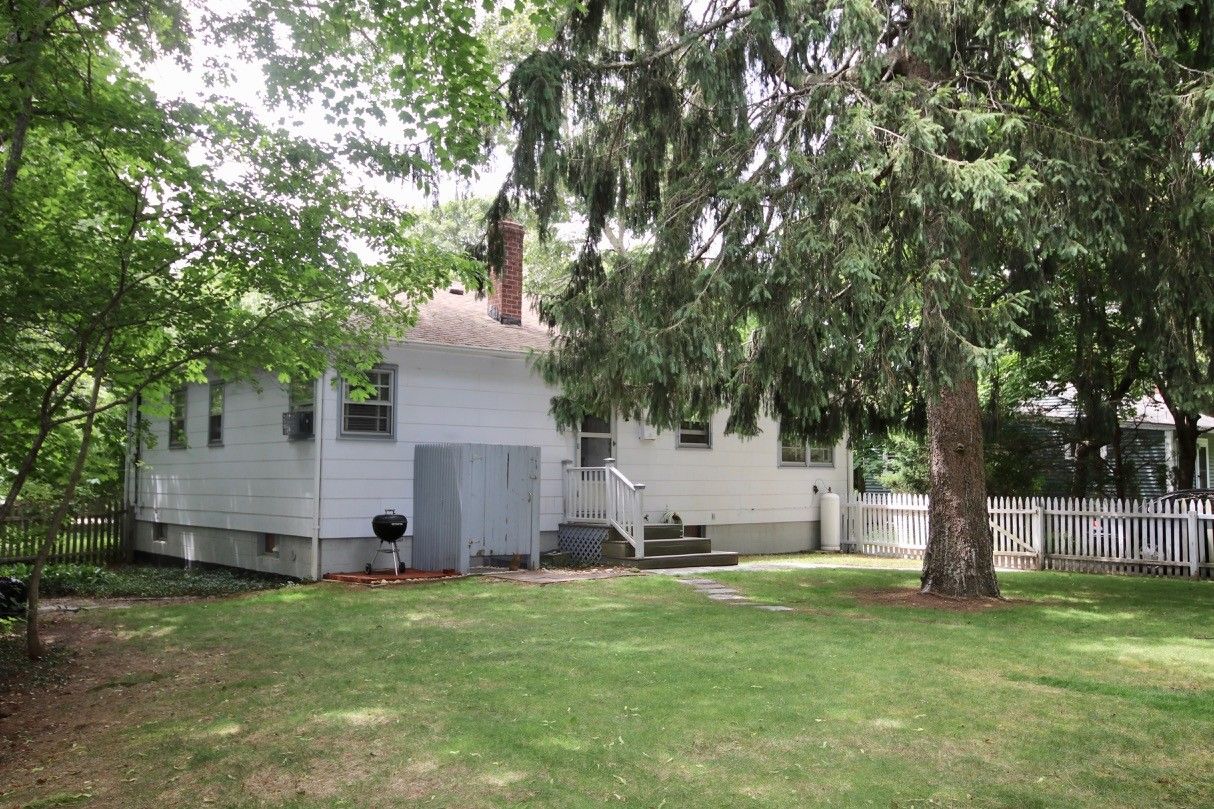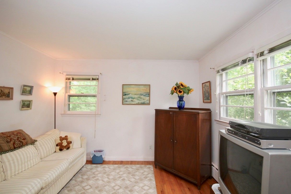 Adorable 1950's beach bungalow on private road with private bay beach access. Original details throughout. House is clean and solidly built. Kitchen and bath need updating but house is move-in ready with attic, full basement, and detached garage. Very private backyard with plenty of room for expansion and pool.