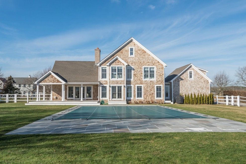 This Water Mill country home with beautiful farm views is located just outside Southampton Village and is completely turnkey. Professionally built using only the finest materials, this gorgeous home has 6 bedrooms (including large master suite with fireplace and spectacular views), 5.5 baths, living room with soaring cathedral ceilings and fireplace, formal dining room, den, 2 car attached garage and beautiful eat-in kitchen with high end stai