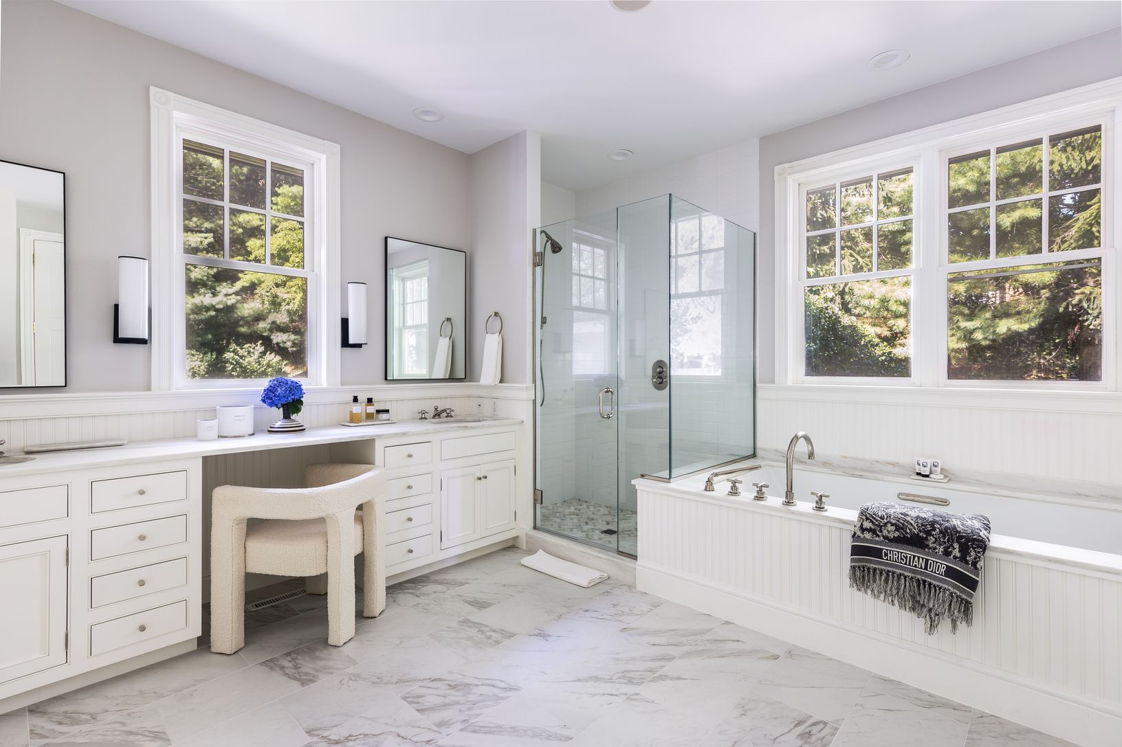Spend your summer at this stunning property offering dramatic views across Bridgehampton Horse Country. The newly furnished and well-appointed 5 bedroom, 4.5 bathroom home is sited on a pristine elevated 1+ acre lot, buffered by 40+ acres of preserved land. Enjoy the sunny days amongst the multiple outdoor living spaces overlooking the heated gunite pool surrounded by professionally manicured specimen trees and plantings. Entertaining guests i
