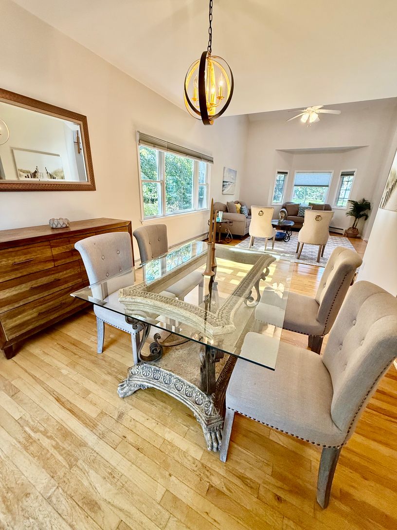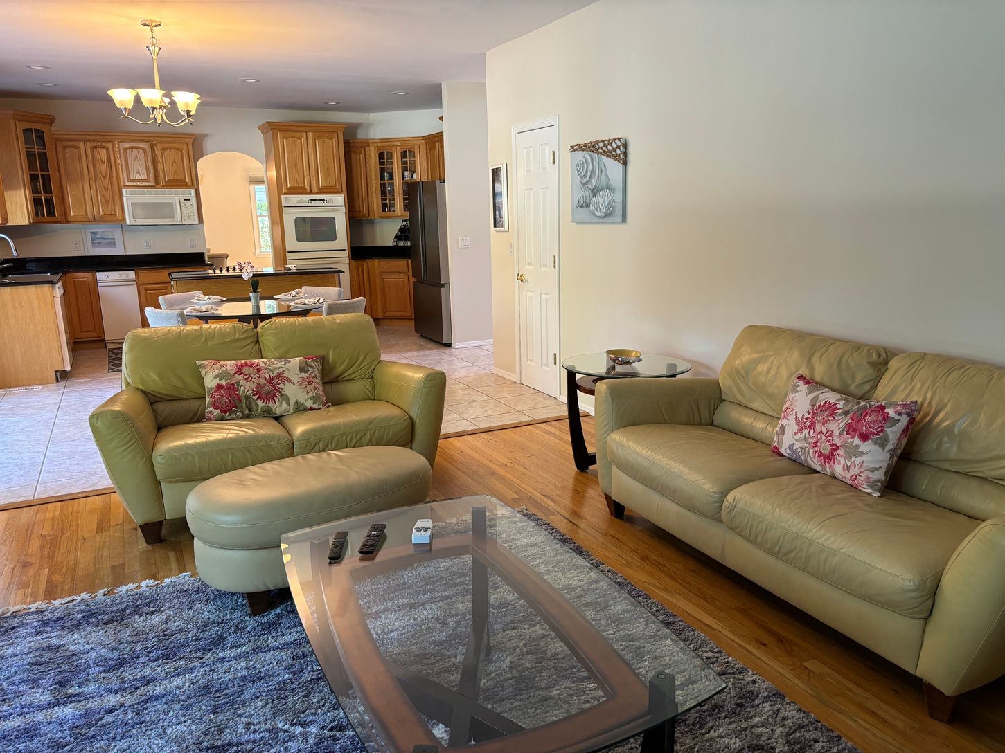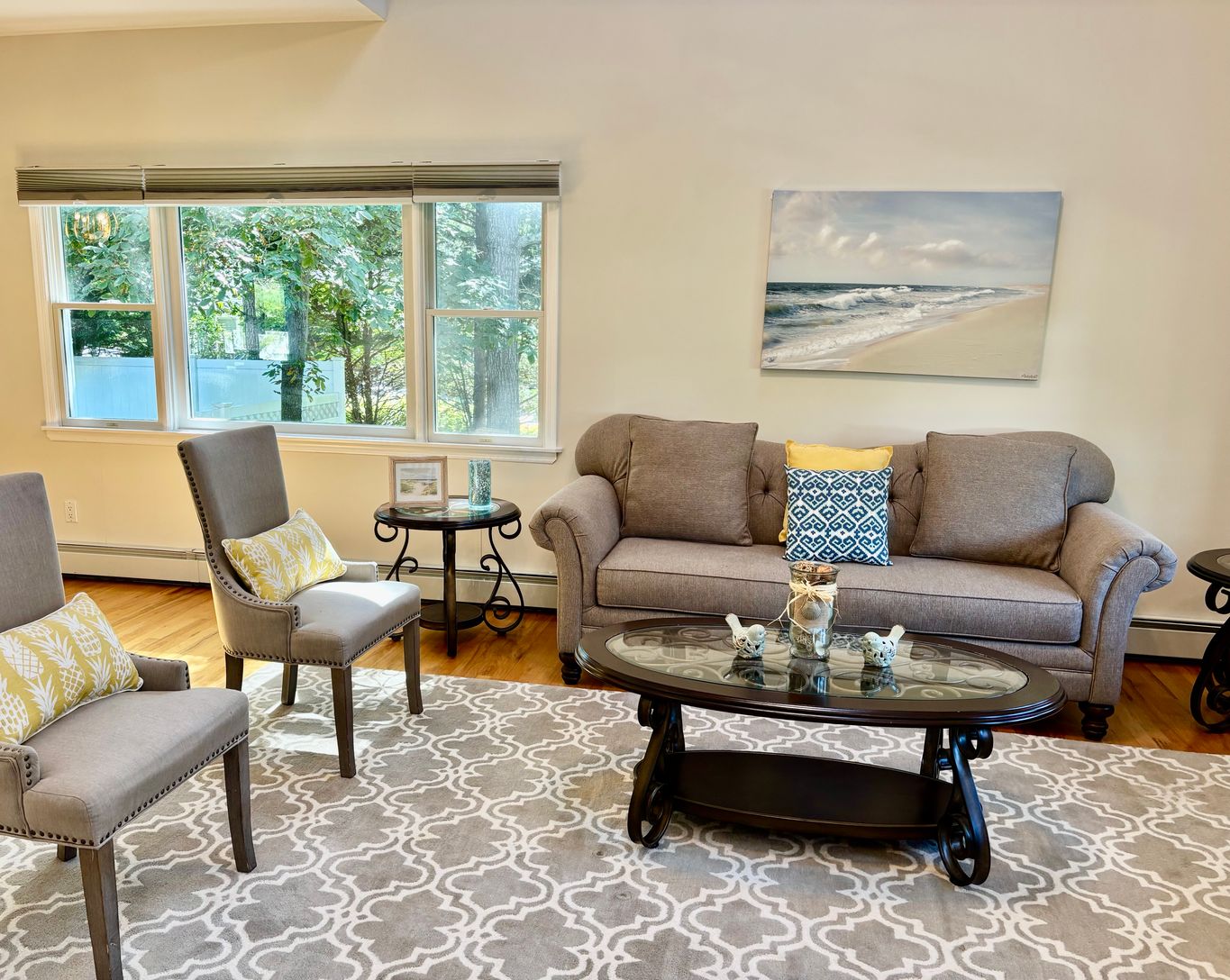 Stunning Hamptons Getaway offering 3,000 sq. ft. of luxurious living space, this 4-bedroom, 2 1/2 bath retreat in the prestigious Old Harbor Colony is designed with both practicality and elegance in mind. Set on a generous 1/2 acre lot, the home comes fully furnished with every amenity imaginable. The open floor plan allows for effortless entertaining, with vaulted ceilings and skylights filling the residence with natural light. A well equipp