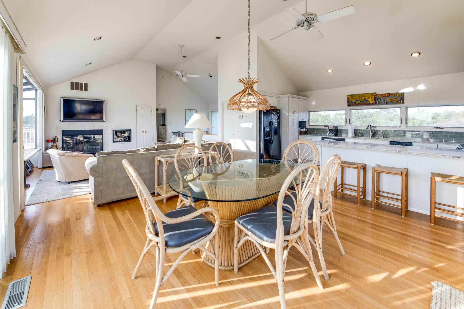 This updated and well maintained contemporary home offers sweeping views of the ocean and surrounding dunes, and has a private path to the gorgeous Amagansett ocean beach. Four bedrooms and baths, an open kitchen, spacious balconies and a full size pool make this an ideal home for the beachy lifestyle. Private community tennis, deeded ocean access.