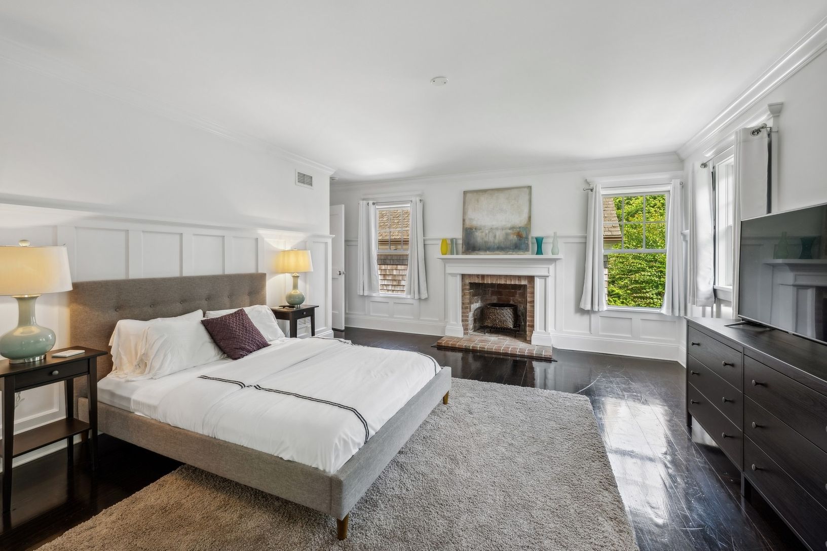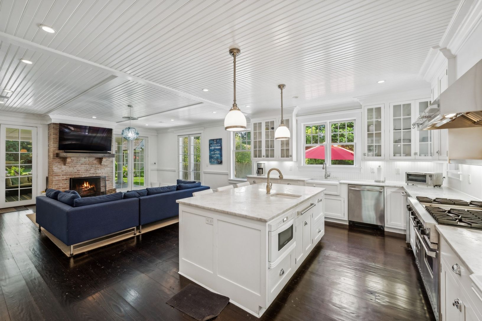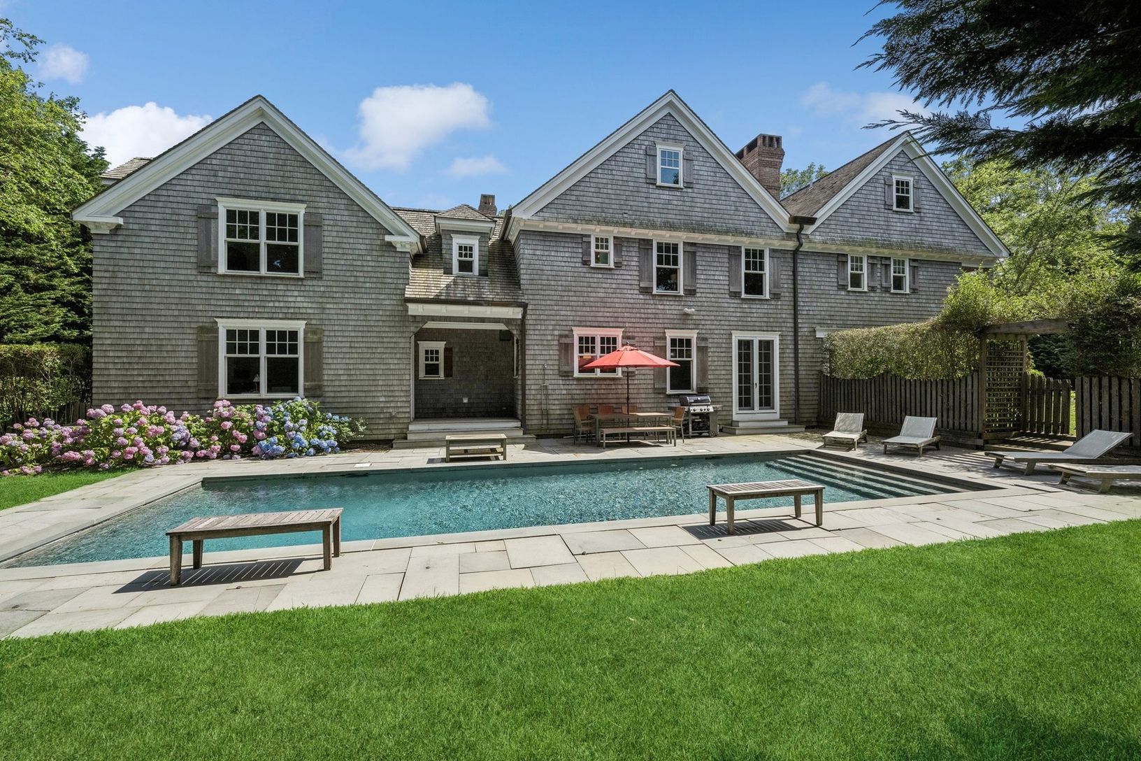Discover unparalleled luxury in Southampton's prestigious Art Village. Nestled south of the highway, this exquisite home offers the epitome of Hamptons living. This cedar-shingled seamlessly blends traditional charm with modern sophistication, featuring an impeccable interior with five luxurious bedrooms and ensuite bathrooms, including a convenient ground floor suite. The powder room, open concept dine-in chef's kitchen with a cozy fireplace,