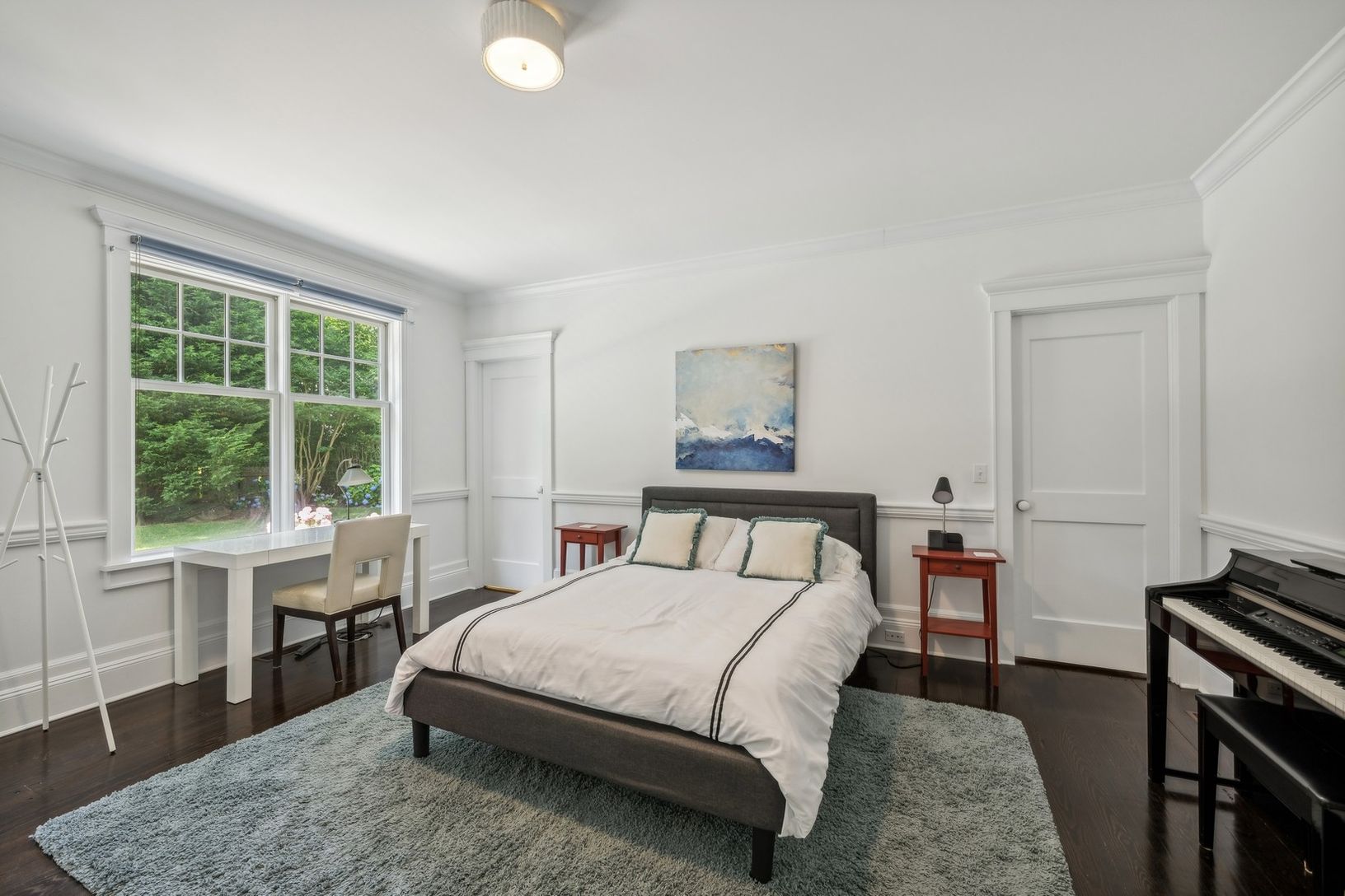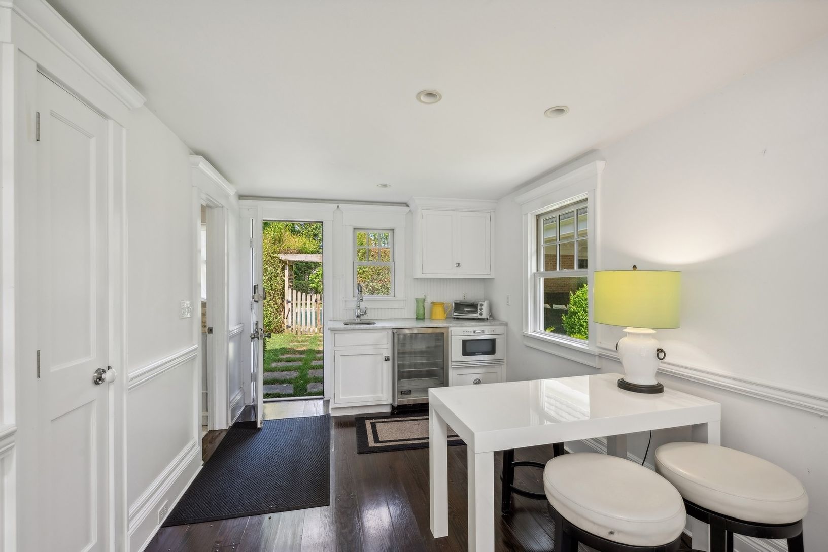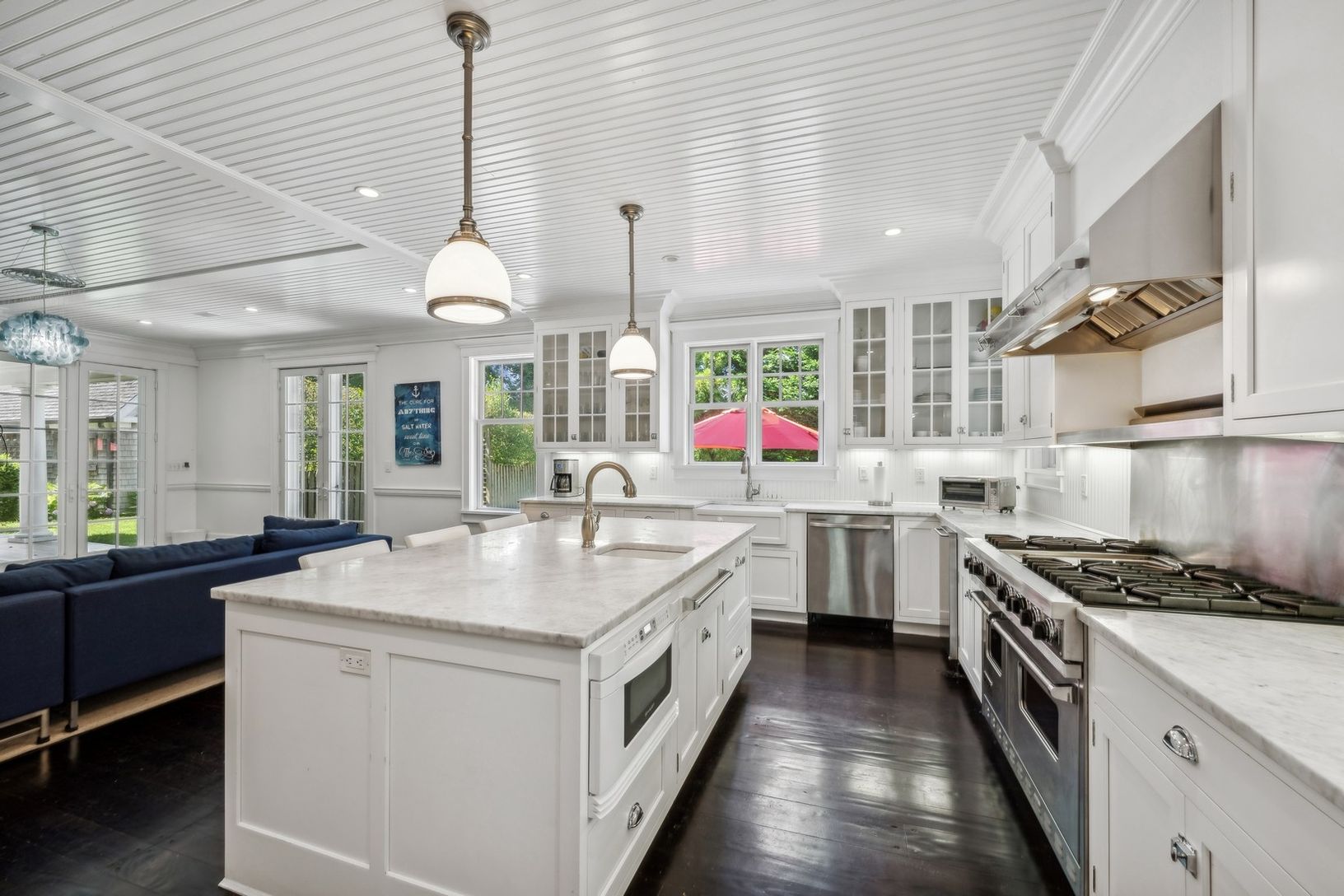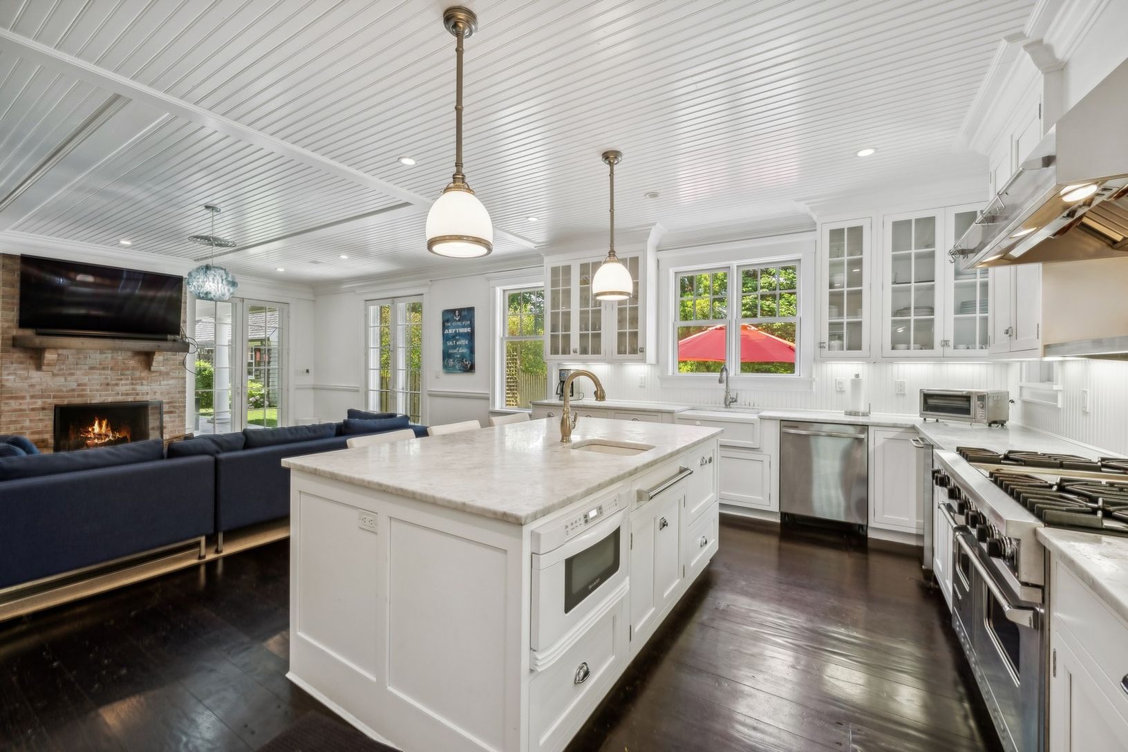 Discover unparalleled luxury in Southampton's prestigious Art Village. Nestled south of the highway, this exquisite home offers the epitome of Hamptons living. This cedar-shingled seamlessly blends traditional charm with modern sophistication, featuring an impeccable interior with five luxurious bedrooms and ensuite bathrooms, including a convenient ground floor suite. The powder room, open concept dine-in chef's kitchen with a cozy fireplace,