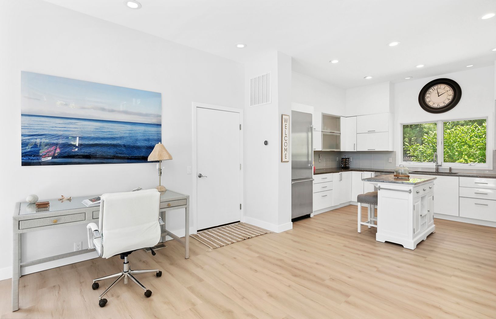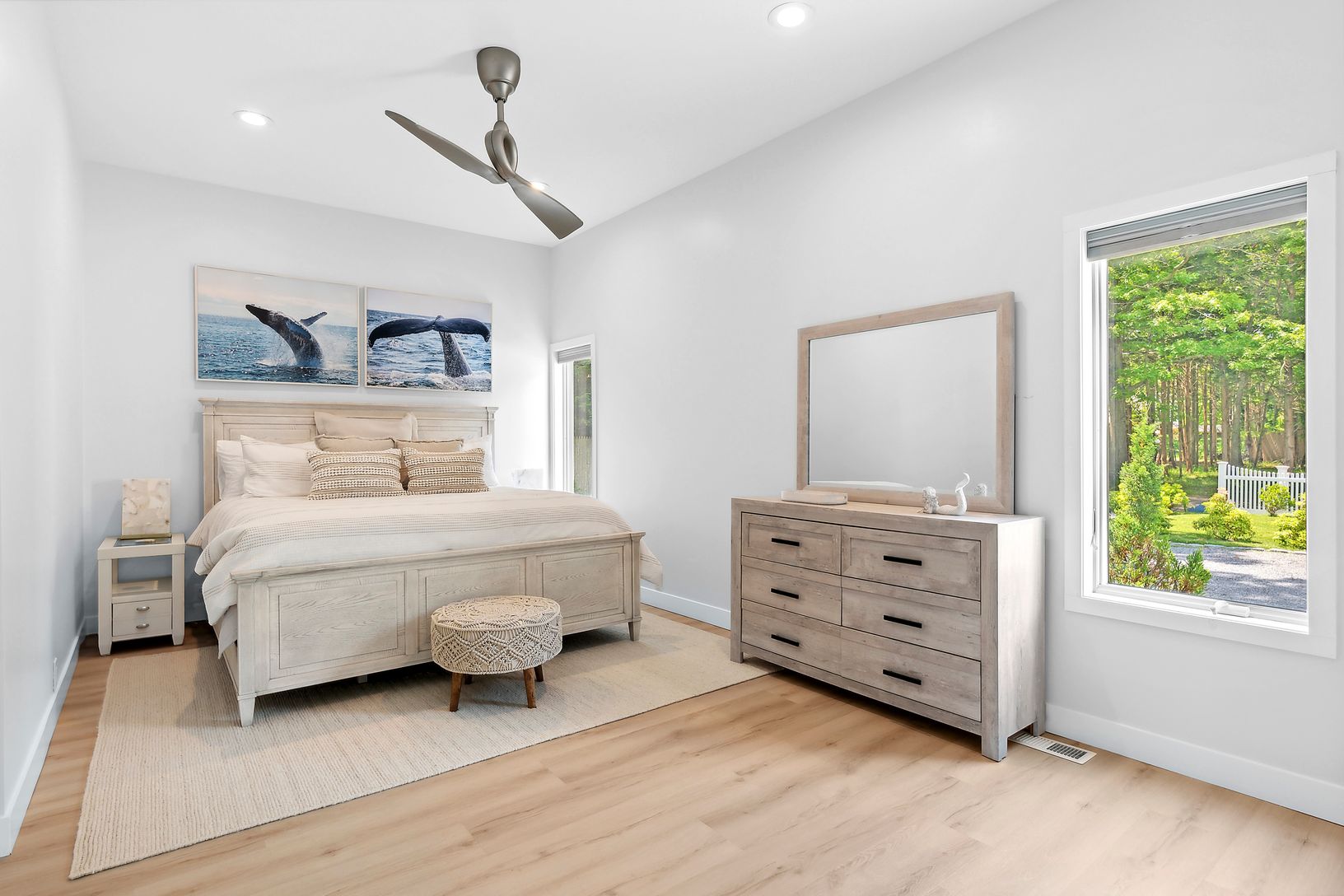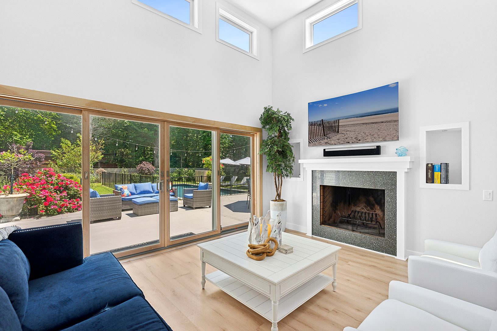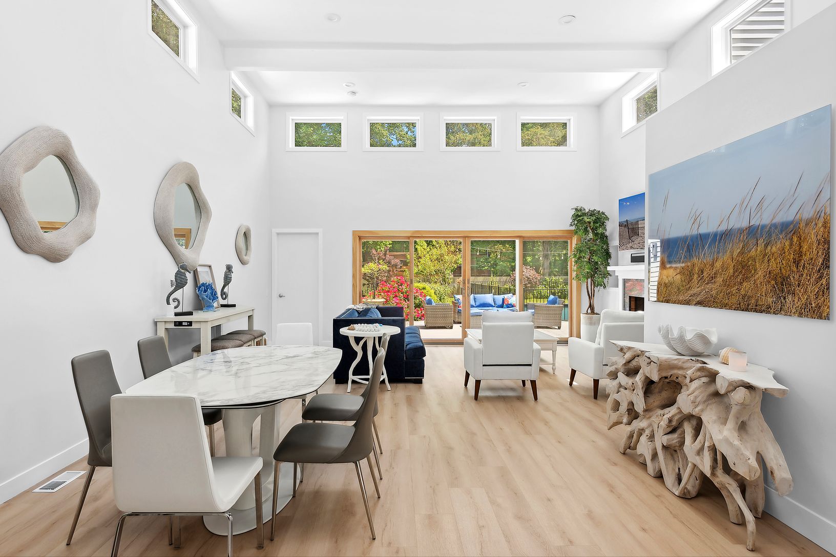 Discover serenity with a touch of modern elegance in Clearwater Beach, East Hampton. Nestled on one of the premier streets in this coveted community, this property offers exclusive access to a private beach and marina. Step inside to find an inviting open floor plan adorned with a grand living room, fireplace, lofty ceilings, gourmet kitchen and abundant natural light. The expansive primary bedroom boasts tranquil backyard views, complemented