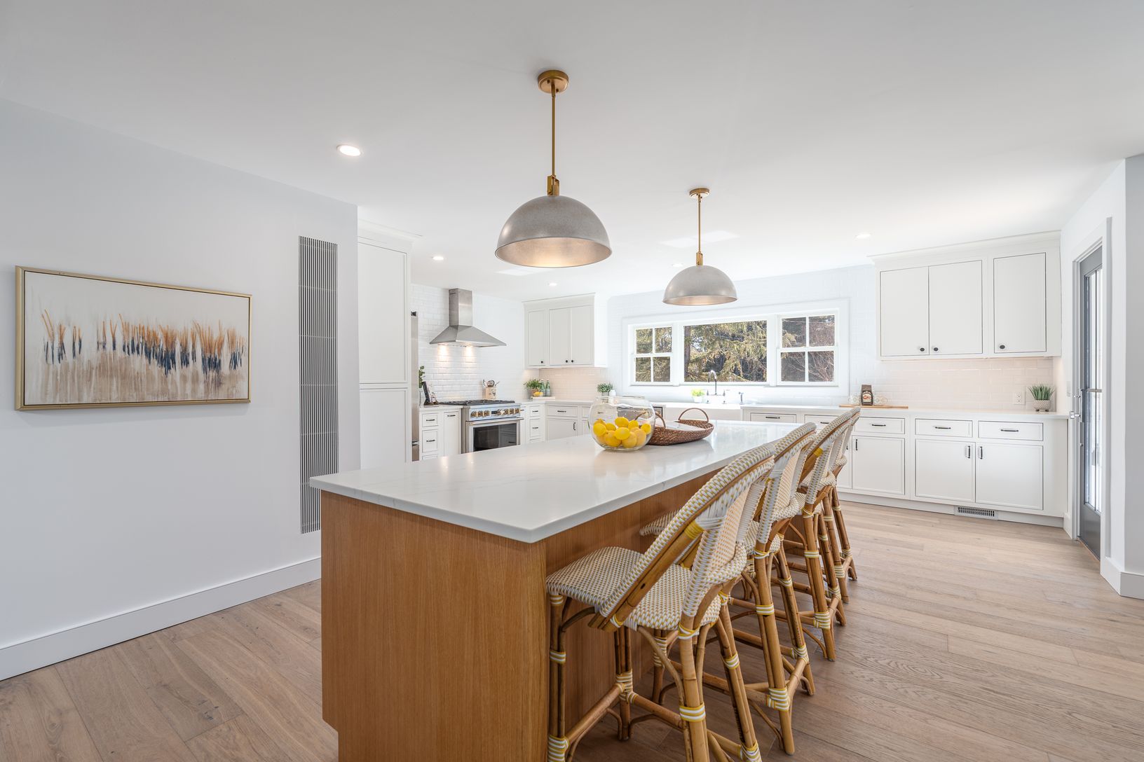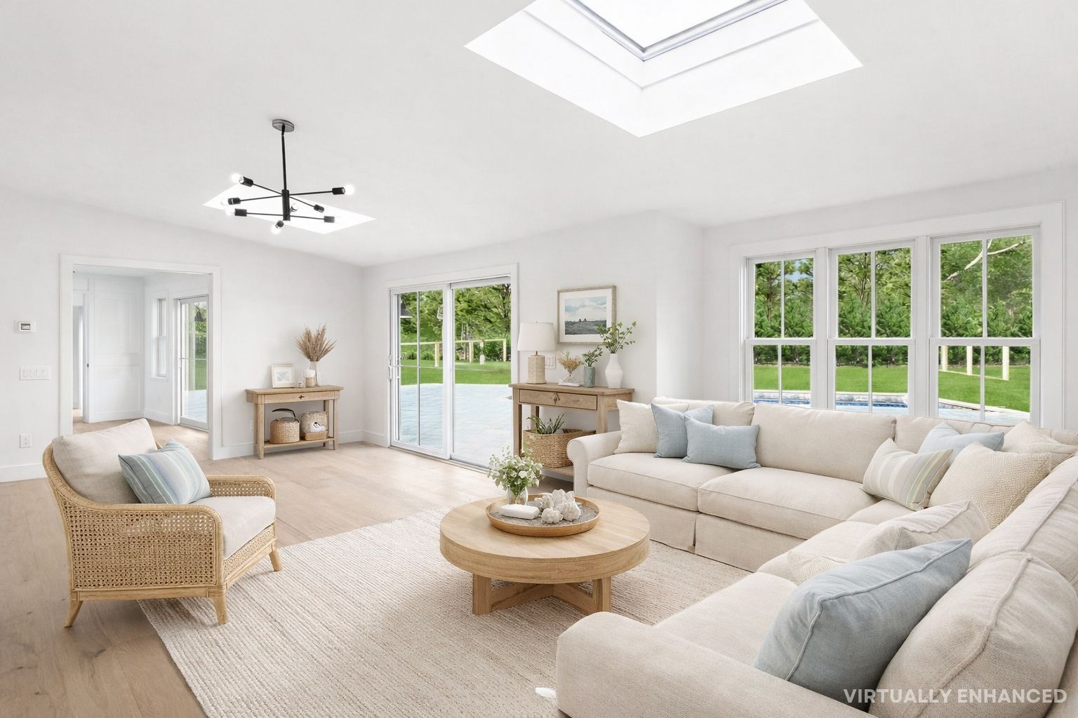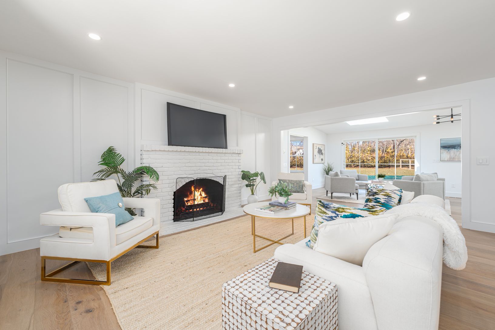 Tucked away on a quiet cul-de-sac lane, just completed, this six-bedroom, four-and-a-half-bath modern farmhouse has been beautifully reimagined and completely renovated, blending classic coastal charm with contemporary sophistication. Set on just shy of an acre, the home offers approximately 4,300 square feet of light-filled living space designed for effortless entertaining and relaxed luxury. Inside, 7.5-inch engineered oak flooring flows thr