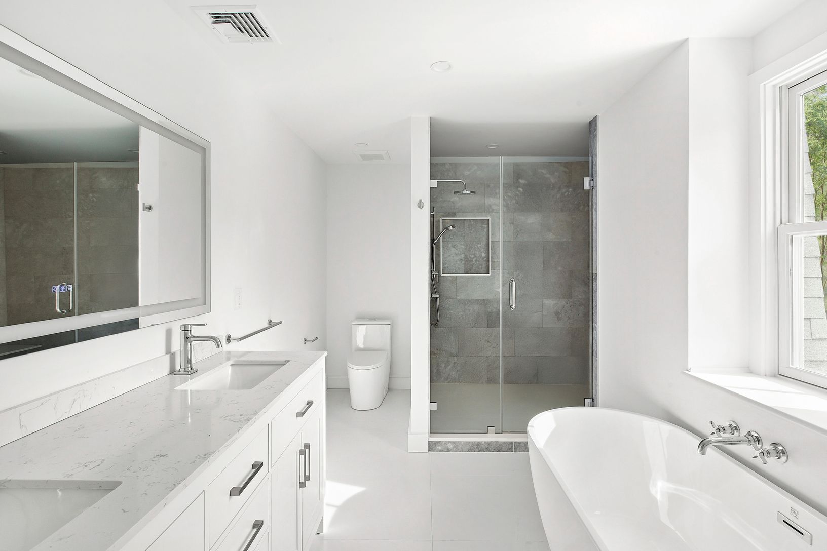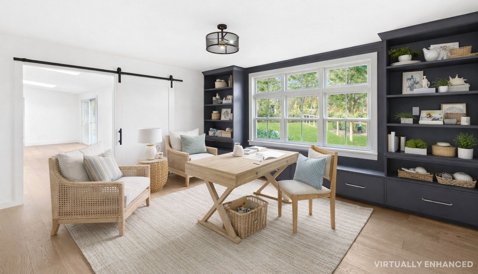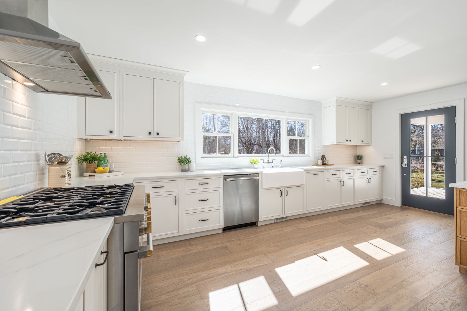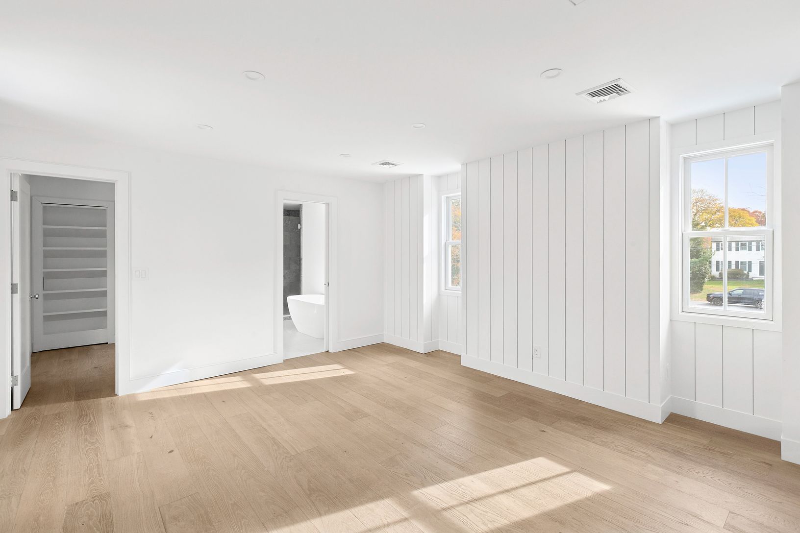 Tucked away on a quiet cul-de-sac lane, just completed, this six-bedroom, four-and-a-half-bath modern farmhouse has been beautifully reimagined and completely renovated, blending classic coastal charm with contemporary sophistication. Set on just shy of an acre, the home offers approximately 4,300 square feet of light-filled living space designed for effortless entertaining and relaxed luxury. Inside, 7.5-inch engineered oak flooring flows thr